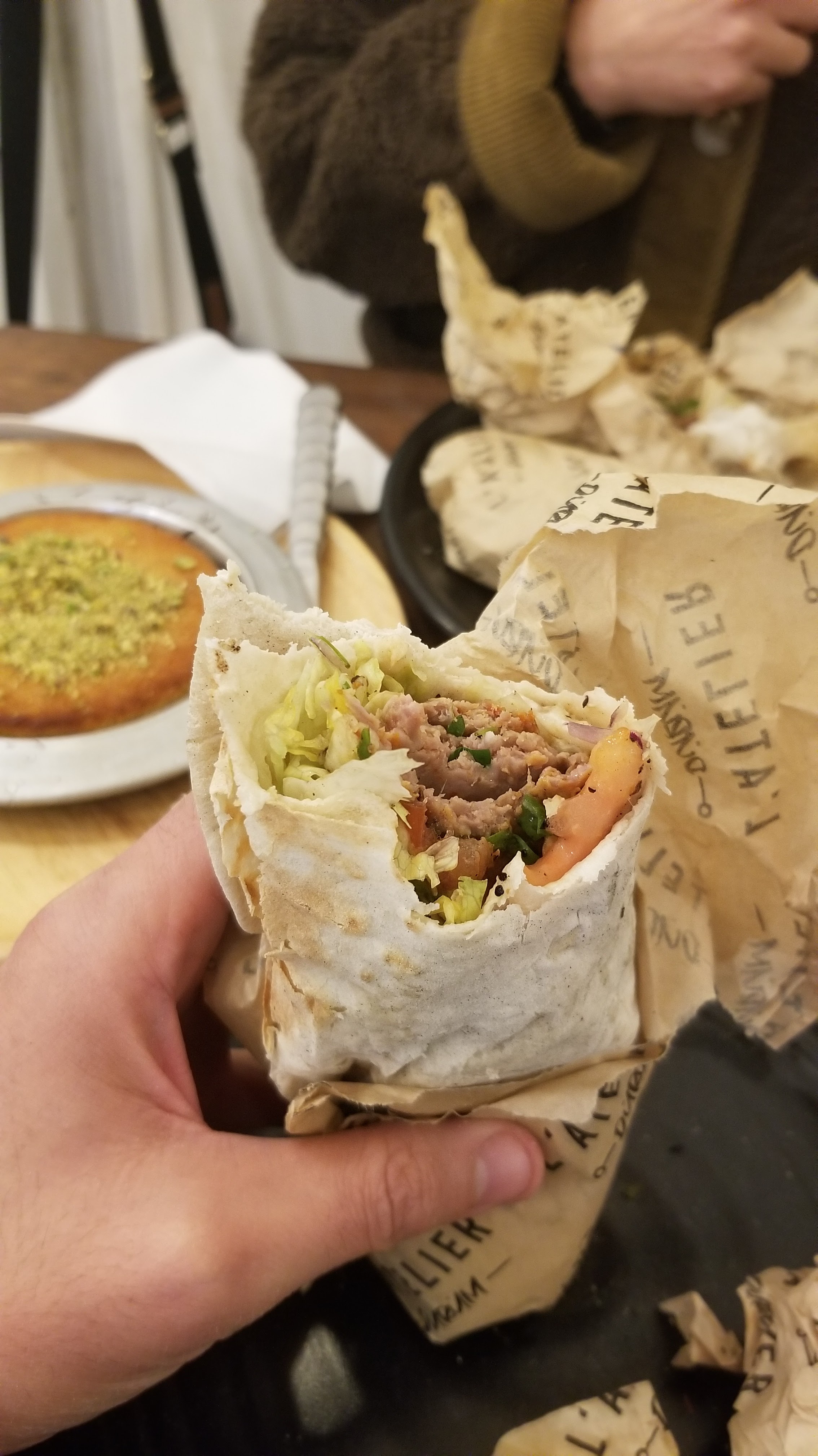 J’ai découvert l’atelier Durum hier et le personnel est très sympathique, avenant et adorable ! Les sandwich sont bons, frais et plutôt sains. Rien à voir avec les grecs classiques ! Les baklavas sont excellents !!!!!!! Les meilleurs que j’ai mangé depuis mon voyage en Turquie!