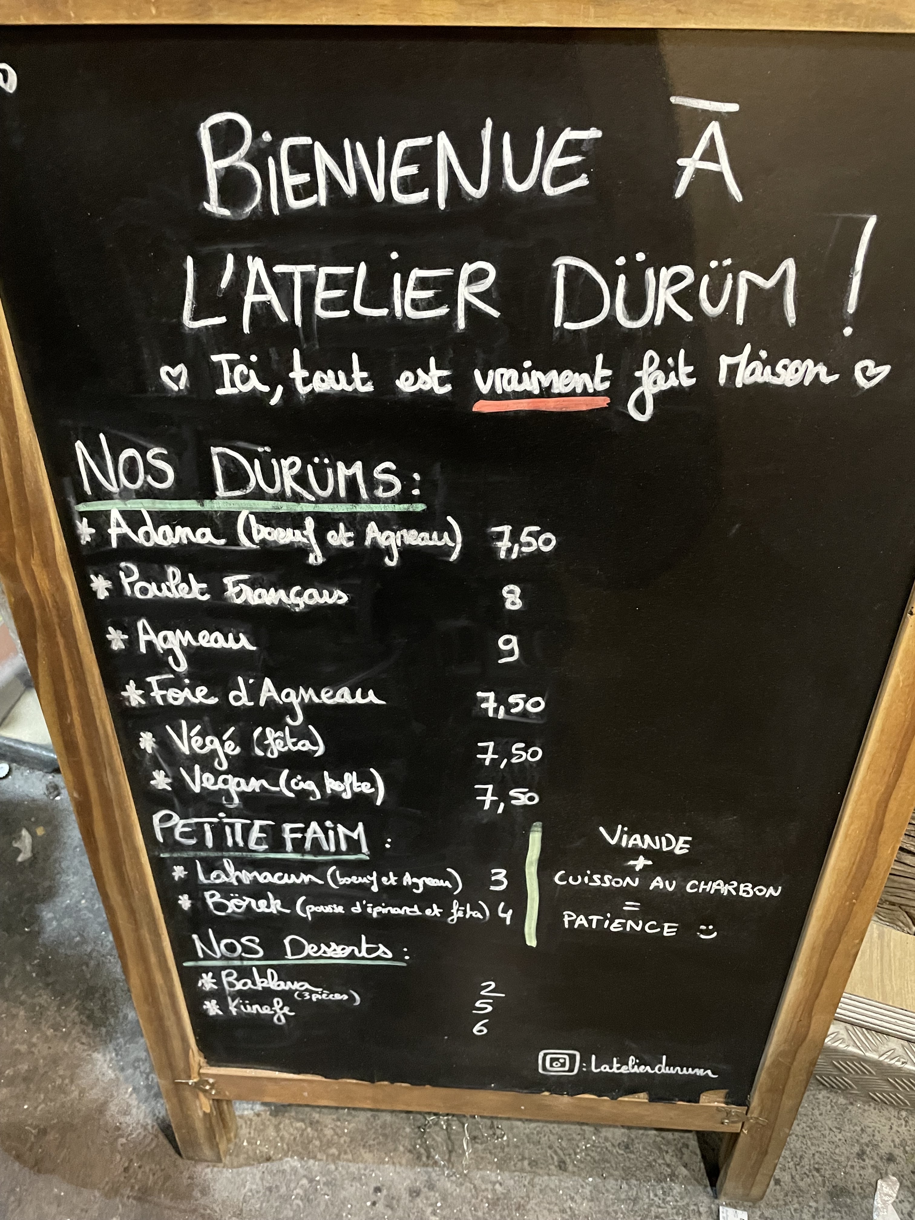 Nous avons testé ce soir (publicité alléchante sur insta). Durum bons mais pas copieux pour le prix reste très cher... Déçu