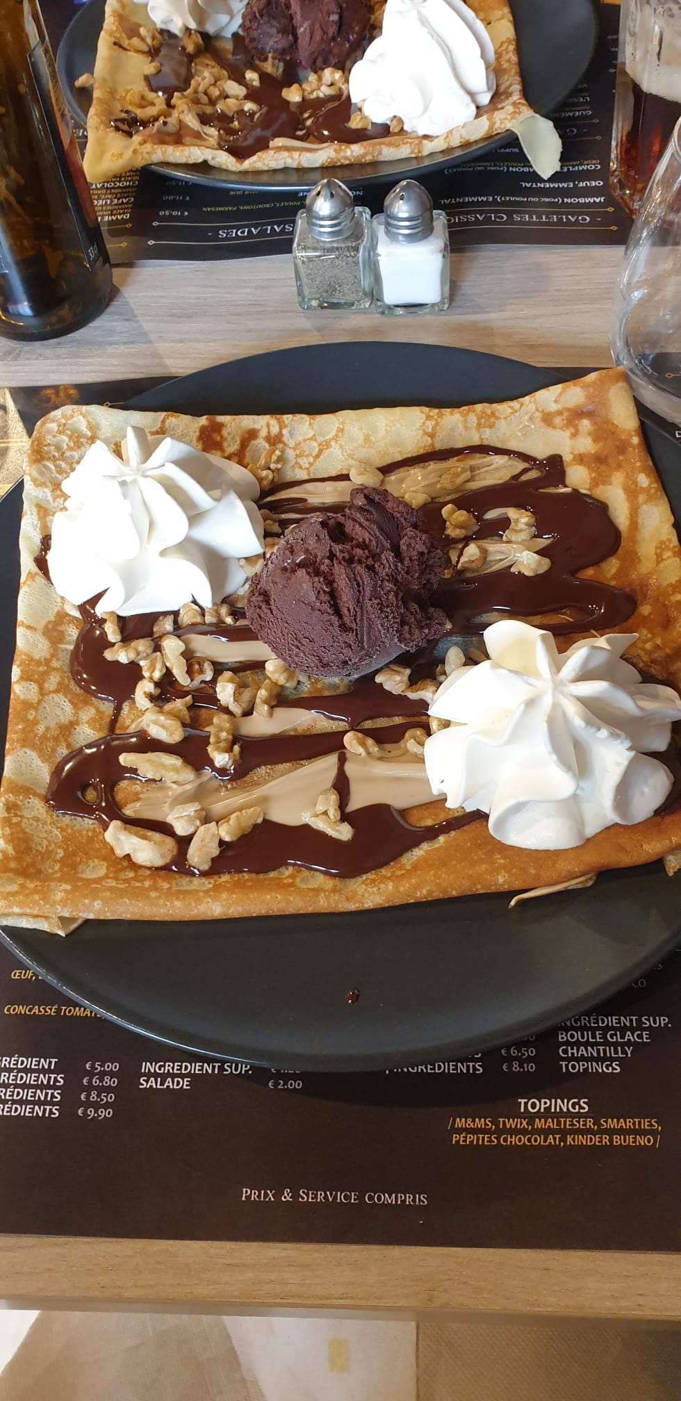 Assez cher pour la qualité et la quantité Pas la même qualité et quantité que la crêperie à Voiron grand rue,pas besoin d ajouter des ingrédients, il y a tout
