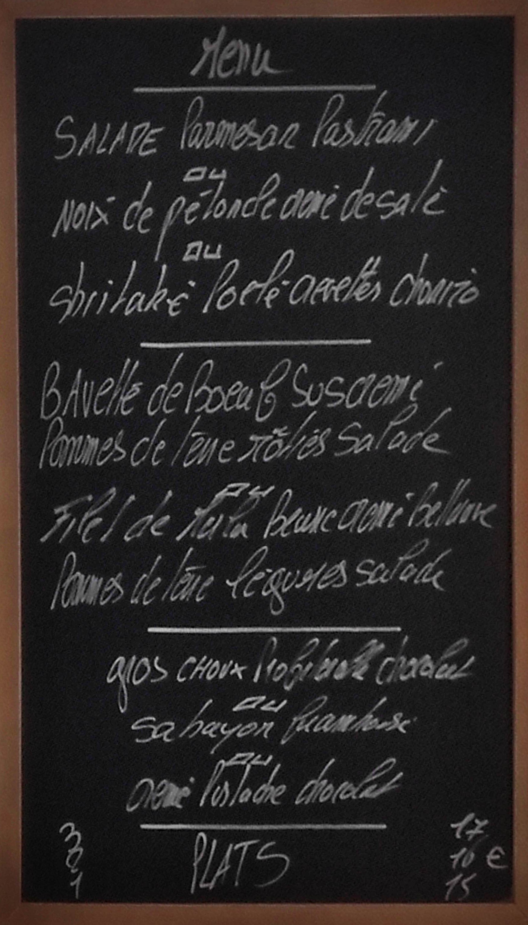 Menus pris au restaurant. C est toujours aussi bon et raffiné. Vivement qu on puisse retrouver le restaurant avec le service.