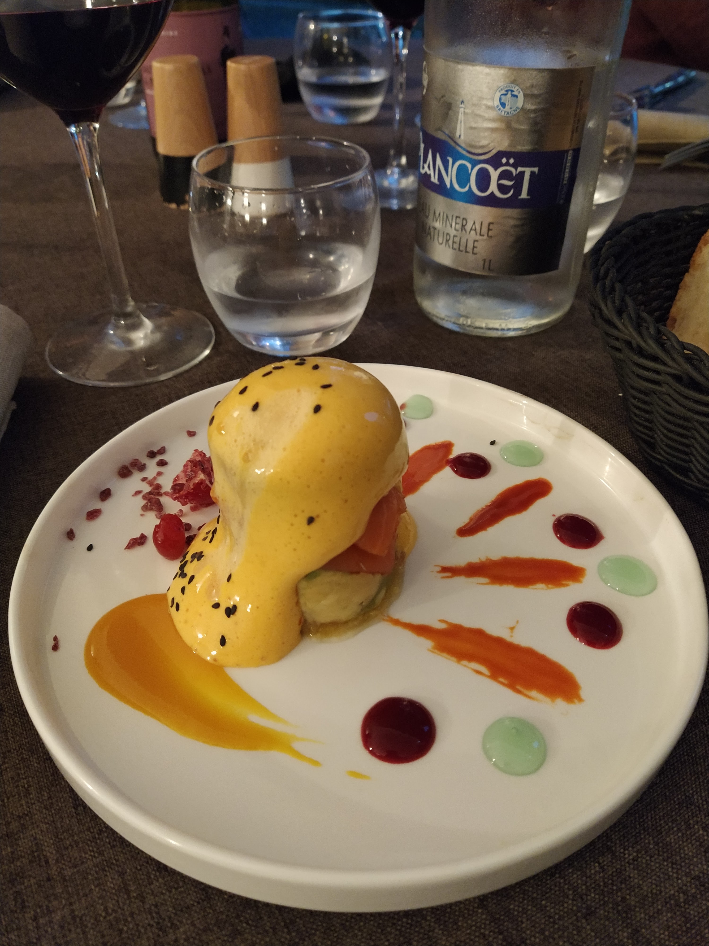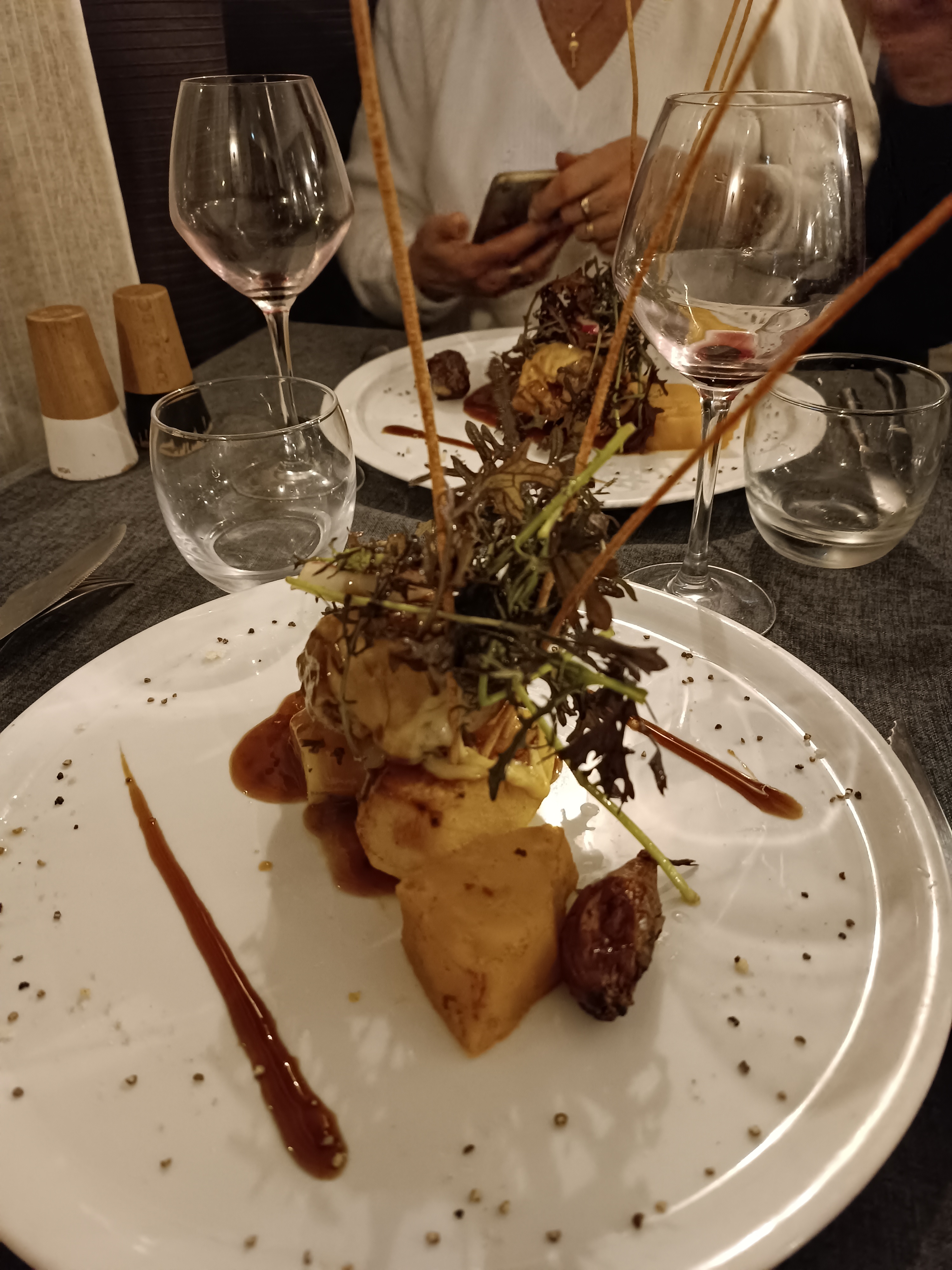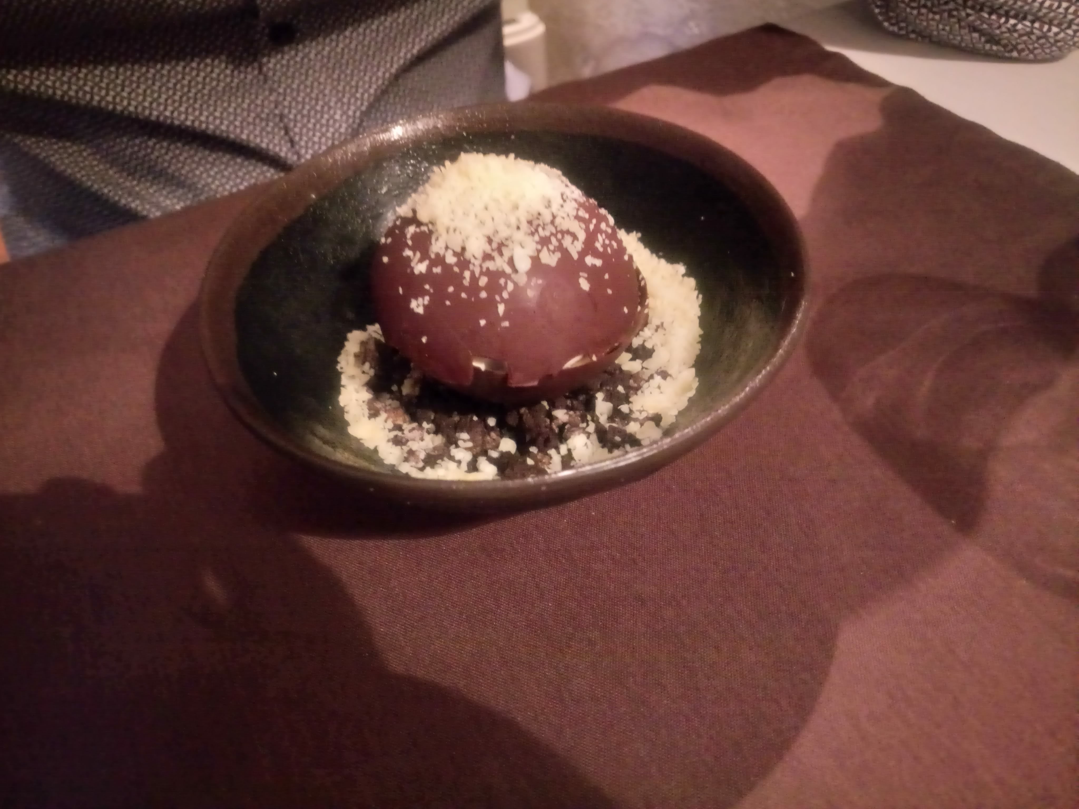 Serveur seul , salle petite vite encombré (covid pas top :/) entrée ,plat très bien desserts très déçu la boule chocolat avec le sucre pétillant qui vous saute a la gueule lorsque le serveur mets la sauce on à fini le repas a se nettoyer ma femme en avais plein les cheveux :s