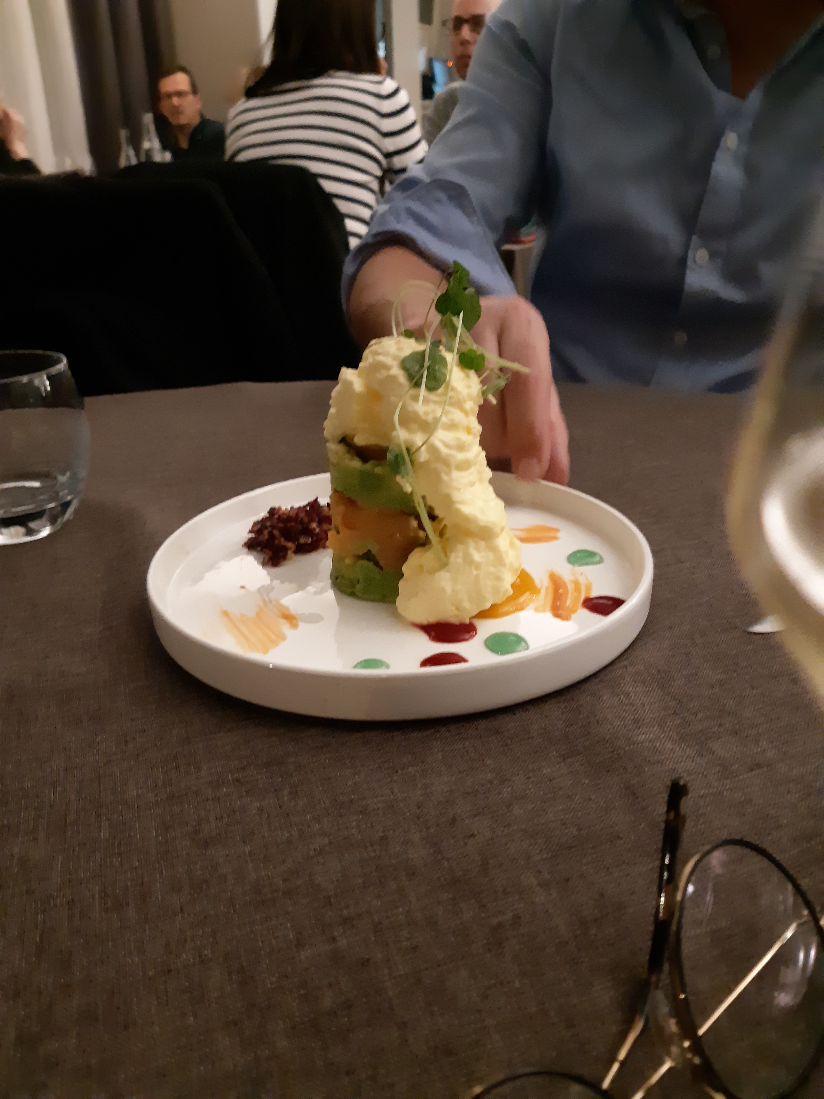 Nous y étions en duo. En plus d'une jolie présentation, Le menu, de l'amuse bouche au dessert, était excellent! Le personnel très serviable et souriant est de bons conseils pour l'accord mets-vins. Nous reviendrons !