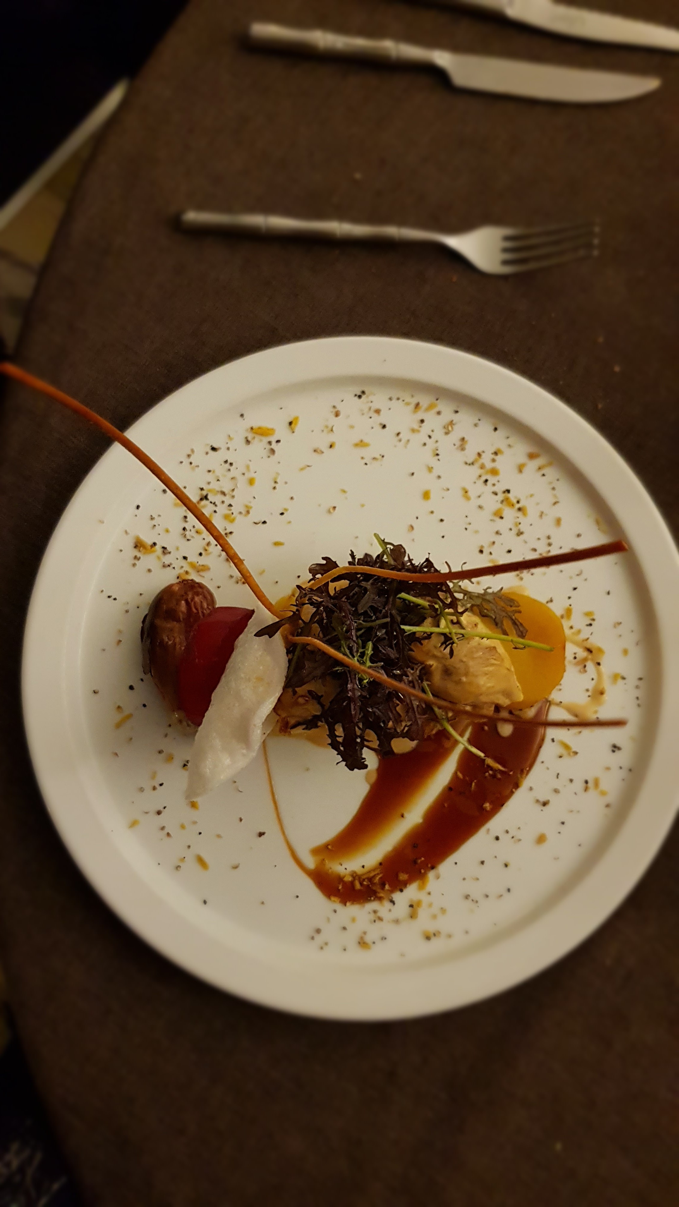 Plats bien présentés, de bon goût. Des répétitions entre chaque plats comme les sauces en déco, les morceaux de figues séchées etc. Niveau ambiance c'est moyen : chauffage au minimum et musique forte et spéciale.. Rapport qualité/prix pas très bon.
