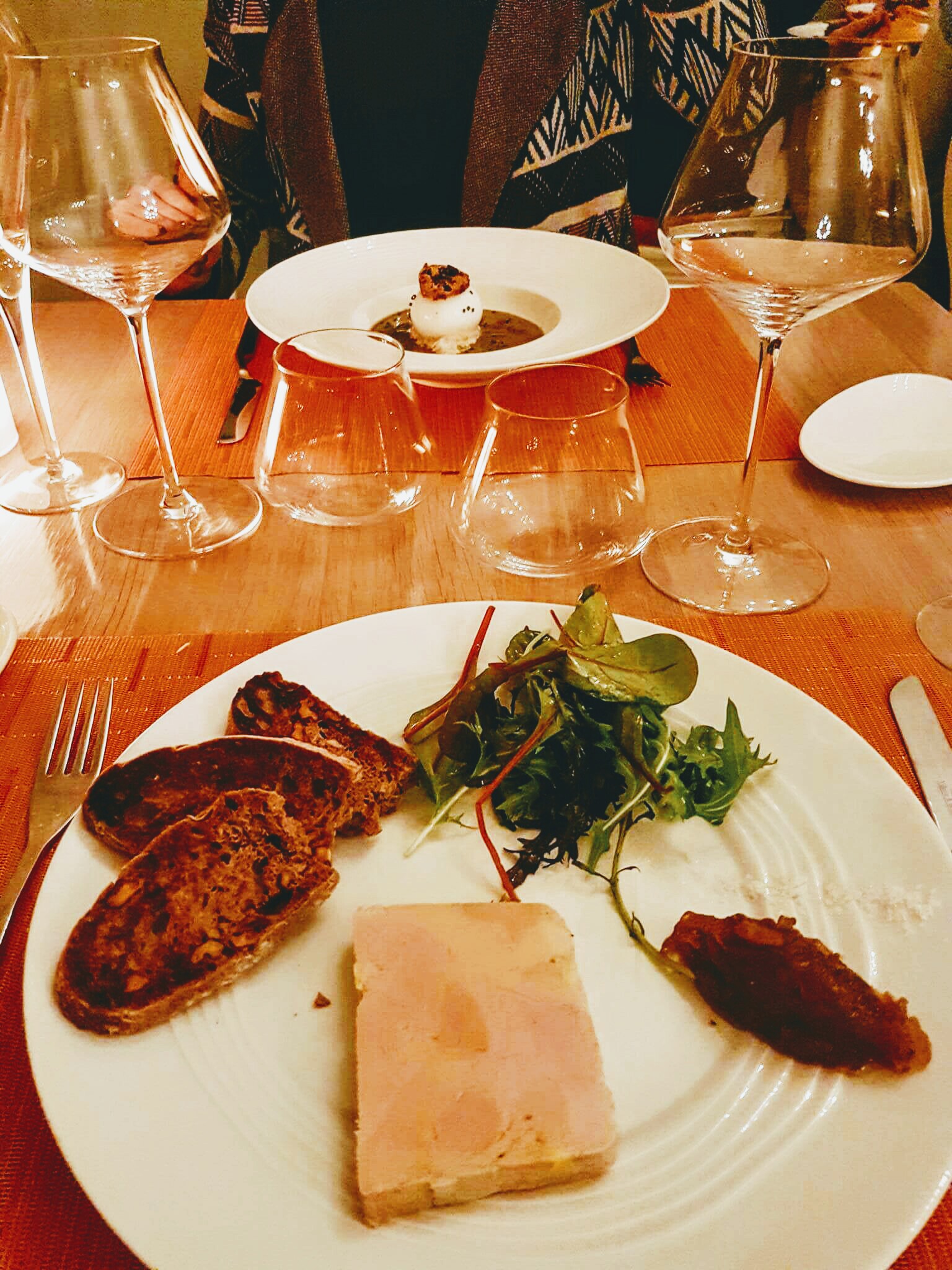Une super soirée. Une cuisine belle et savoureuse servie avec un vin délicieux. Nous nous sommes même détendus en plein air. Que demander de plus?