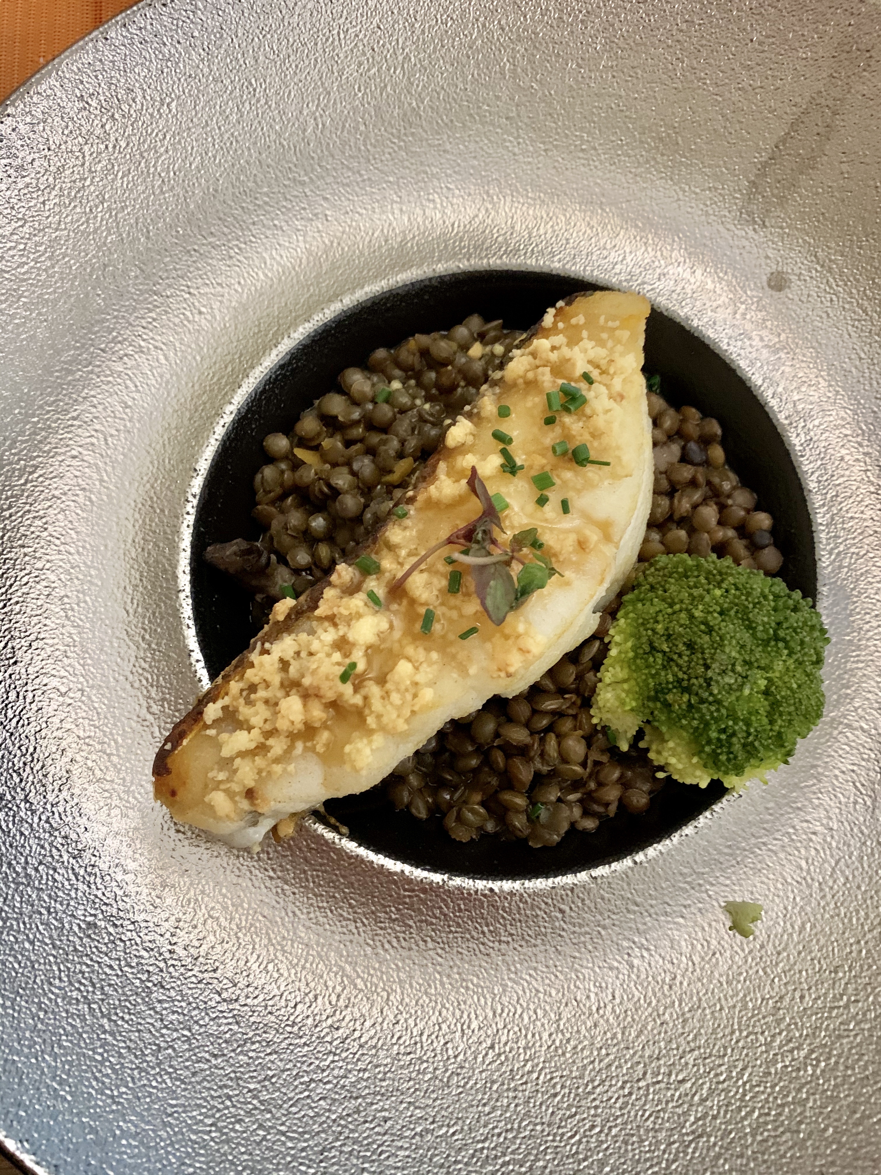 Une amie m a amenée dans ce restaurant que je ne connaissais pas. Le service y est se qualité ainsi que la décoration. Les assiettes sont très belles dignes d un livre de cuisine mais j ai malheureusement trouvé mon plat assez fade(cabillaud en croûte de cajou avec lentilles) C est dommage car l entree et le dessert étaient bons. Les prix sont cependant assez élevés à la carte au regard de la quantité