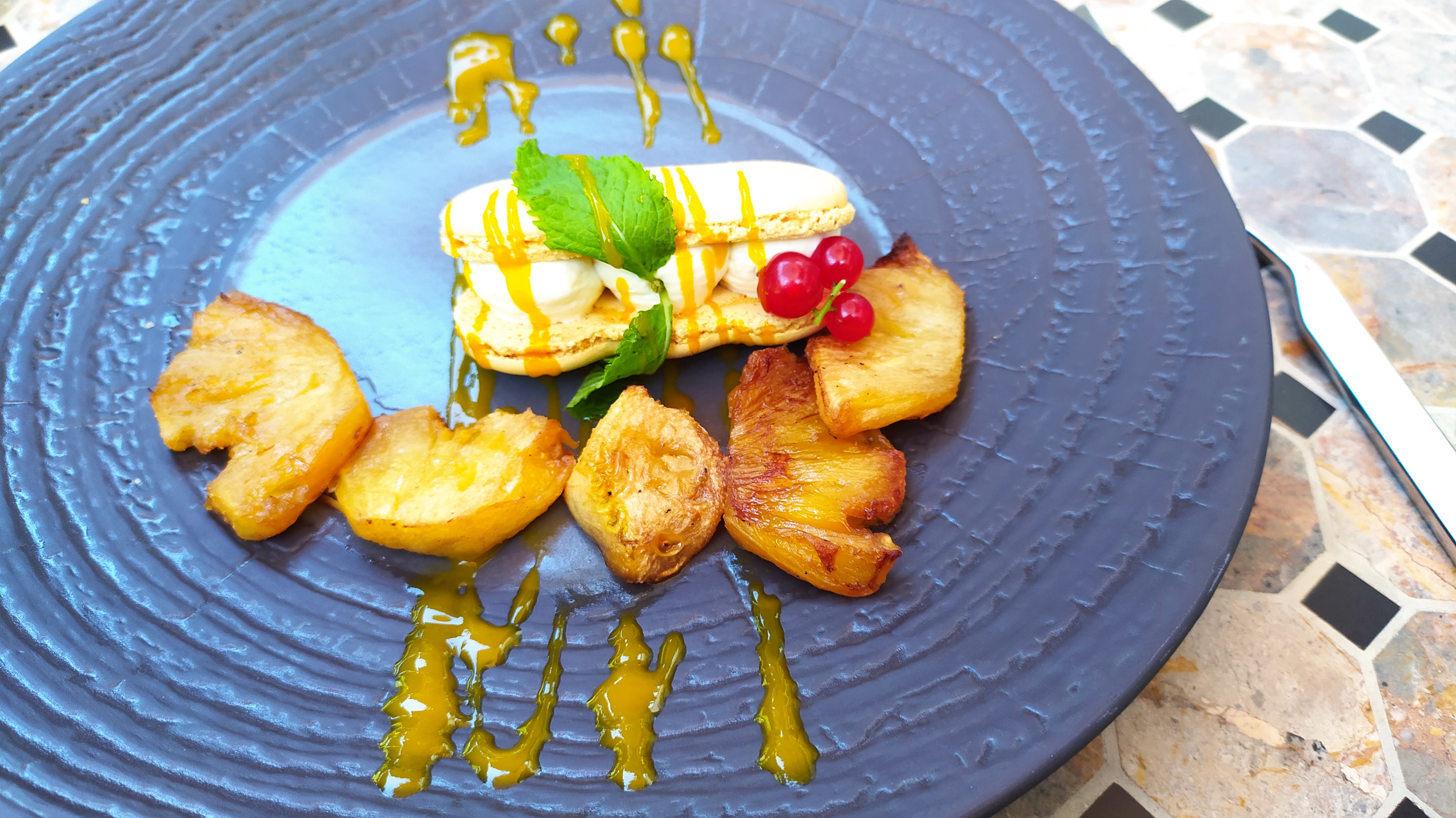 Nous y sommes retourné en juin . Repas hummm miam-miam. J ai juste pris le temps de prendre en photo le dessert. Trop bon.