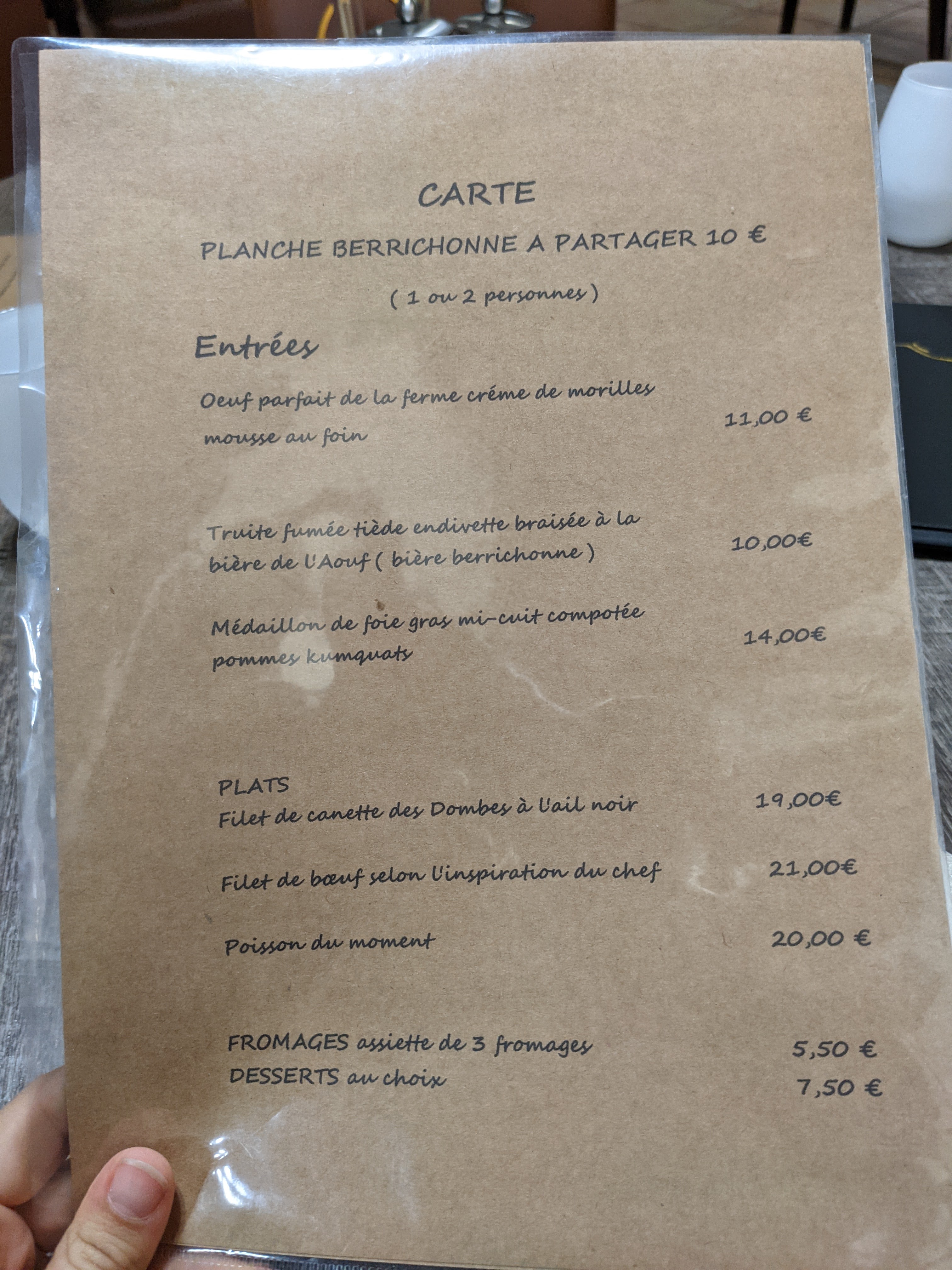 A cause d'une correspondance de 2h en gare de Vierzon, j'ai découvert ce petit resto bien sympa à 150m. La panna cotta aux asperges était une très agréable surprise, suivi par des joues de porc par excellence, quel régal, je recommande..!
