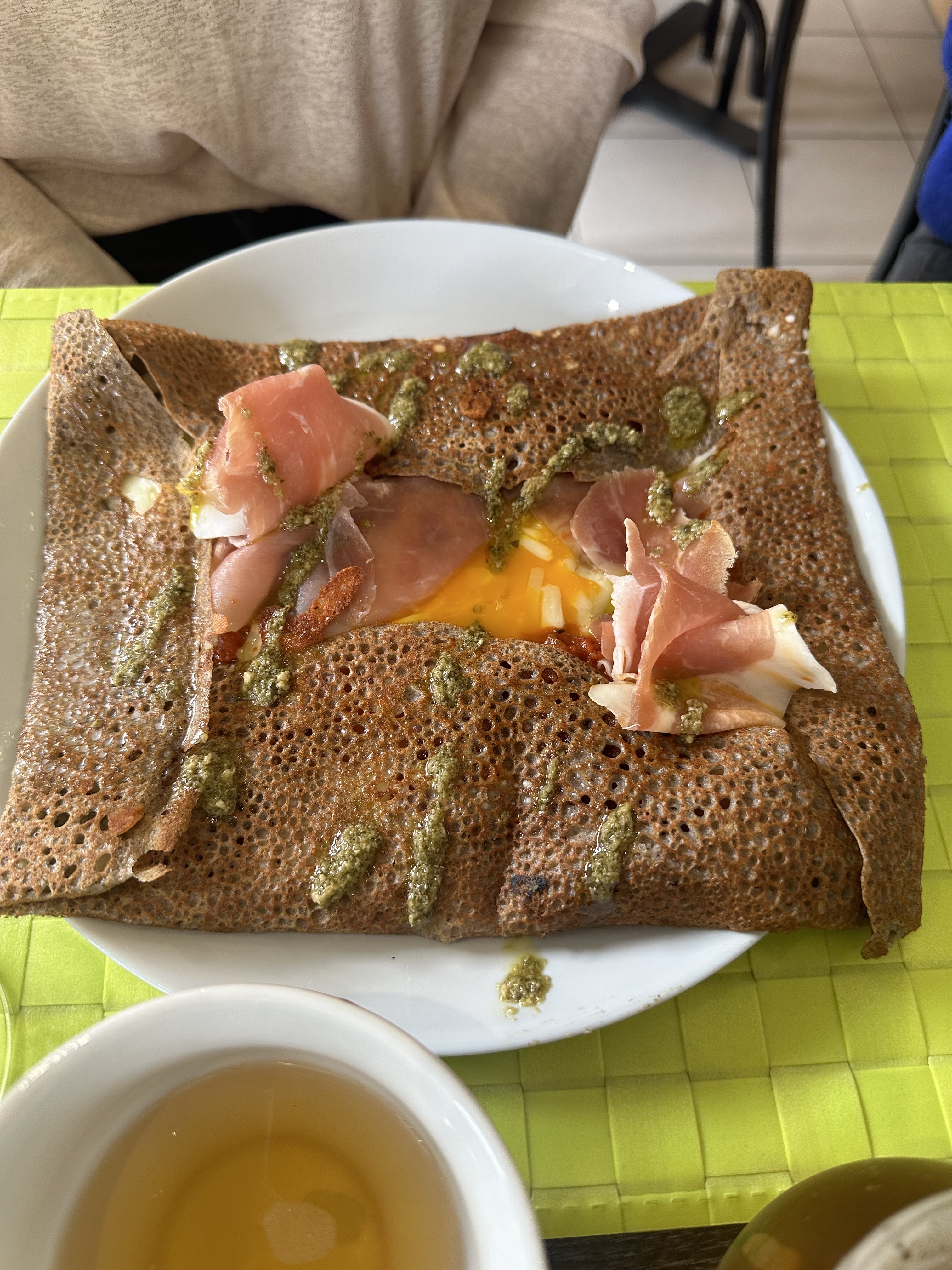 L'emplacement du restaurant est très agréable, vous êtes en centre ville mais pourtant vous vous retrouvez dans un coin coupé du bruit de la ville et l'environnement est très sympathique. Côté cuisine, les galettes sont excellentes et très copieuses, les salades sont elles aussi excellentes et très généreuses. Pour juger les dessert il faudra que je revienne car je n'avais plus assez faim pour y succombé.