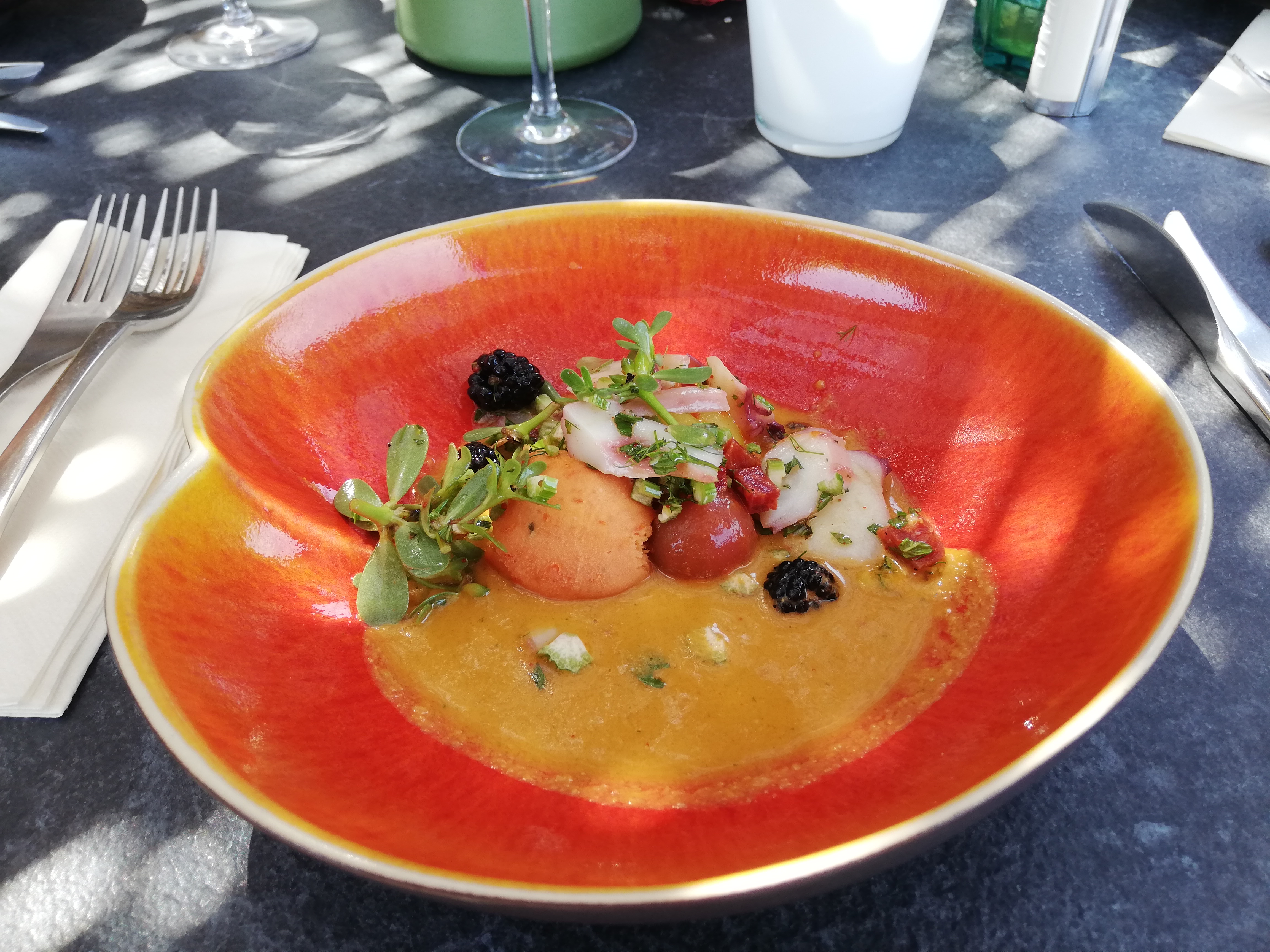 Un beau moment de partage de saveurs. Chaque plat est une découverte, il y a du pep's et des herbes sauvages qui magnifient tout.