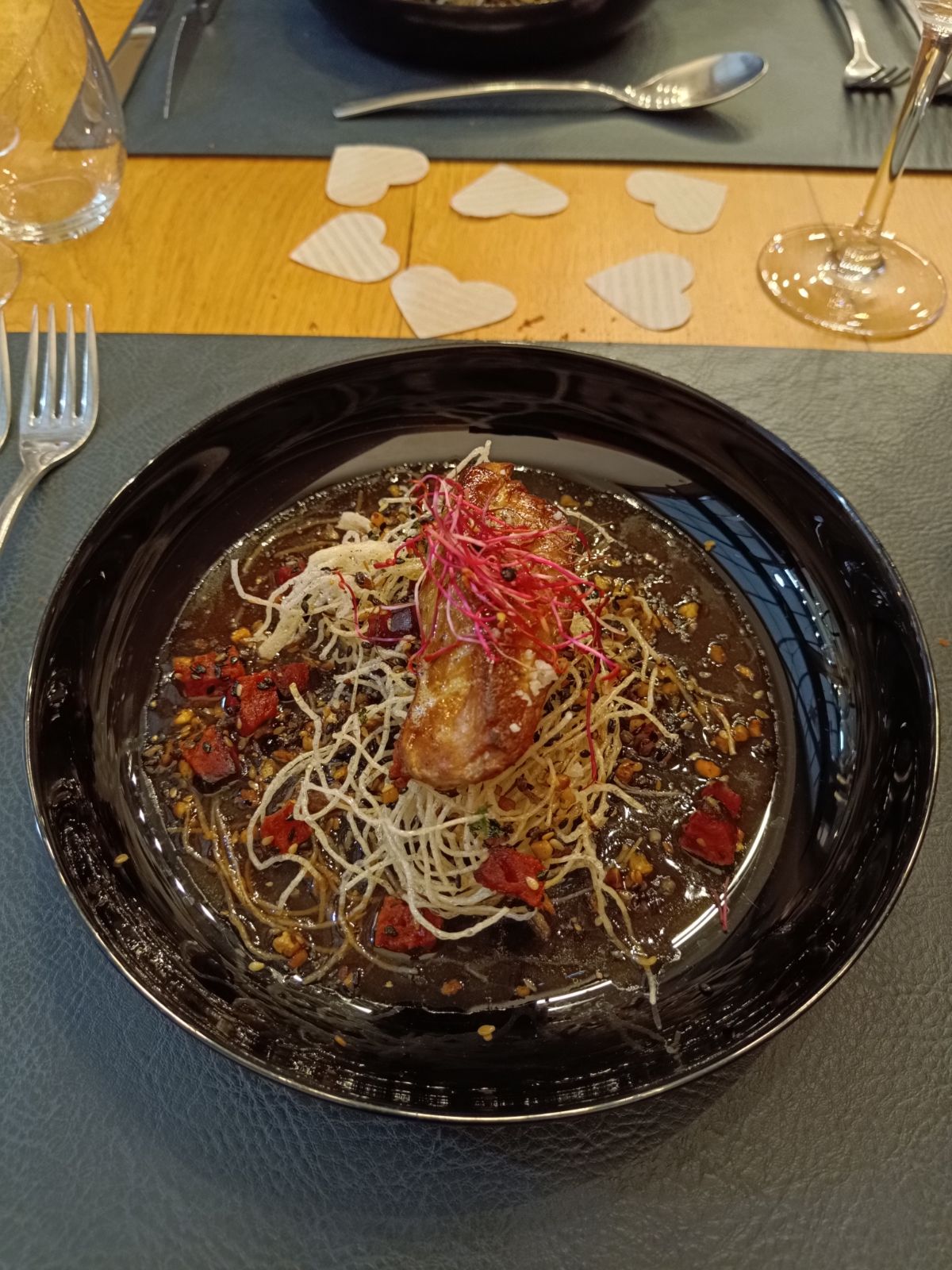 Ce soir pour une énième soirée à l'atelier excellent repas pour la Saint Valentin. Des mets exquis que l'on ne retrouve nulle part ailleurs. Que du bonheur....