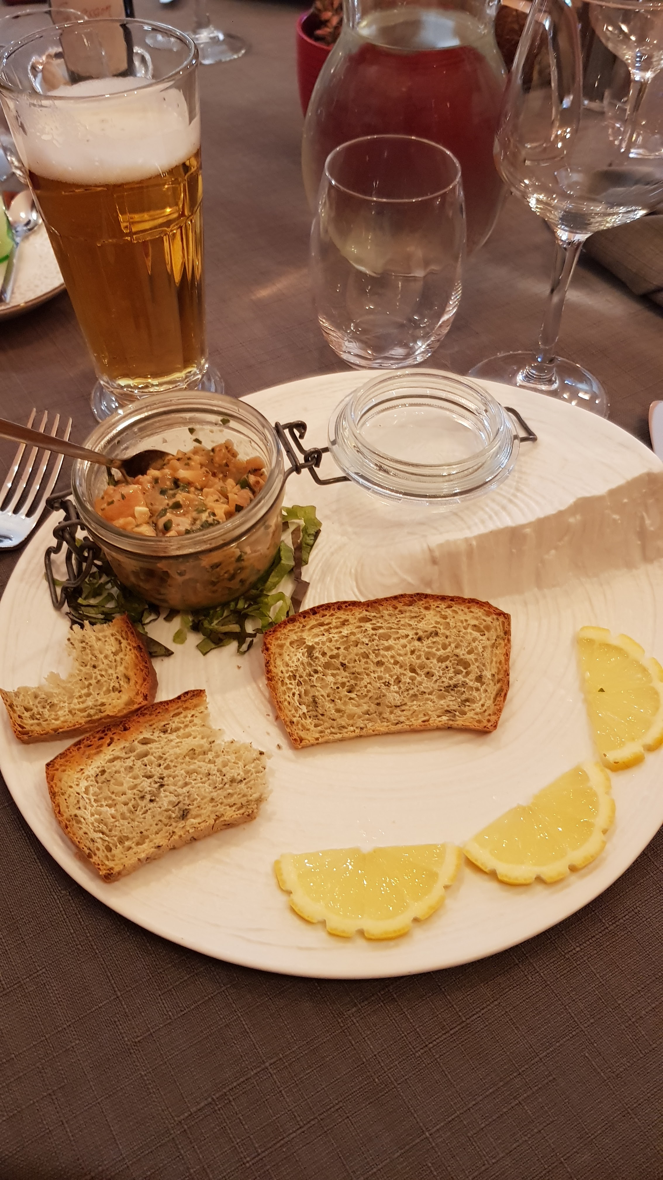 Repas à deux, le 26 06 2021. Tartine de boudin noir et rouget snacké, salade composée, et cassoulet à partager ! Des cuissons justes, de bons assaisonnements, et que dire à propos du cassoulet ?! Une tuerie !! La saucisse maison est parfaite et les haricots sont mijotés à souhait ! Les desserts sont une très bonne expérience également ! Du service en salle à l'assiette tout à été parfait ! Merci beaucoup ne changez rien !!