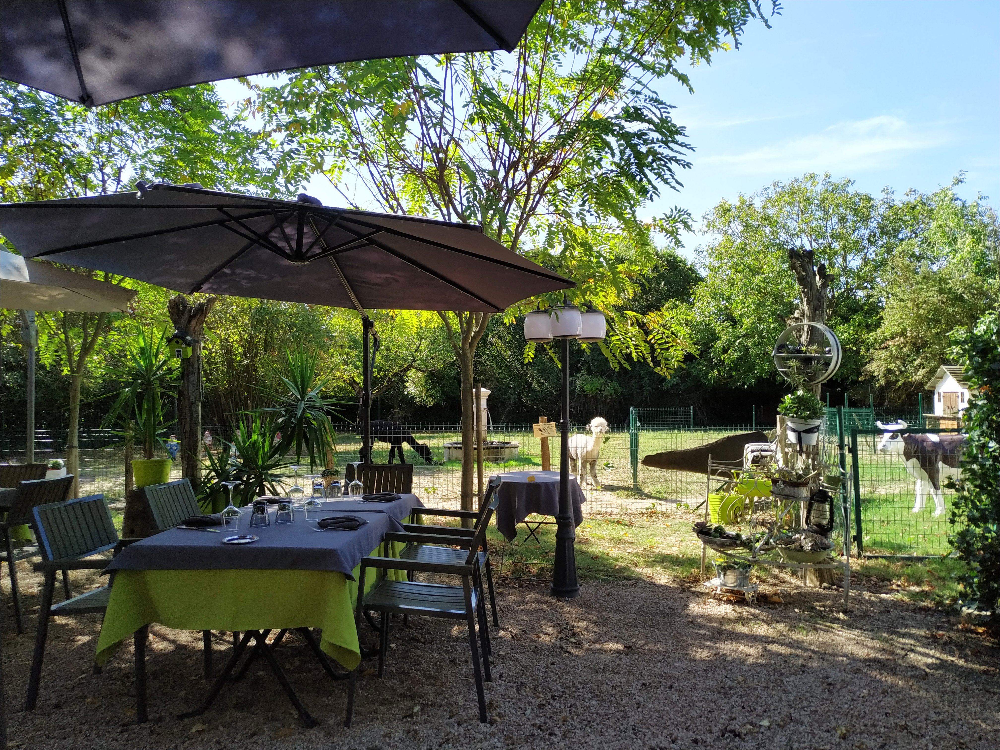 Joli cadre , repas en terrasse devant une petite ménagerie dont des alpaga.. très bon accueil, serveuses aimables et souriantes. Le cassoulet est délicieux tout est frais, fait maison des assaisonnements justes. Le chef vient vous servir,au contact de ses clients vraiment parfait , menu enfant excellent aussi allez y les yeux fermés .