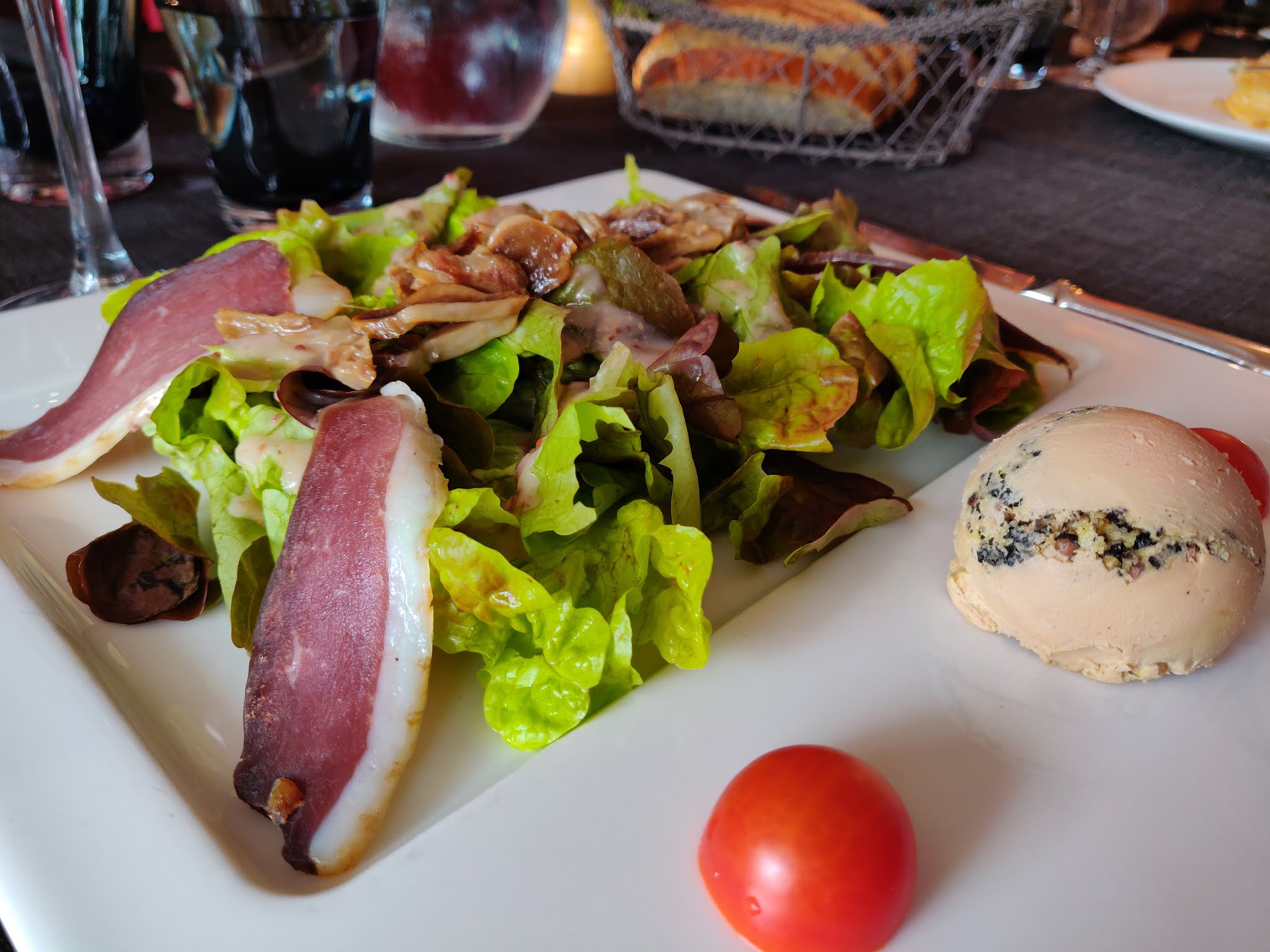 J avais en mémoire l assiette gourmande foie gras, magret et gésiers confits, suivie de son cassoulet....donc énorme déception. Les plats servis aux autres tables semblent copieux et bons . Le service est agréable, la terrasse accueillante.