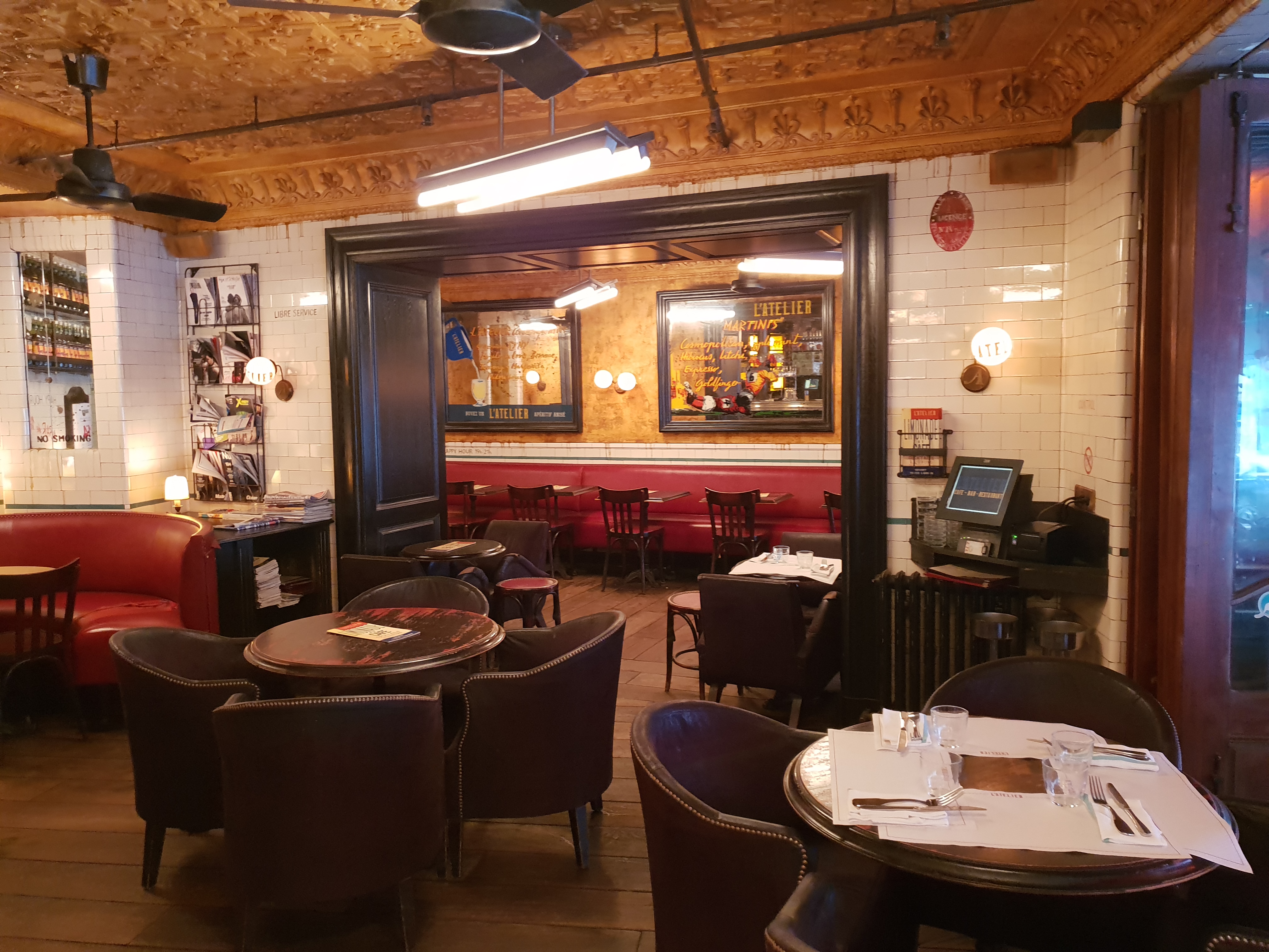 ahhhh comme c'est bien, à l'époque où l'Atelier était un petit café sans prétention, un peu vieillot, mais justement, avec tu charme! de vieilles petites tables, des recoins, avec une ambiance indéfinissable...et des croques monsieur à 6 € !!