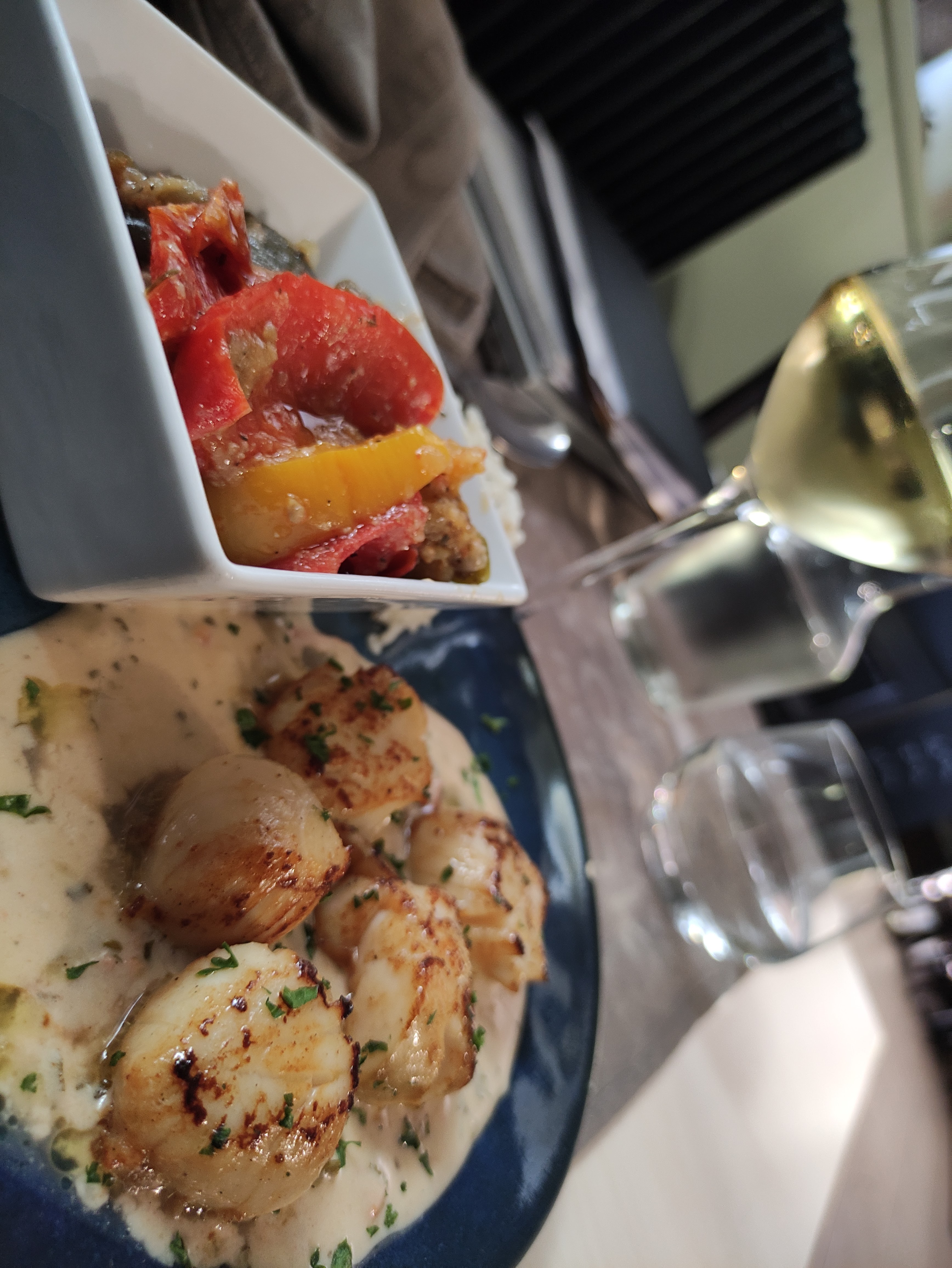 Nous avons été très bien accueillis. Les produits sont de qualité. Choix varié de plats. Certaines saint Jacques croquaient sous la dent je pense qu’elles étaient mal nettoyées, mais c’était vraiment très bon et léger. Beaucoup d’attente.