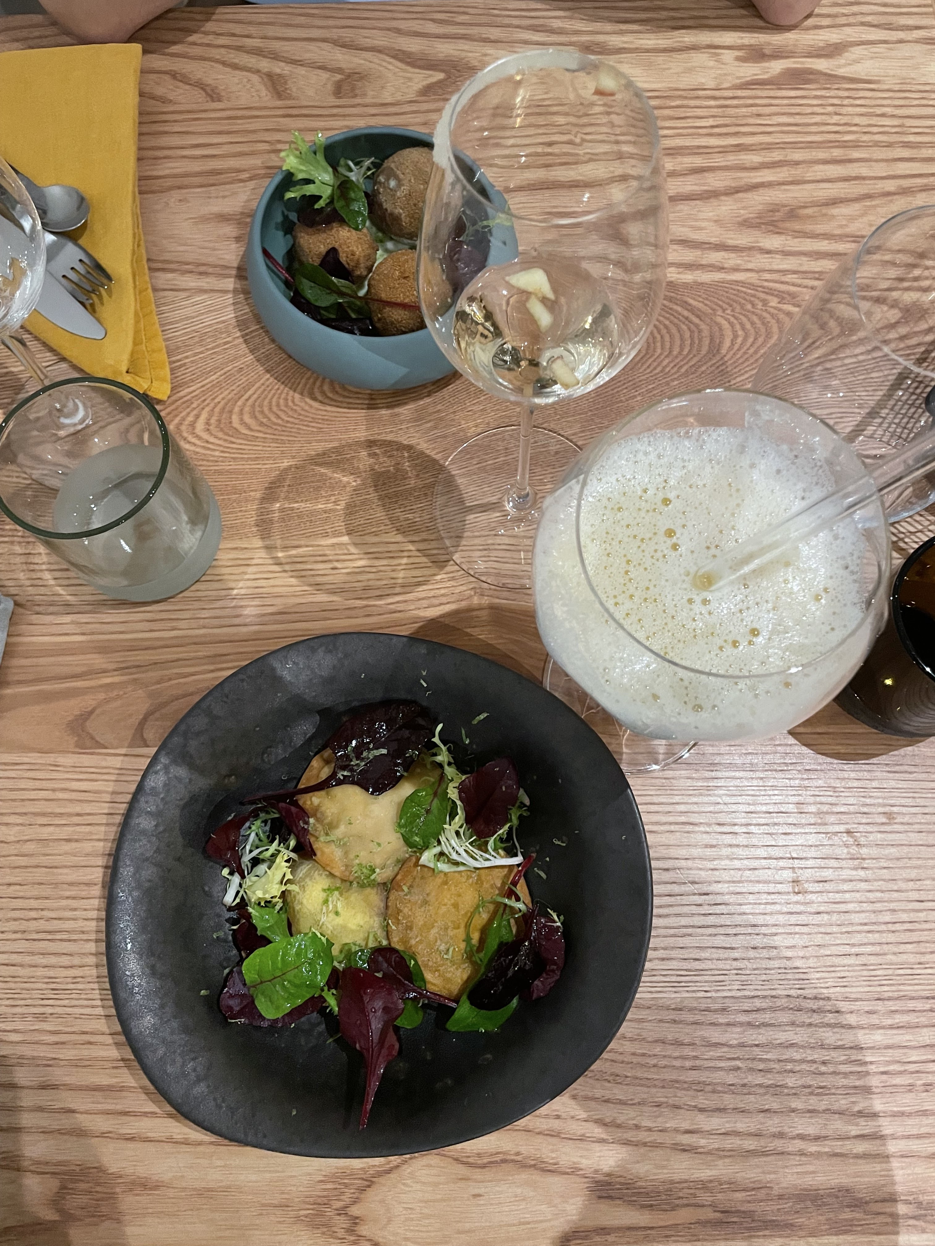 Venus en famille (table de 6), nous avons mangé en terasse. Conquis par les entrées, les plats étaient également à la hauteur. Excellents conseils de la cheffe de salle concernant les vins et cocktails créés par ses soins. Les desserts étaient aussi beaux que bons ! Nous recommandons à l’unanimité la buratta en entrée et la sphère en dessert. Le cadre est mignon, qualité au rendez-vous, nous reviendrons.