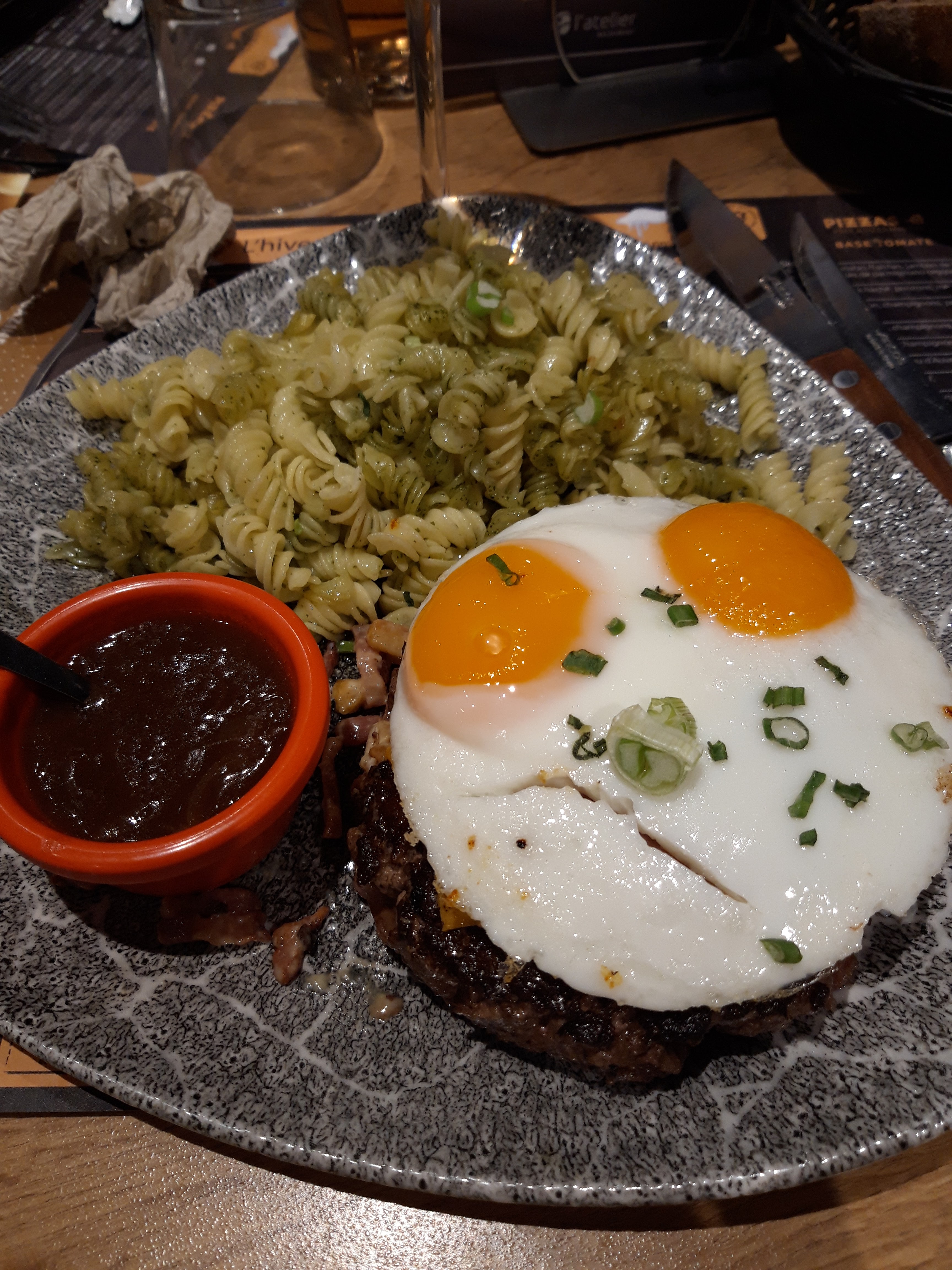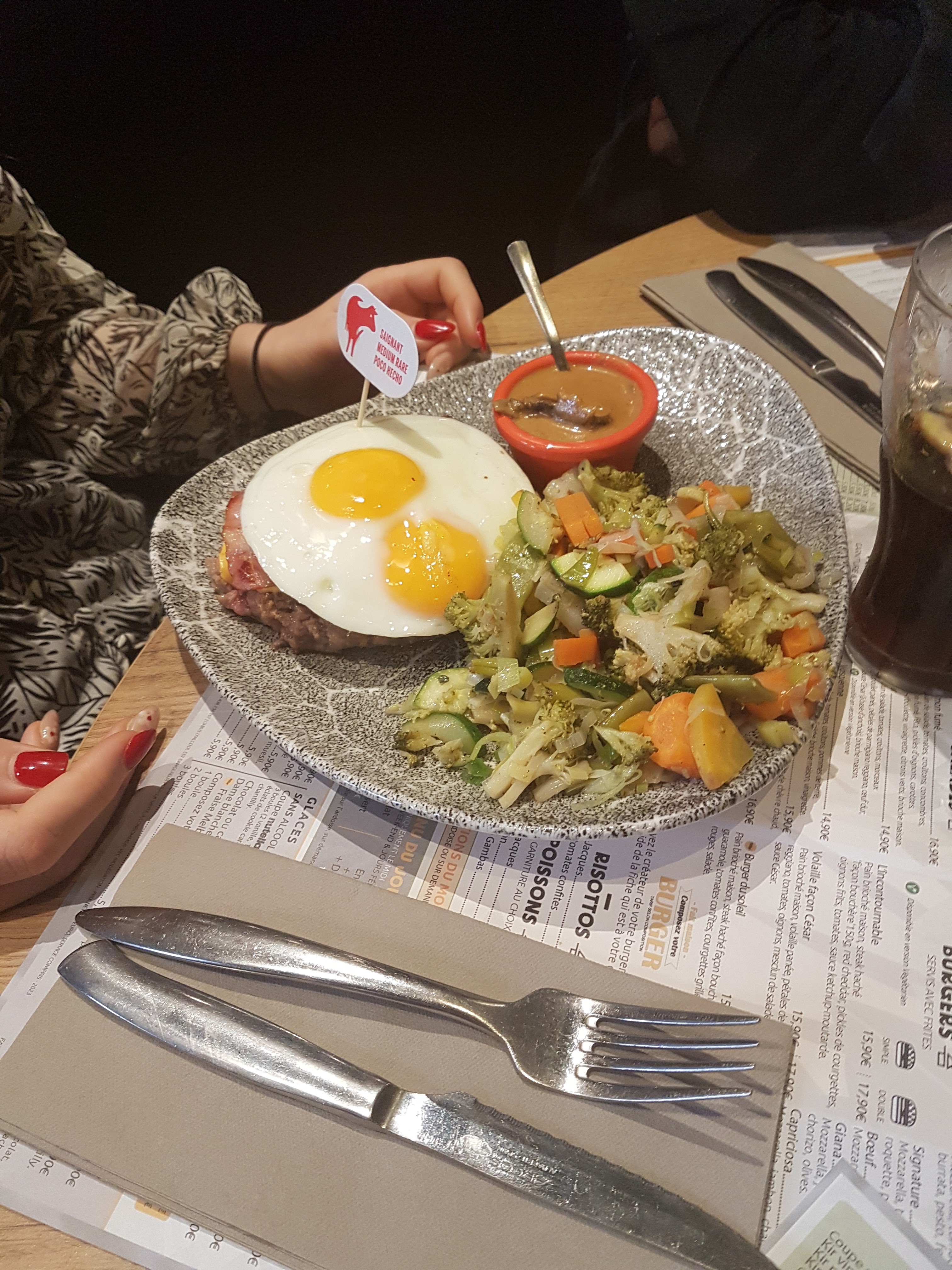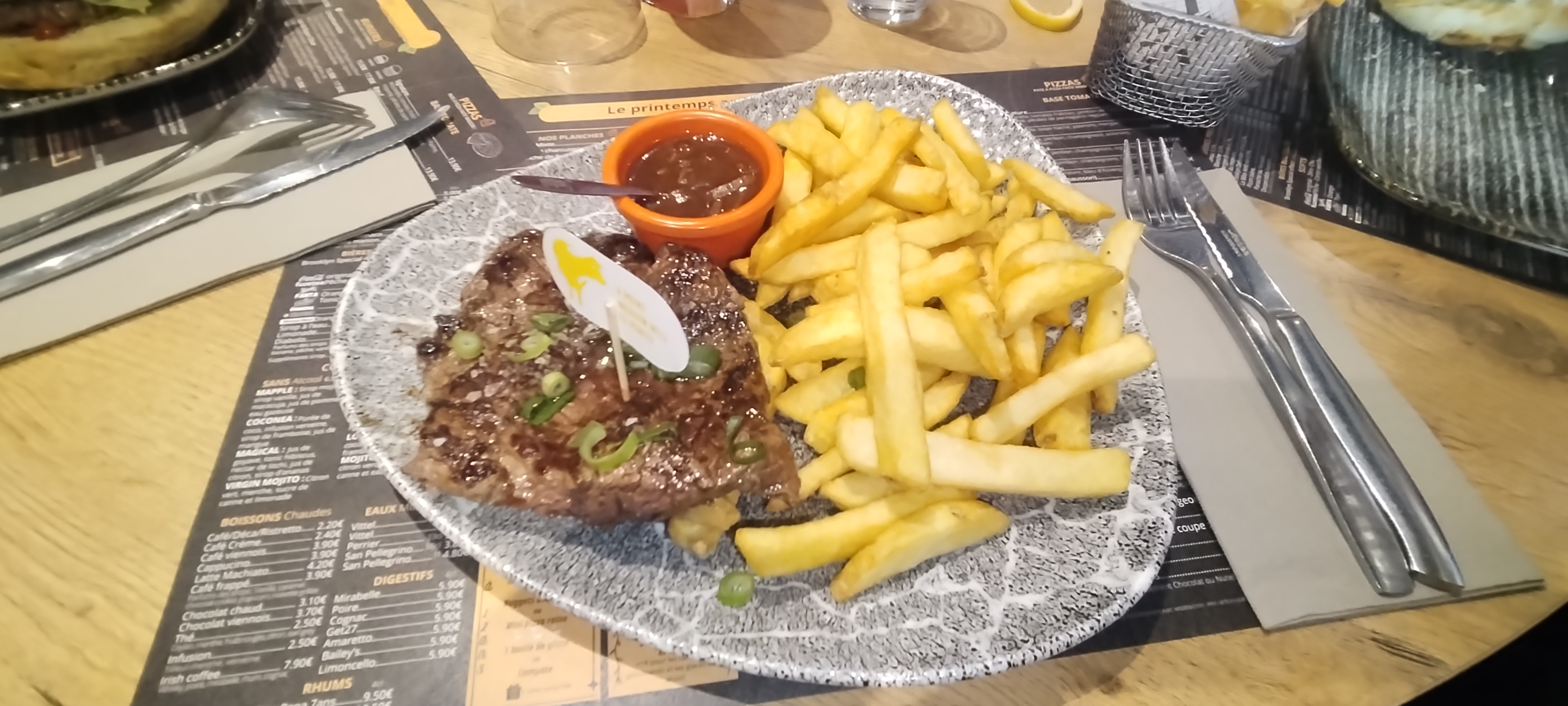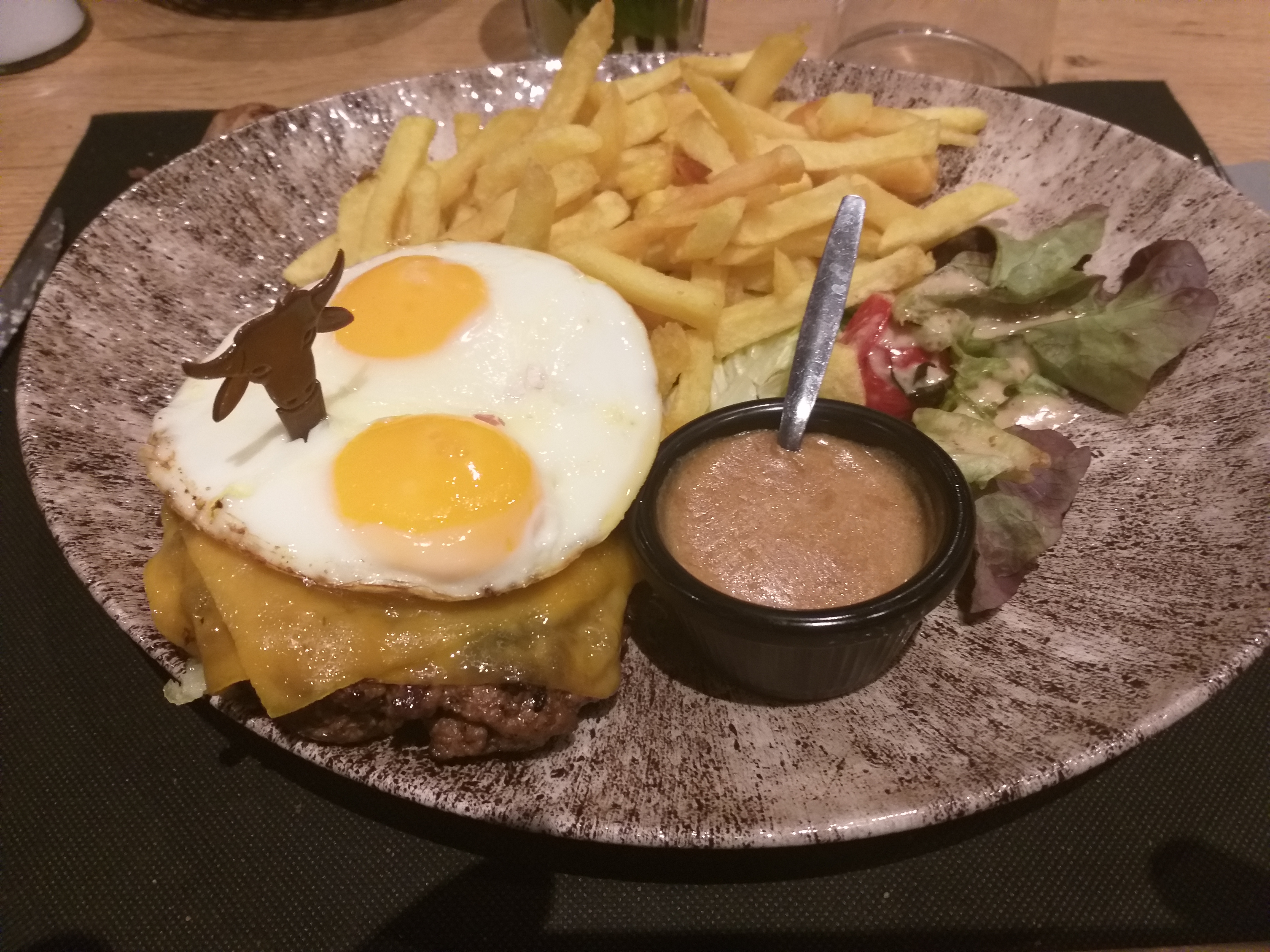 Passé une bonne soirée. Juste les 2 petits oeufs sur mon steak à cheval étaient un peu trop cuits (le jaune était dur)... Dommage !