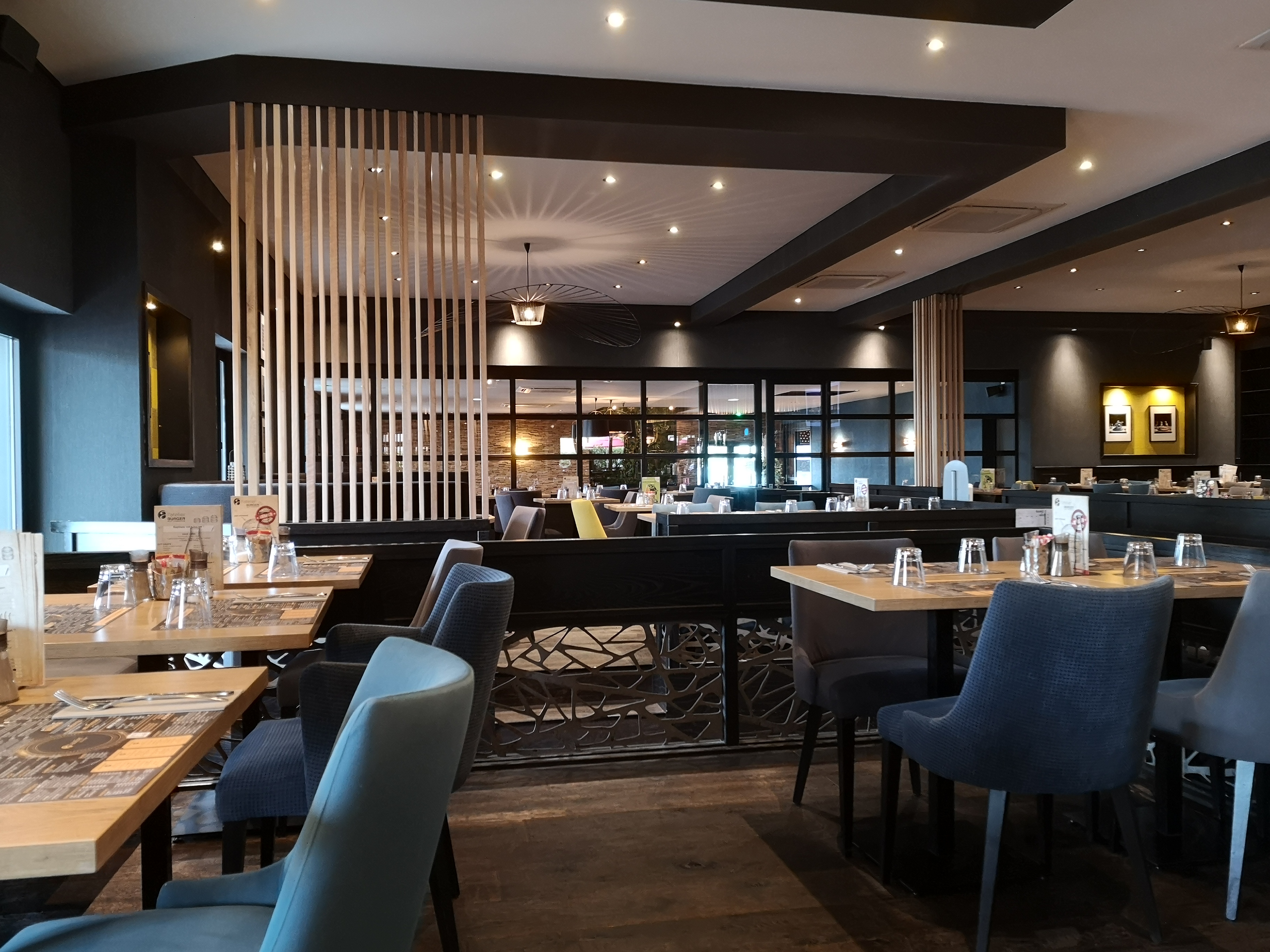 Restaurant sympa. Grande salle avec une belle déco. Accueil souriant. Malgré le monde, ça n a pas été dérangeant. Notre serveuse Sophie, très souriante et professionnelle. Nos plats très bons, aucun reproche à faire. Nous avons passé un bon moment.
