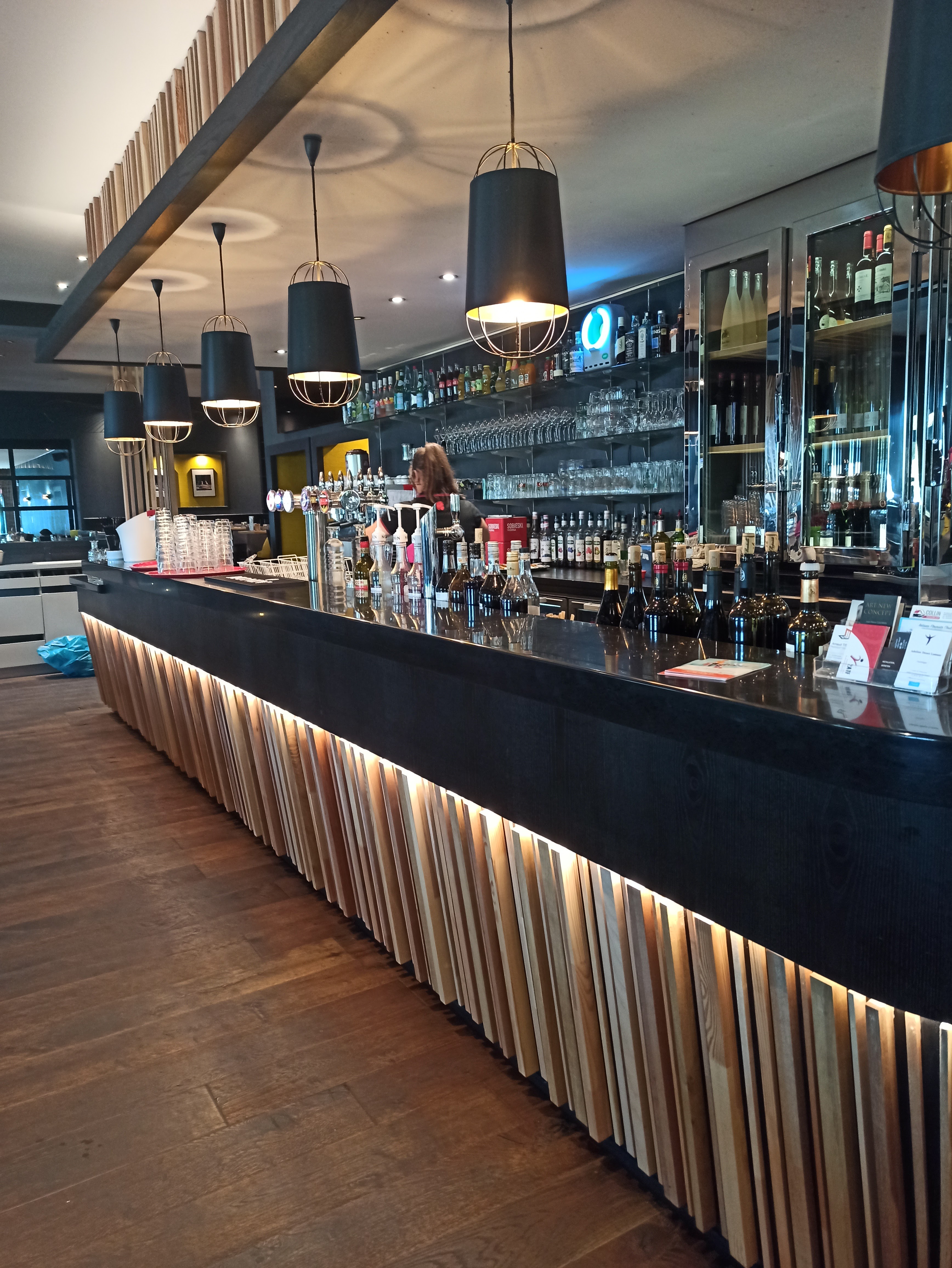 Nous avons été manger à 4 personnes ce vendredi midi pour la première fois dans ce restaurant spacieux très bien décoré. Le serveur était très professionnel, sympathique et dynamique. Les cocktails étaient très bons, les fromages de qualités et les plats excellents servis dans de magnifiques assiettes. Nous sommes très satisfait! Le seul bémol se sont les toilettes, seulement une toilette femme car la 2eme hors service depuis plusieurs mois (selon les dire d’une dame qui attendait son tour comme moi) pour un si grand restaurant il n’y a vraiment pas assez de toilettes c’est dommage.