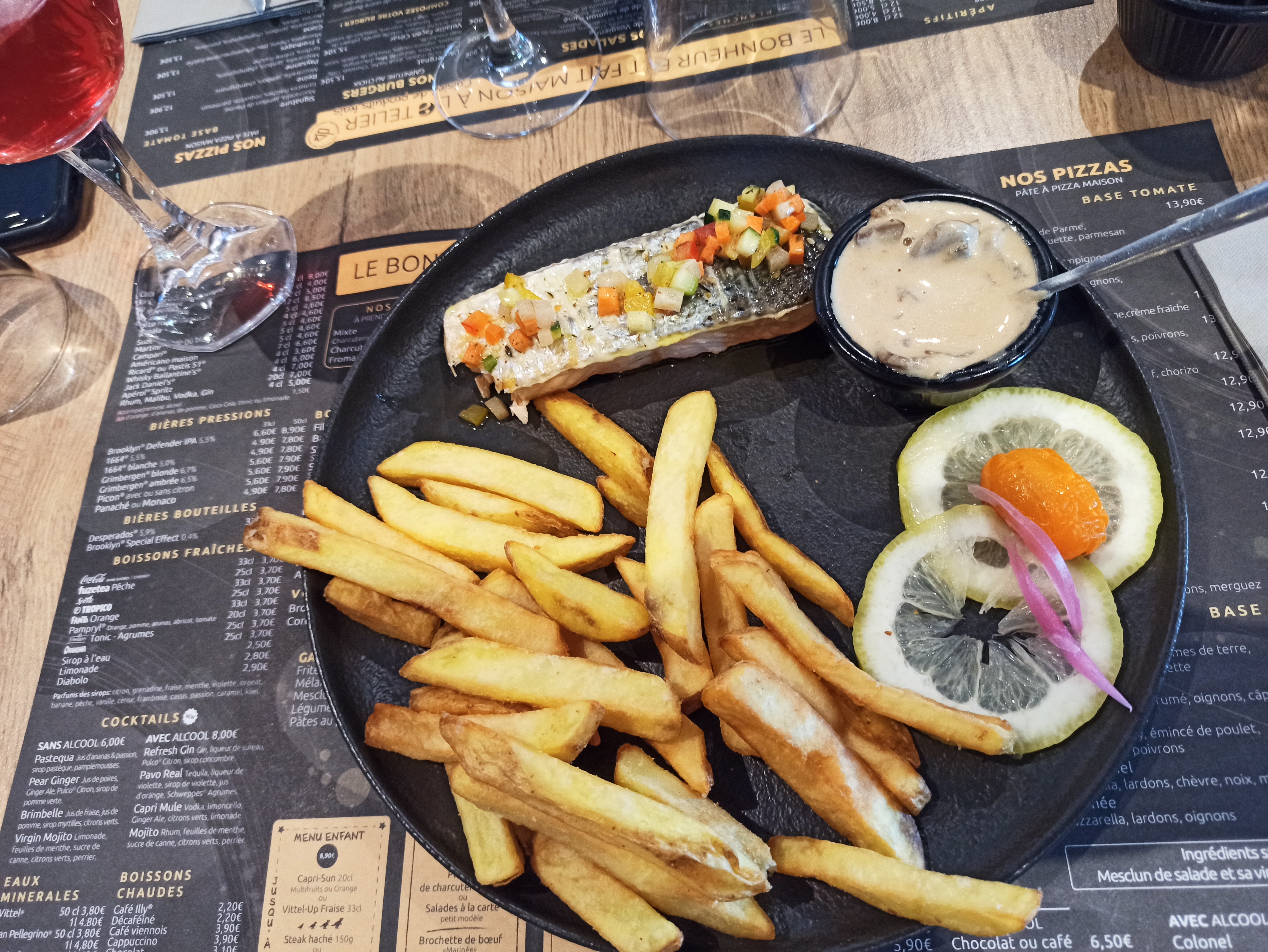 Comment dire... on a eu les boissons bien après les plats, salade césar avec une sauce très à l'anchois... desperados maison imbuvable autant mettre de la vodka pure... et je ne vais pas parler des plaintes du barman qui devrait peut être changer de métier... j'avais toujours été satisfaire mais apparemment pas le bon jour...peut être envisager une meilleure cohésion pour avoir des serveurs plus souriants...