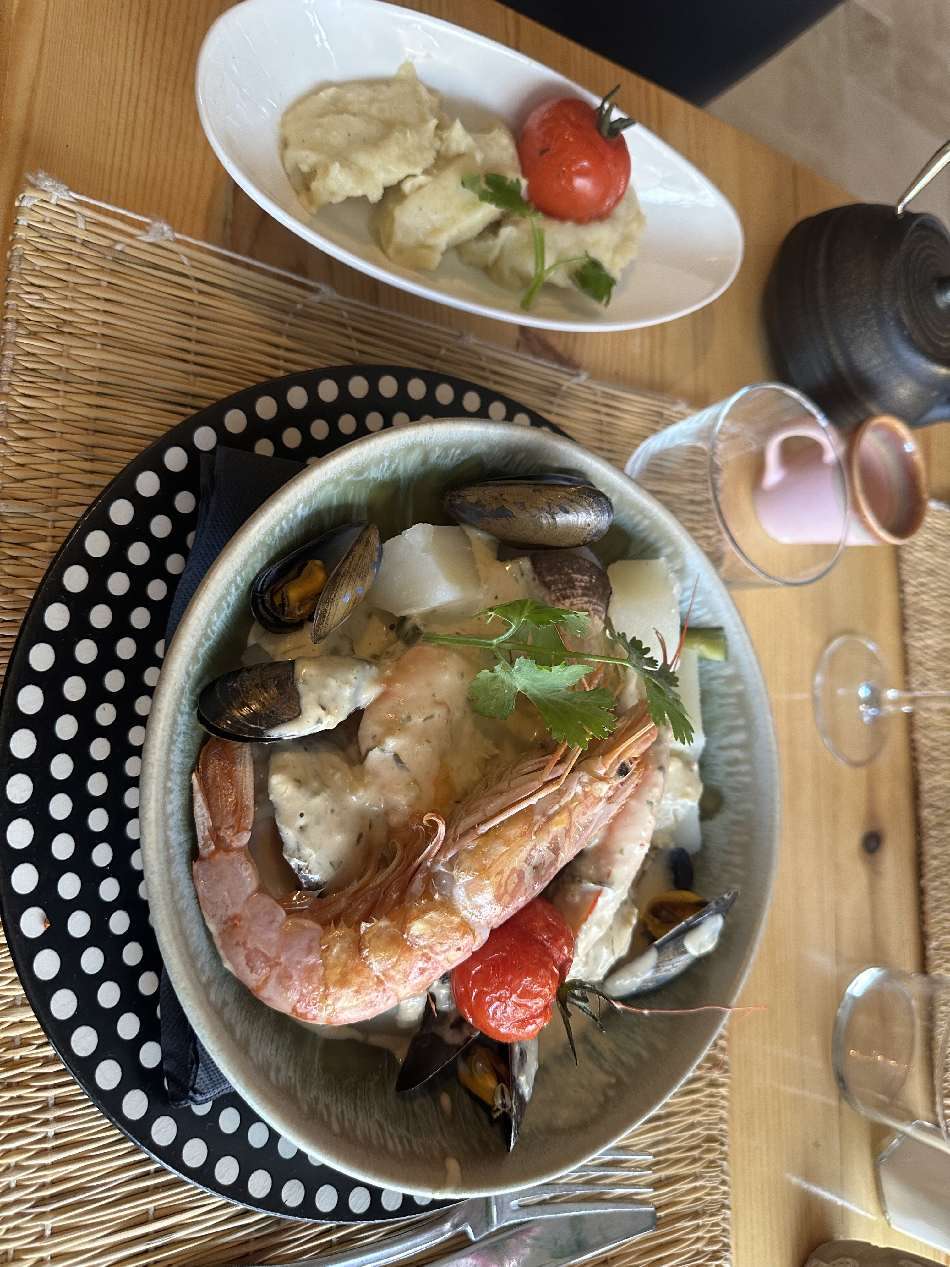 Une ambiance estivale et chaleureuse, un service plus que parfait avec Carole👌🏼, des assiettes delicieuses (belle surprise avec les moules coco/curry), et les meilleures profiteroles de toute ma vie 🤤 à refaire !