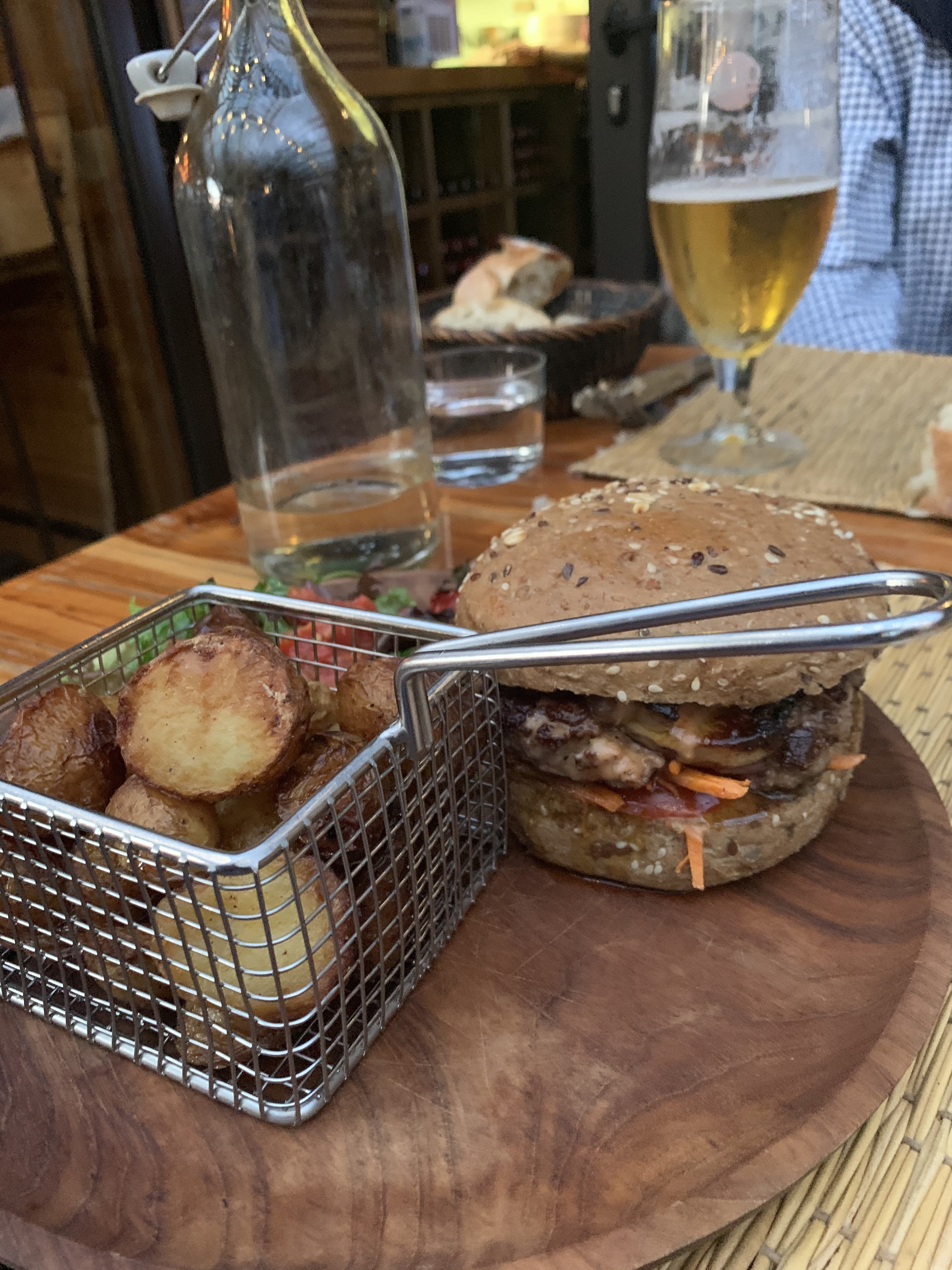 Carte du midi et du soir qui différent pour proposer des ambiances différentes. On ne se perd pas dans le choix et on va à l'essentiel, petit plus avec le burger qui change au gré de ce que le chef aura trouvé au marché. Décor agréable et ambiance chaleureuse.