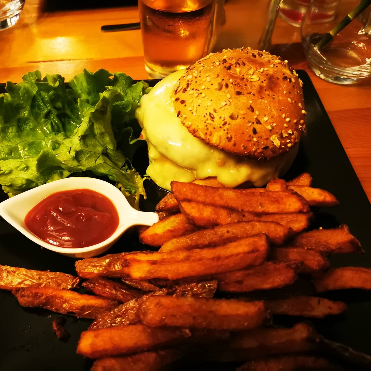 Venue pour nos 2ans avec mon chéri, nous avons passé un très bon moment ! Nous avons pris une planche friture en guise d'apéritif/entrée, elle était incroyable !! Assortiment de petit camembert frie, calamar frie... un délice ! En plat mon chéri a pris un camembert rôti avec des frites maisons très très bon pour avoir même piqué dans son assiette ! Personnellement j'ai pris un pavé de saumon avec des frites maison ! Très bon ! Nous n'avons malheureusement pas pris de dessert car notre estomac était déjà agréablement bien rempli ! Le service était top ! Le chef, seul en cuisine, a su nous régaler !! Petit remarque faite lors du paiement: peut être veiller à ce que les habitués restent des habitués courtois. Les remarques permanentes n'étaient pas super mais l'établissement nous a bien compris et à précisé que ce problème ne se reproduira pas, bien qu'il soit minime !! Encore un grand merci, n'étant pas une grande adepte des restaurants, vous avez su me conquérir !