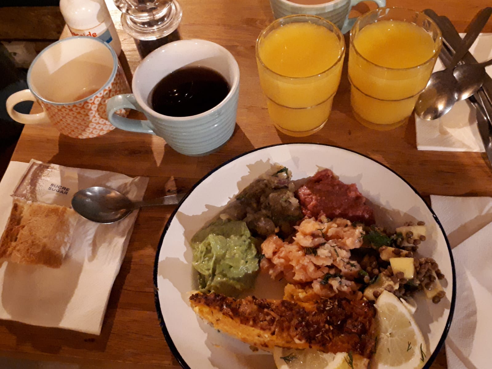 Buffet à volonté : Très belle diversité dans le buffet : salades, houmous, saumon, charcuterie, omelette, gâteaux, pancakes, riz au lait ! On a envie de tout testé et on aurait tort de s'en priver parceque tout est très bon (mention spéciale au bacon)