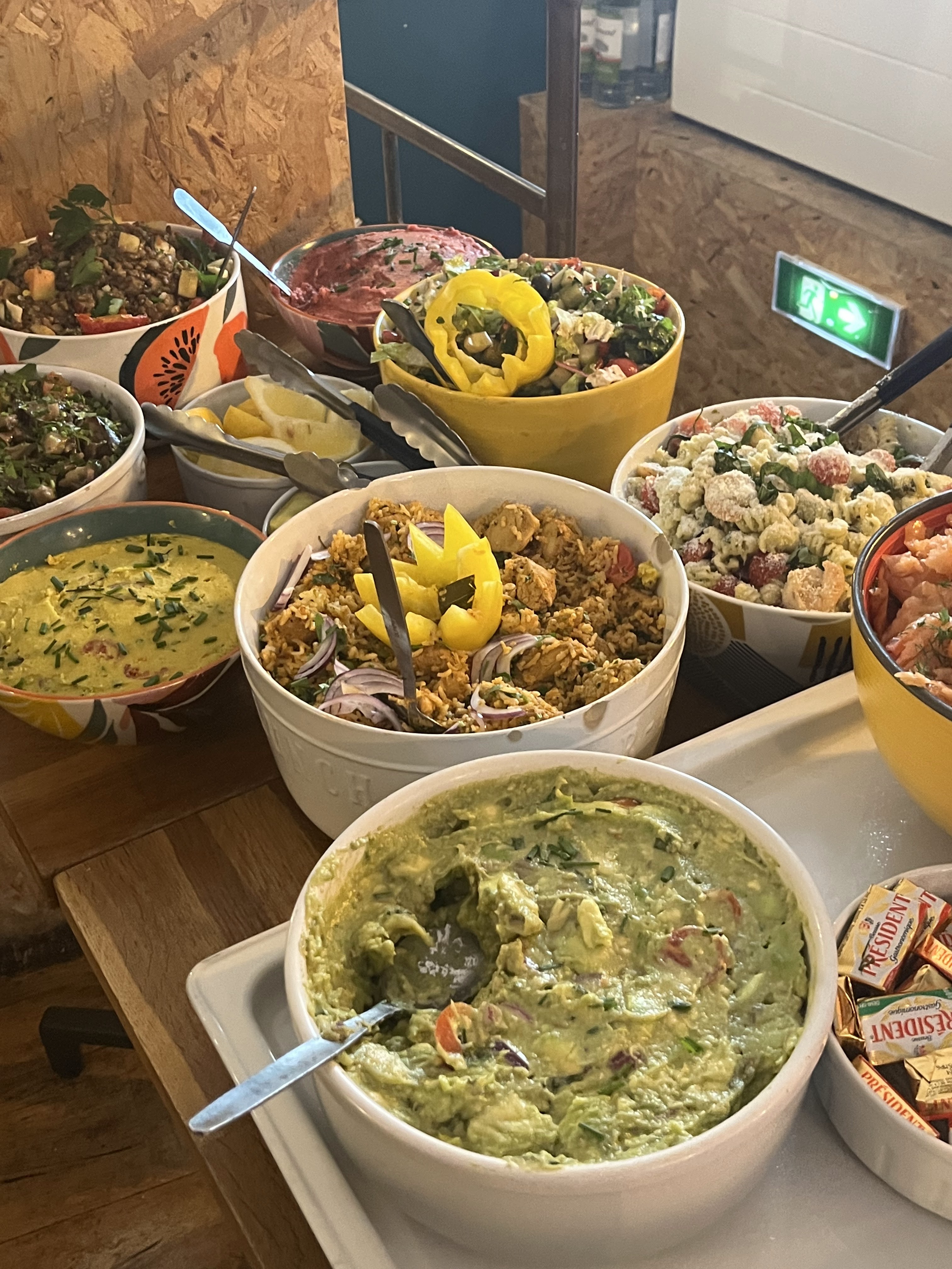La cuisine était vraiment excellente, les produits étaient frais et les plats super bons !! Une belle diversité de plats, autant salés que sucrés ! L'endroit est super sympa ! Mention spéciale à la salade de pâtes qui était 💯💯 !!