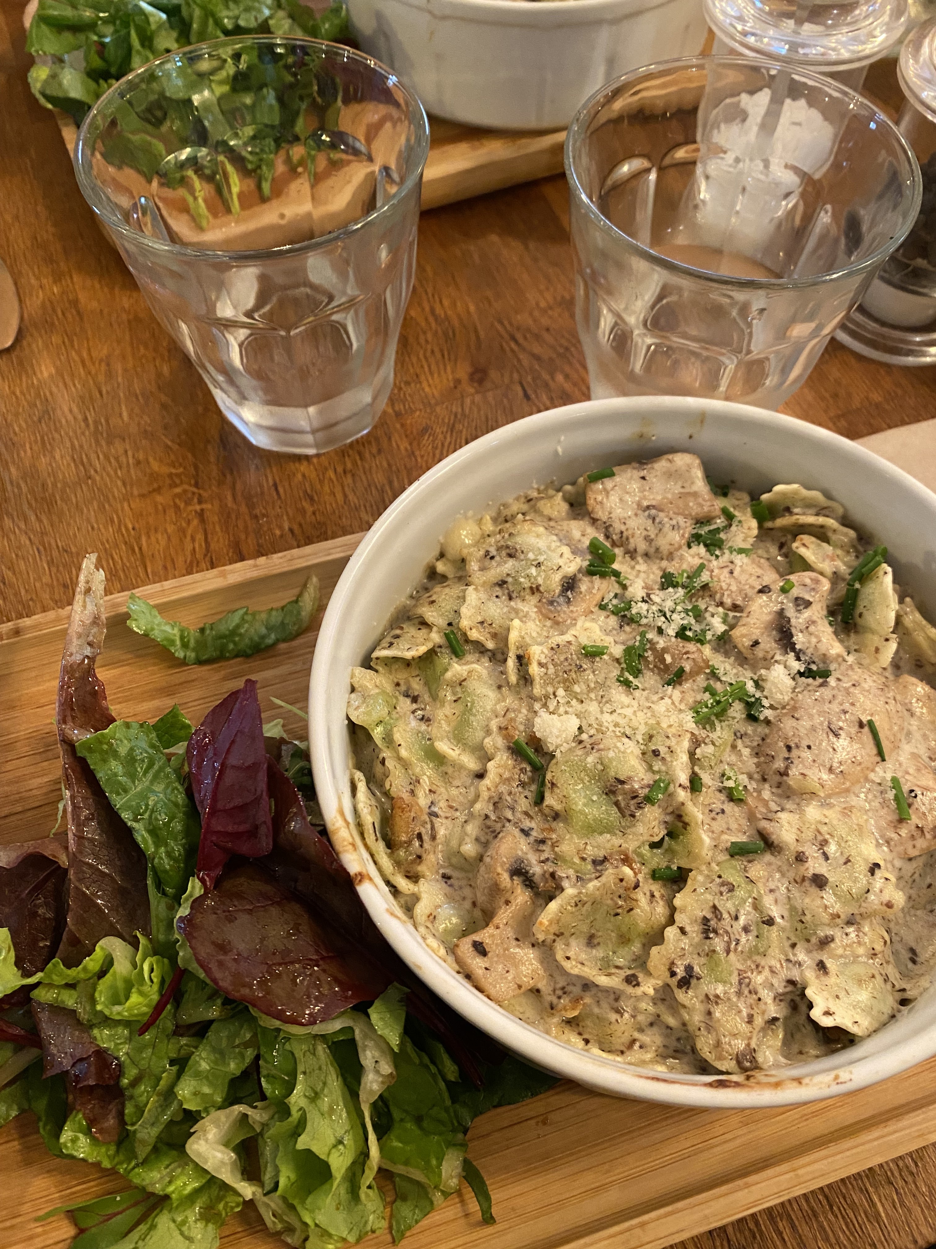 Leur ravioles truffées sont excellentes je peux que vous les recommander. Les quantités sont bonnes vous ne vous retrouvez pas avec trois raviolis dans l’assiette. De plus, elles sont à 13,5 le midi au lieu de 16,5 c’est toujours bon à savoir ! Le service à table est rapide mais sachez qu’ils font aussi à emporter.