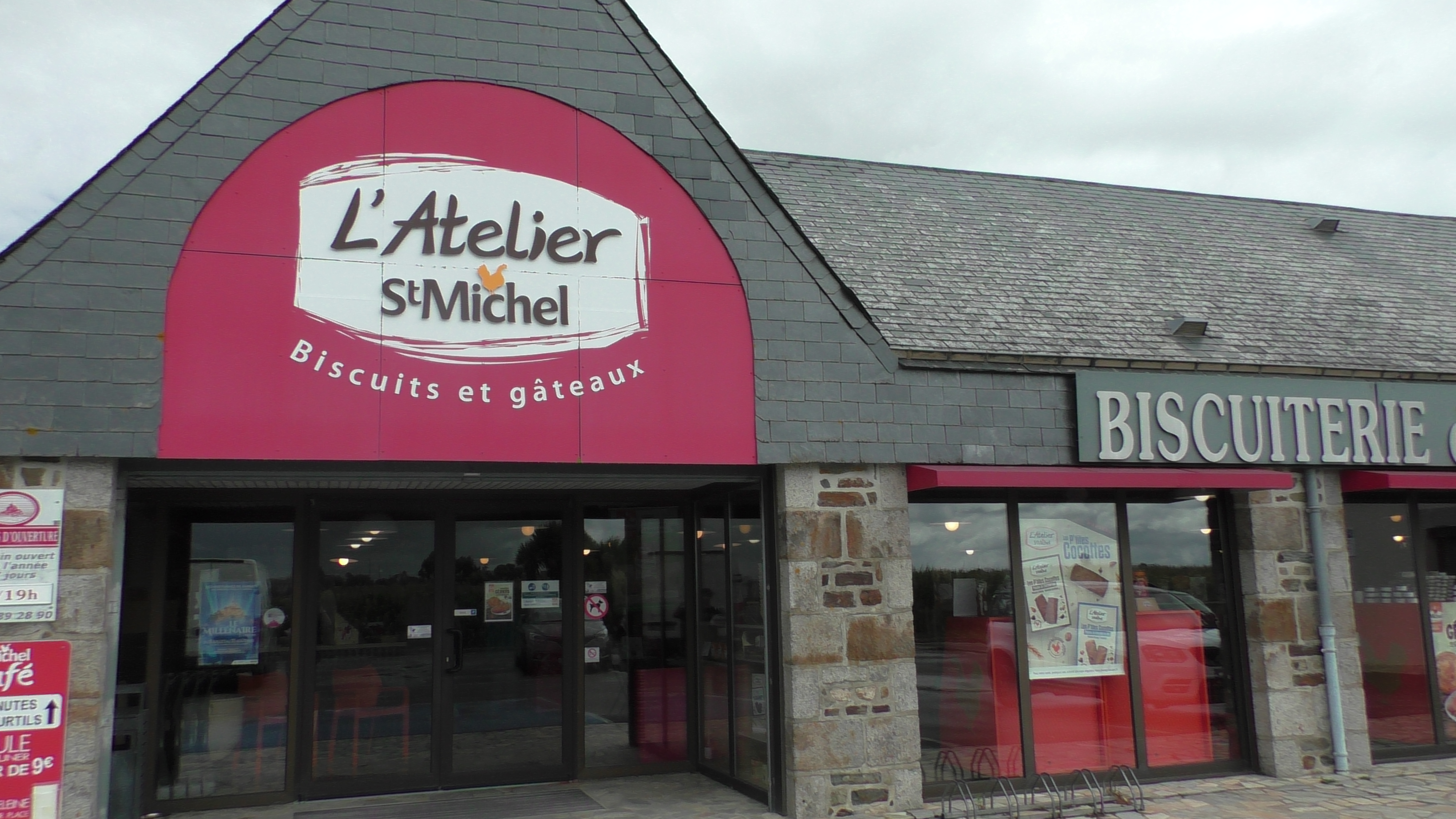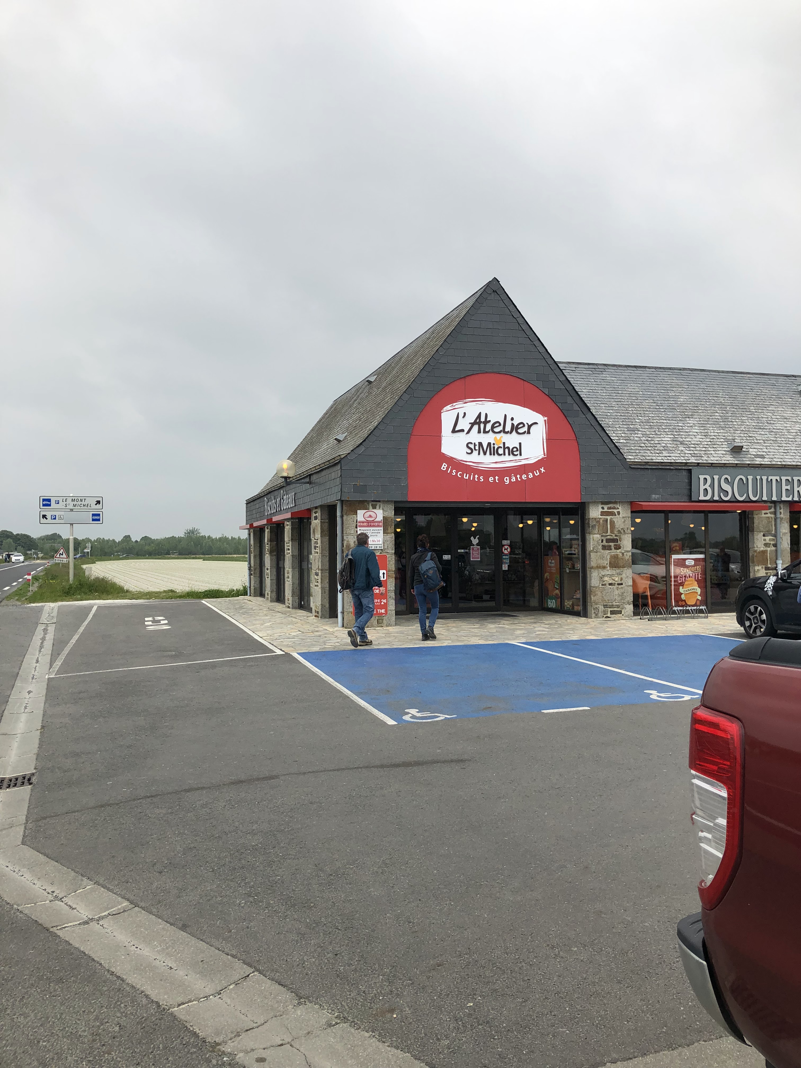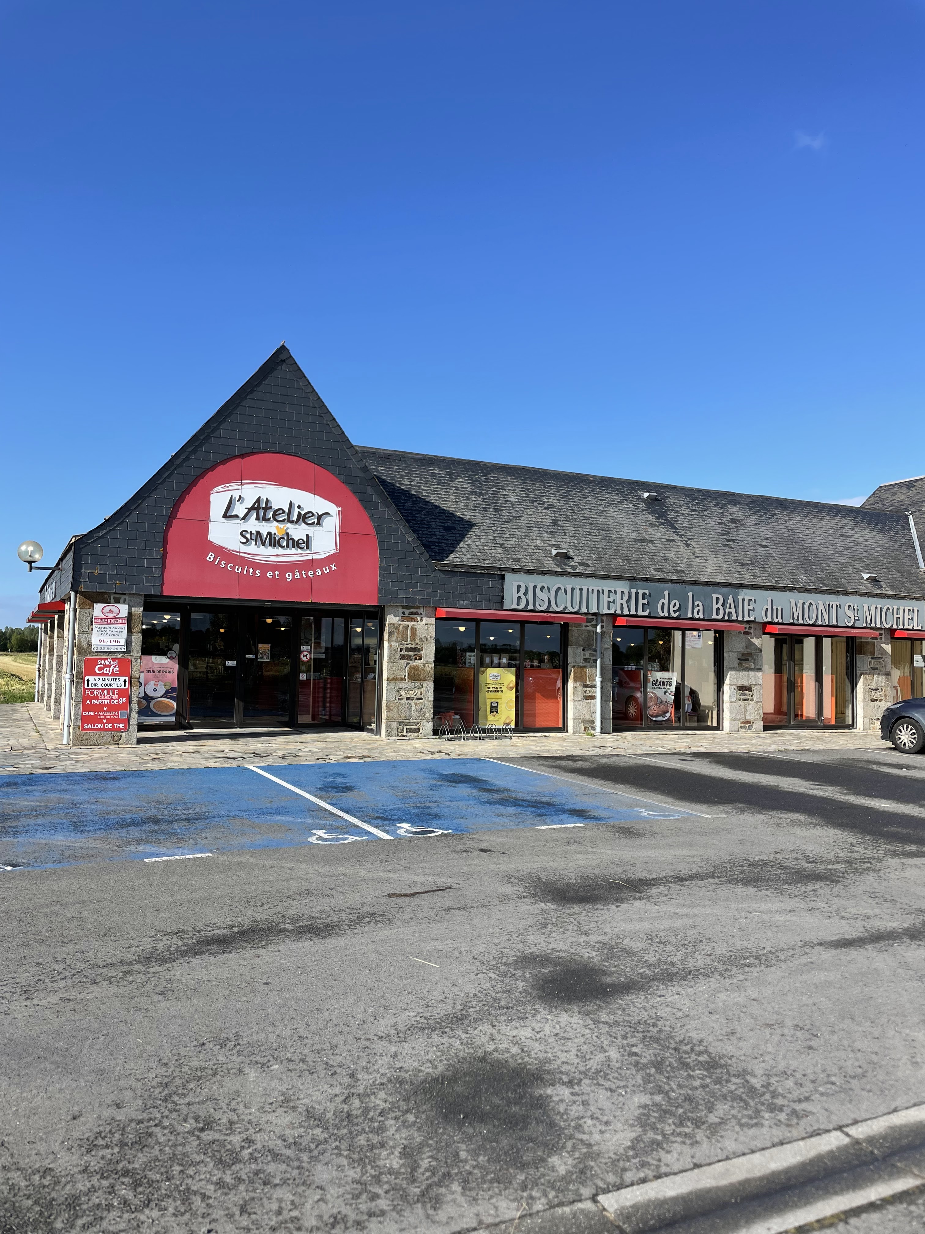 C’est un magasin de la biscuiterie industrielle « Saint Michel » qui n’a rien à voir avec le Mont Saint Michel puisque de « Saint-Michel Chef Chef ». Jouer ainsi sur l’ambiguïté et chercher à tromper le visiteur est particulièrement malhonnête – en mentionnant biscuiterie de la baie… alors que ce n’est pas fabriqué ici… – surtout que vous n’avez pas besoin de ça pour rayonner. Vos biscuits sont différents, très bons alors soyez fair-play et pas mercantiles à outrance, ça ne vous honore pas. Pour info, ce n’est pas contre la marque car dans la suite de nos vacances nous passerons à Contres où il y a l’atelier St-Michel qui fabrique les « Bonne maman », nous irons de bon cœur faire nos emplettes habituelles.
