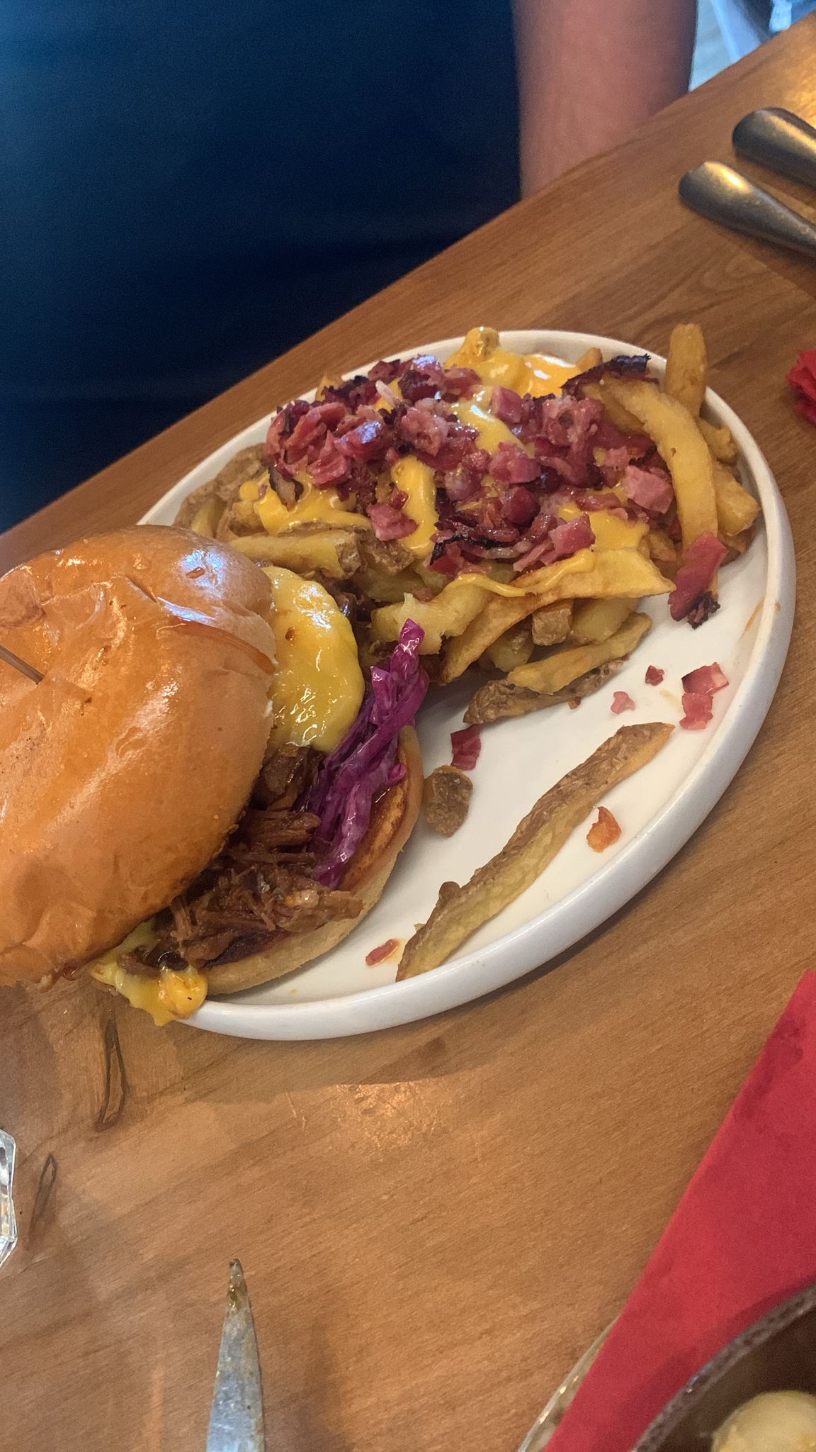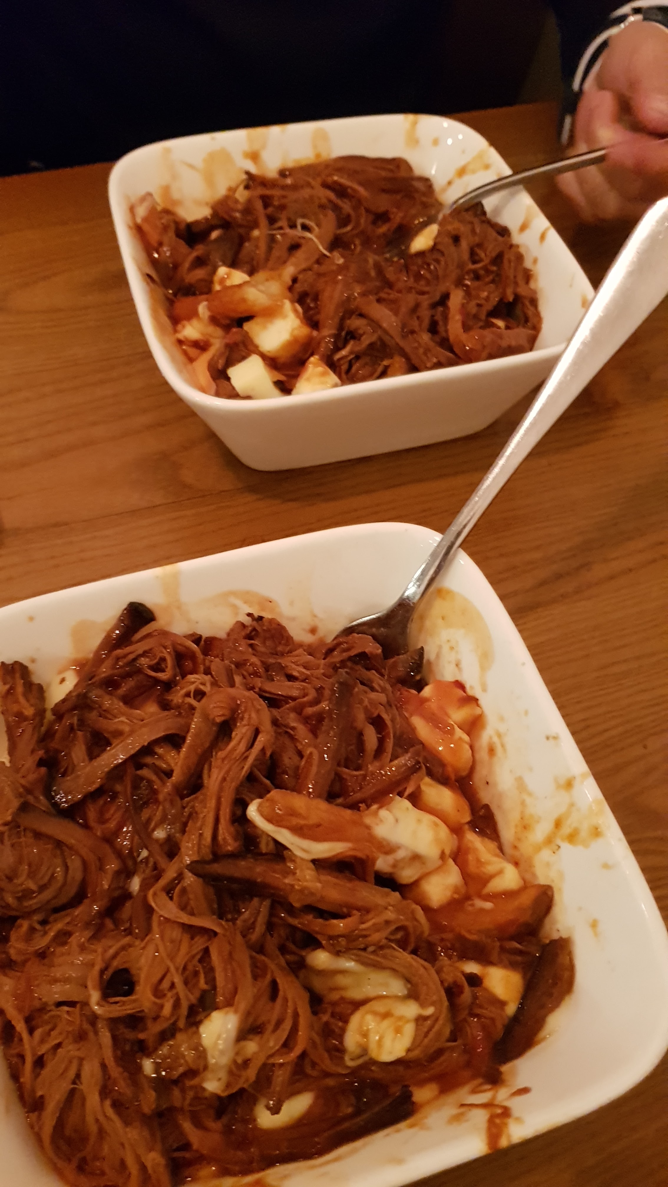 J'aimerais certainement revenir pour la poutine au boeuf effiloché, mais pas pour les burgers que j'ai trouvé sans grand intérêt (il y a bien mieux dans la région pour ce niveau de prix). La poutine, parlons-en: un délice, vraiment la viande mijotée est d'une tendresse... l'ambiance est cosy et la cuisine ouverte inspire confiance. Étant moi-même très sensible, je peux vous assurer que la viande est ultra fraîche. Pourquoi 3 étoiles dans ce cas? Nous sommes arrivés à l'ouverture à 19h mais sans réservation, nous n'avons pas vu qu'une personne gérait la salle et quand nous avons voulu prendre place, ce dernier nous a fourni une explication qui était tout sauf commerciale. Si je peux me permettre, dans un établissement comme celui la, la moindre des choses serait que le personnel de salle ait un uniforme. Ceci augmenterait la visibilité et dans ce cas, nous n'aurions pas été nous installer et nous ne nous serions pas fais sermonner comme des enfants (surtout que la salle était vide à notre arrivée). Sans toute cette route que nous avons faits pour goûter cette fameuse poutine (Bruxelles-->Paris), il va de soi que nous serions parti à cet instant. Les serveurs étaient sympa par contre. A refaire...ou pas...