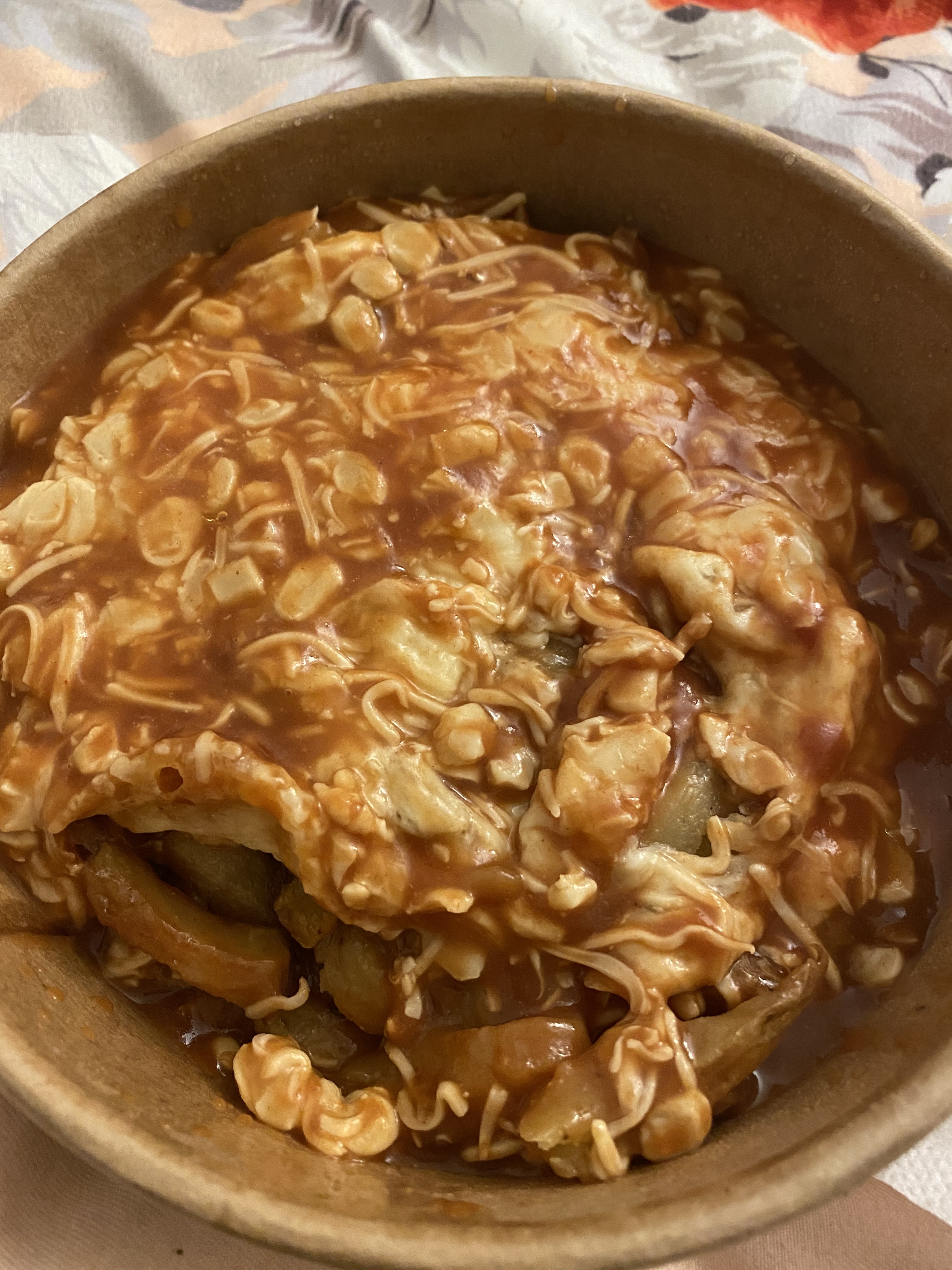 J’ai commandé une poutine j’ai reçu ça, très déçu pas que visuellement mais aussi le goût n’est pas la du tout, cependant il est vrai que les autre plats qu’il font sont délicieux mais ils sont vraiment pas assurer 10,90 de perdu pour ma poutine 😡