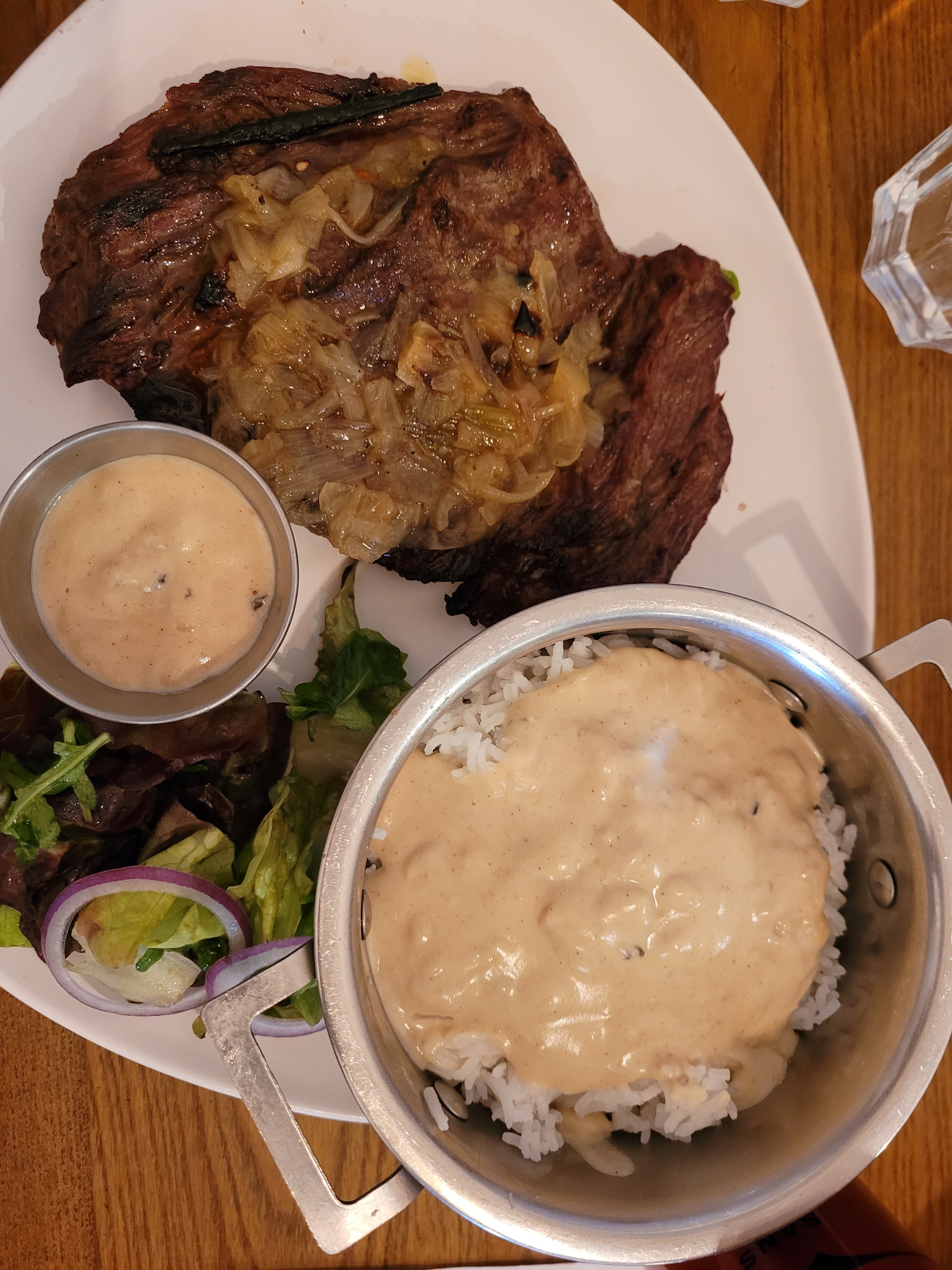 Excellent! J'ai pris une entrecôte, mon ami et son fils ont pris un faux filet et un menu enfant, et je dois dire qu'on a adoré! Un endroit chaleureux, des plats délicieux et abordable! Les plus: La rapidité du service, la propreté. Un restaurant que je vous recommande vivement!