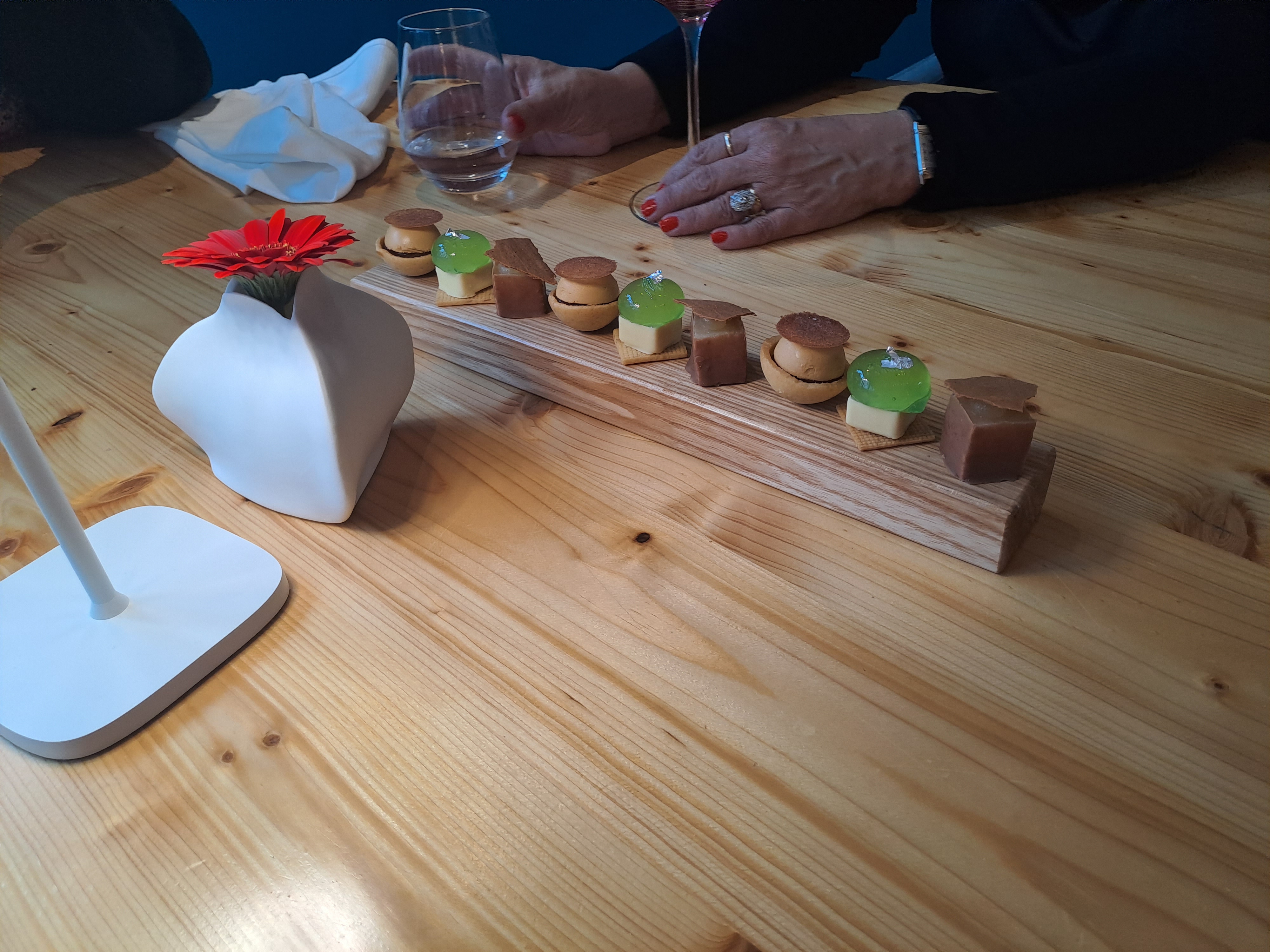 Nous avons passé un excellent moment chez vous, nous sommes régalés du début à la fin, le dessert au chocolat un delice ... Par contre je n ai pas du tout aimé les mignardises car je n aime pas du tout les mets qui ont le goût de rose, violette.. mais mon mari les a beaucoup apprécié. Félicitation au chef et à sa brigade... la sommelière toujours au top 👍