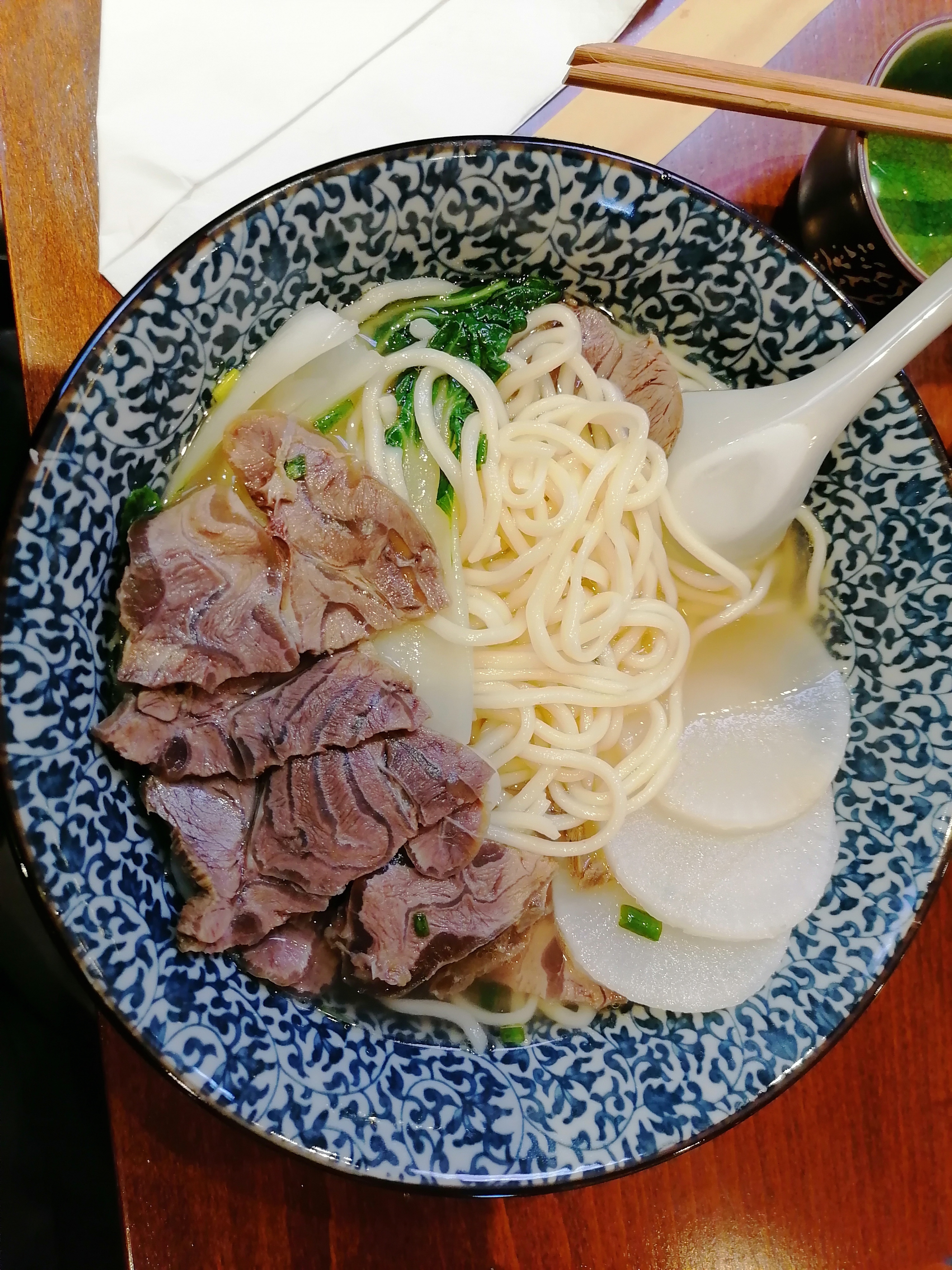 令人震惊 面汤味道非常寡淡 感觉压根没放盐 怀疑汤底就是用开水冲了一下 牛肉分量和图片严重不符 厨师刀功真不错😂牛肉切的非常薄 服务员小姐姐服务还是不错的 希望味道提升一下吧