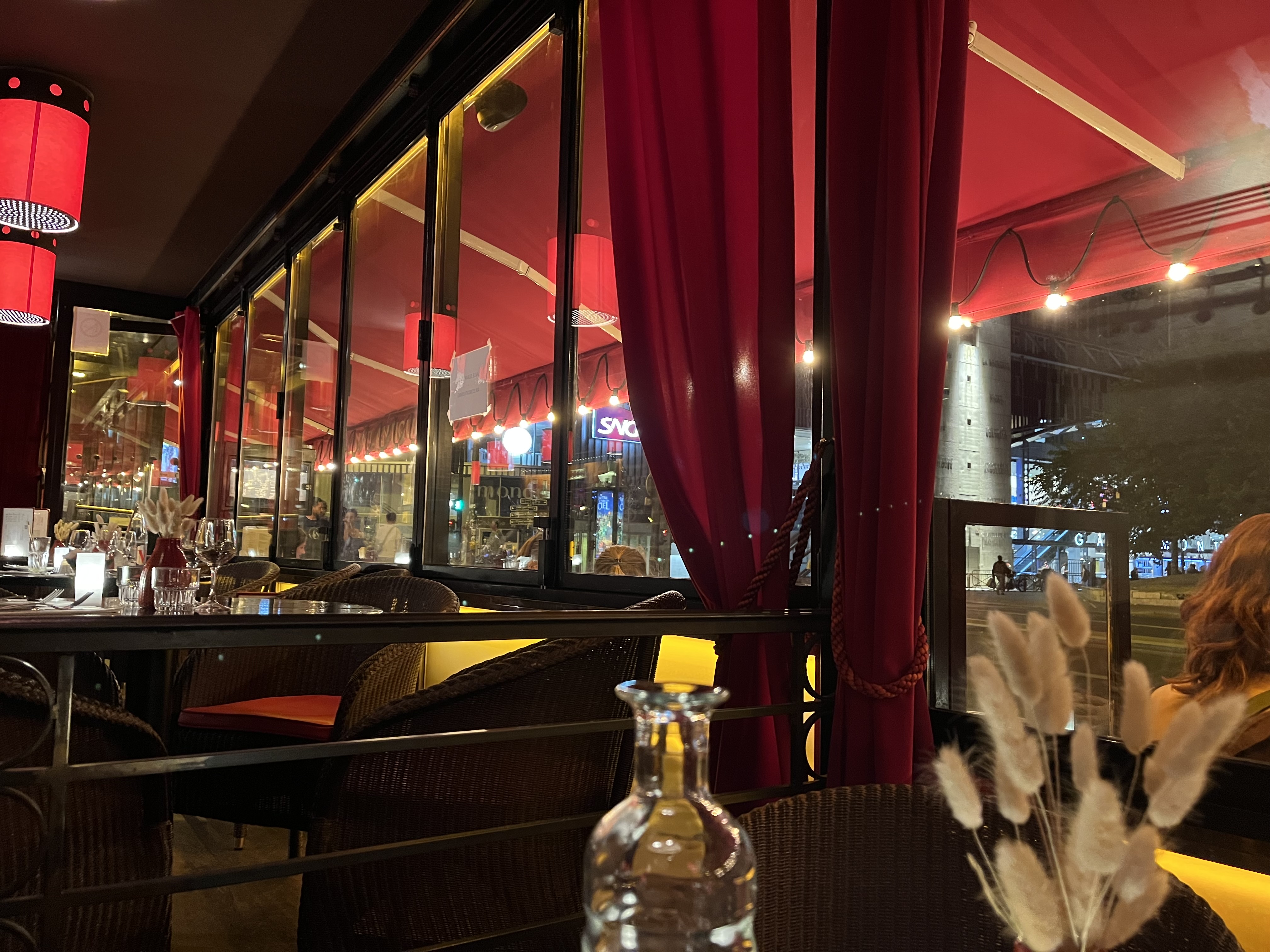Grande baroudeuse parisienne, j'aime me balader du côté de Montparnasse, Saint-michel, Chatelet ou Saint-germain. Avant un arrêt dans un bar, je regarde toujours les critiques, compte tenu des avis mitigés sur la brasserie, j'ai décidé de tenter le coup : Messieurs, quand on vous dit qu'il faut suivre l'intuition d'une femme, ne prenez pas ce conseil à la légère !! L'accueil y est chaleureux, à peine ma main sur la poignée pour y entrer, qu'on me souriait à l'entrée (eh oui même avec le masque, un vrai sourire se voit), on m'a installé avec vue face de la gare, ce qui m'a inspiré une photo pour vous donner une idée de la proximité pratique du bar de la gare. J'ai pris un virgin mojito (très bien dosé) et même avec cette consommation qui aurait pu paraître moins rentable, l'équipe était très attentionnée, on m'a servi des cacahuètes, ils sont vraiment adorables ! Je me suis aussi laissée tenter par une crêpe qu'on a partagé avec mon beau fils, je vous les conseille : elles sont succulentes d'où le grand sourire qu'il arpente sur la photo publiée. Si vous faîtes un tour vers montparnasse, je vous recommande vraiment ce bar, vous y passerez un super moment, surtout avec les grèves qui s'annoncent, vous retrouverez un peu de douceur soit avec l'amabilité de l'équipe soit avec les crêpes ! A mon prochain passage, j'y retournerais pour y manger, les clients à côté de moi avaient des plats bien copieux et avaient l'air très satisfait de leur plat : j'ai hâte !