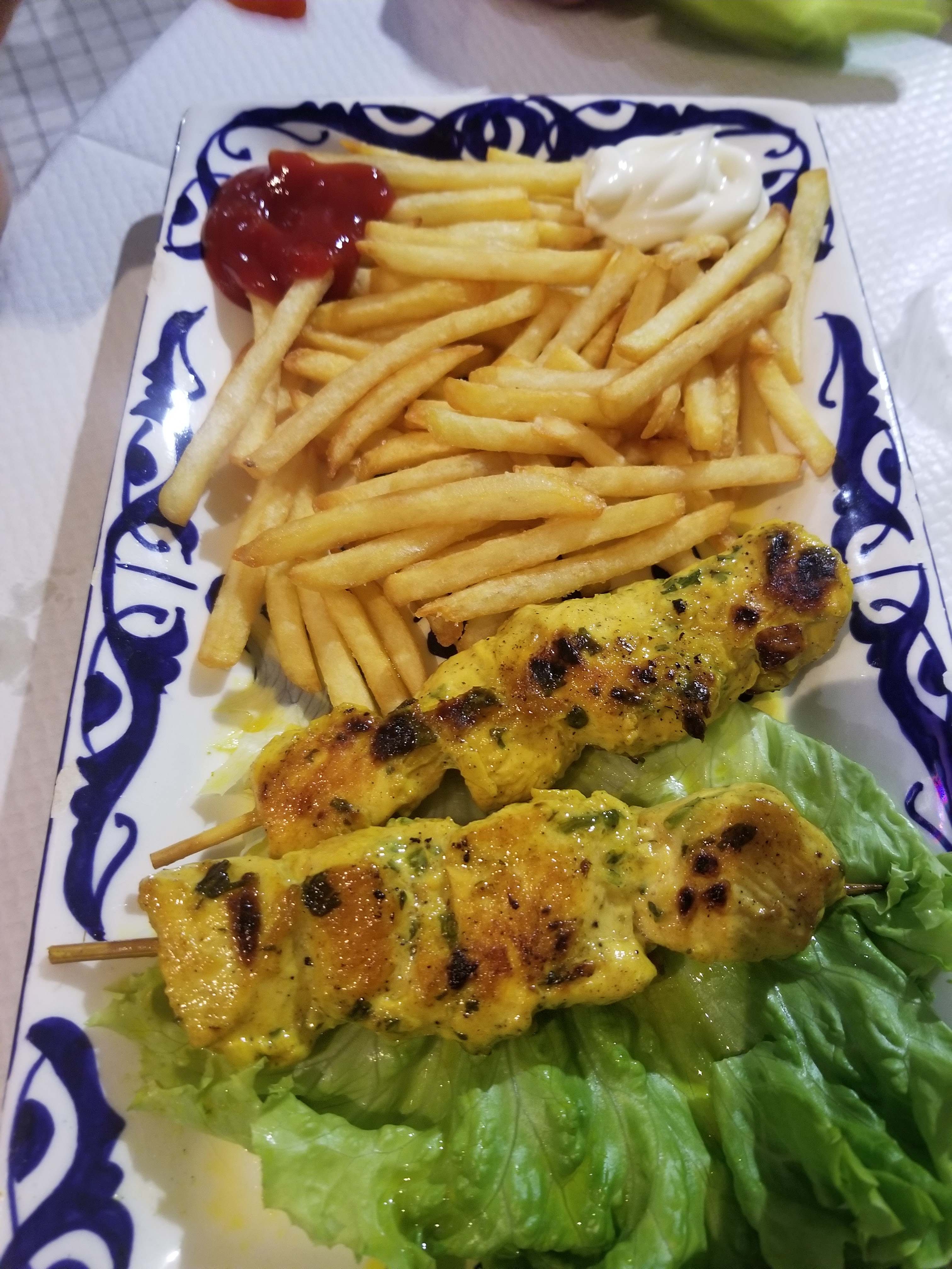 Très bien au début : deux fois au resto et une fois en commande mais la dernière commande : brochettes sèches, agneau qui ressemblait plutôt à du mouton, légumes en très gros morceaux et peu nombreux sauf carottes ! Les pois chiches au raisins toujours extra… Dommage.