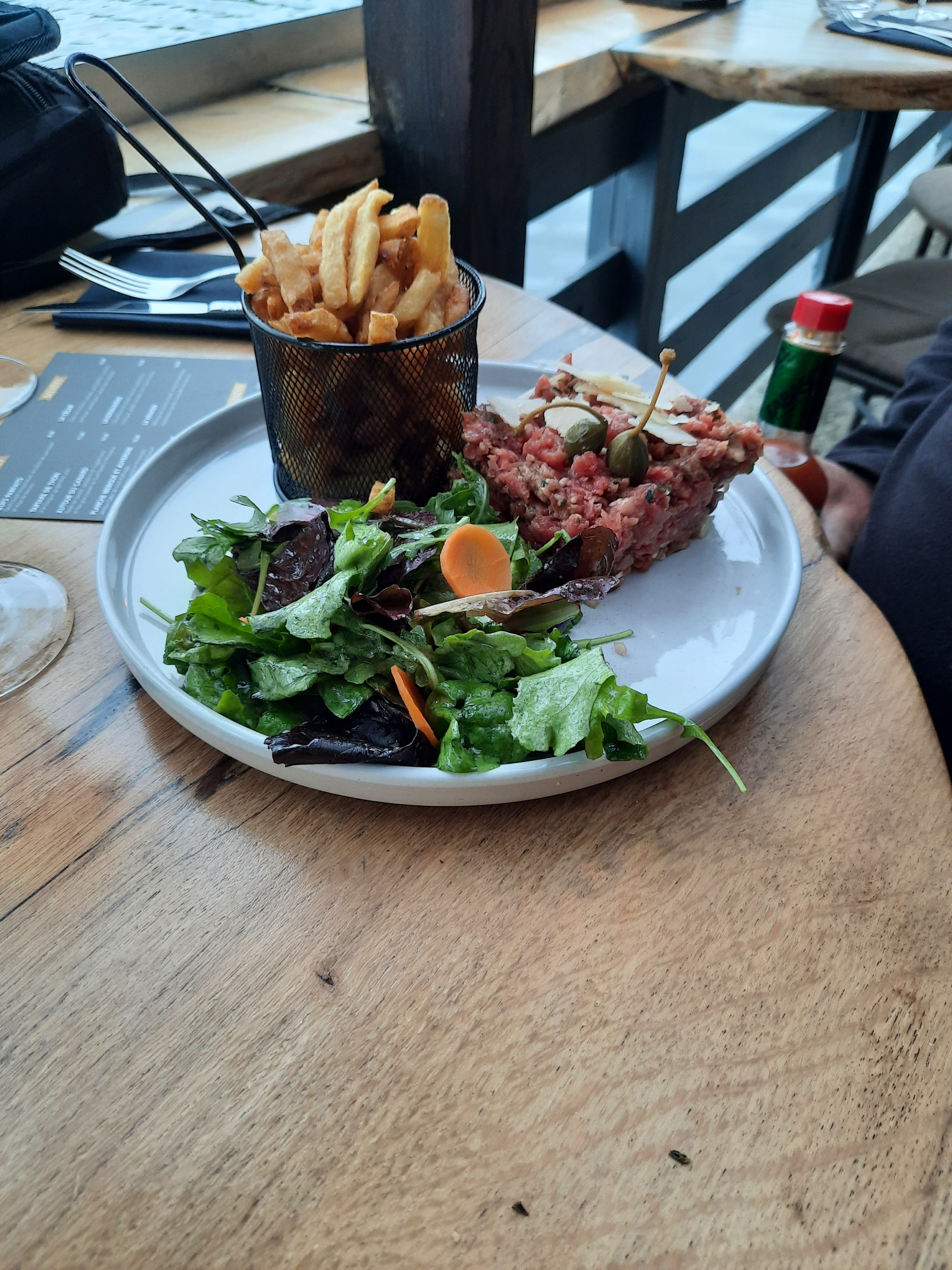 Idéalement placé au bord de la rivière, atmosphère décontractée et reposante. Service efficace, personnel agréable. Pavé de thon 24€ (très bon), carpaccio limousine 18€ : prix dans la moyenne. Prudent de réserver même en semaine