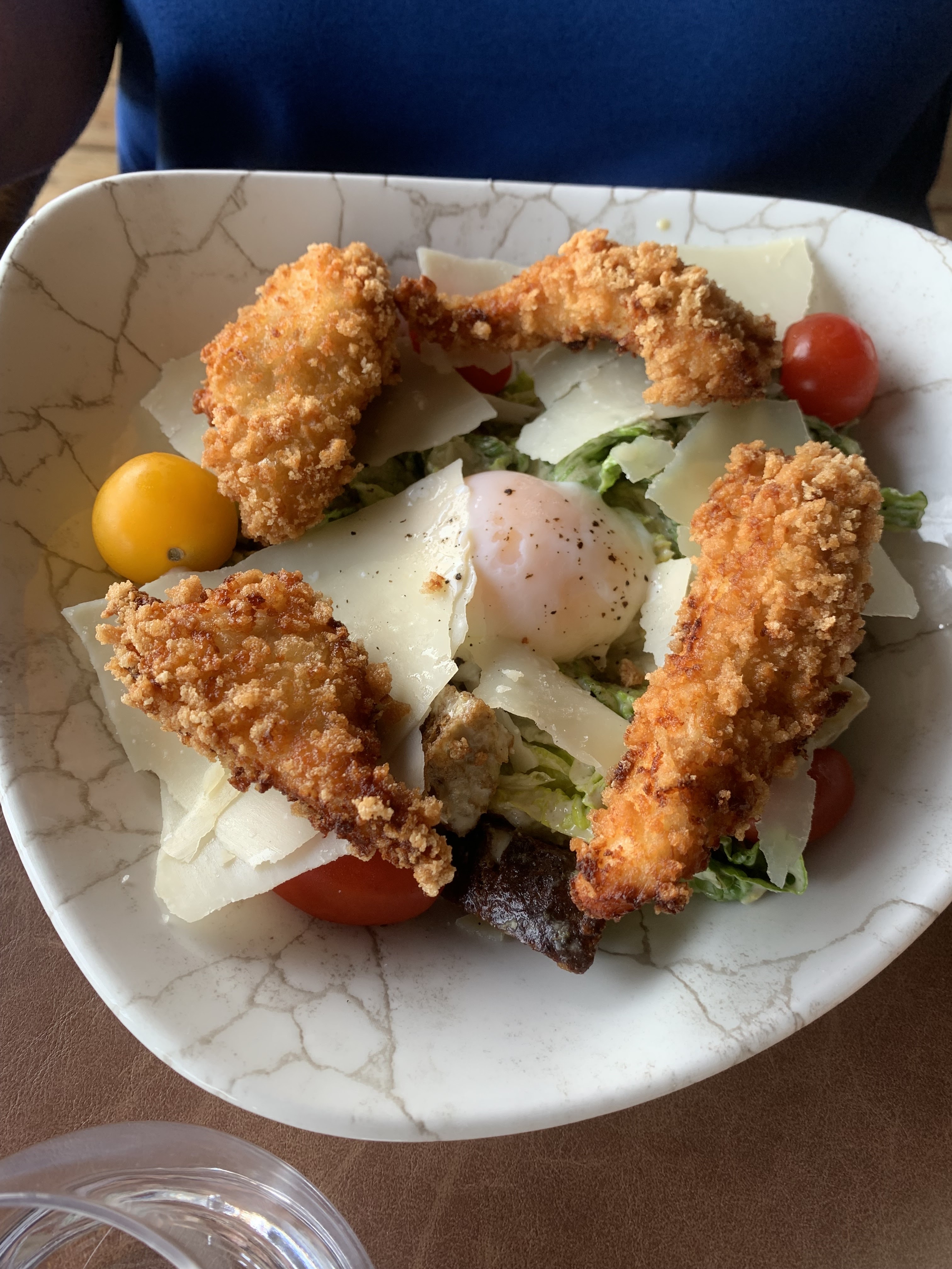 Une déco soignée. On a bien mangé (salade césar et sole, avec un dessert - brookie pour 48e). Le serveurs étaient pressés. Le véritable bémol vient de l'accueil : on a réservé et arrive à l'heure, quinze tables au moins sont alors encore vides. Nous ne sommes que deux. Je demande poliment à ne pas être installée à la seule table au soleil, étant enceinte de jumeaux à sept mois, réponse : Bah moi aussi chui désolé mais je n'ai aucune autre table. gloups. Double gloups quand les cinq couples qui suivent sans résa sont installés à l'ombre. C'est à se poser des questions, tout de même.