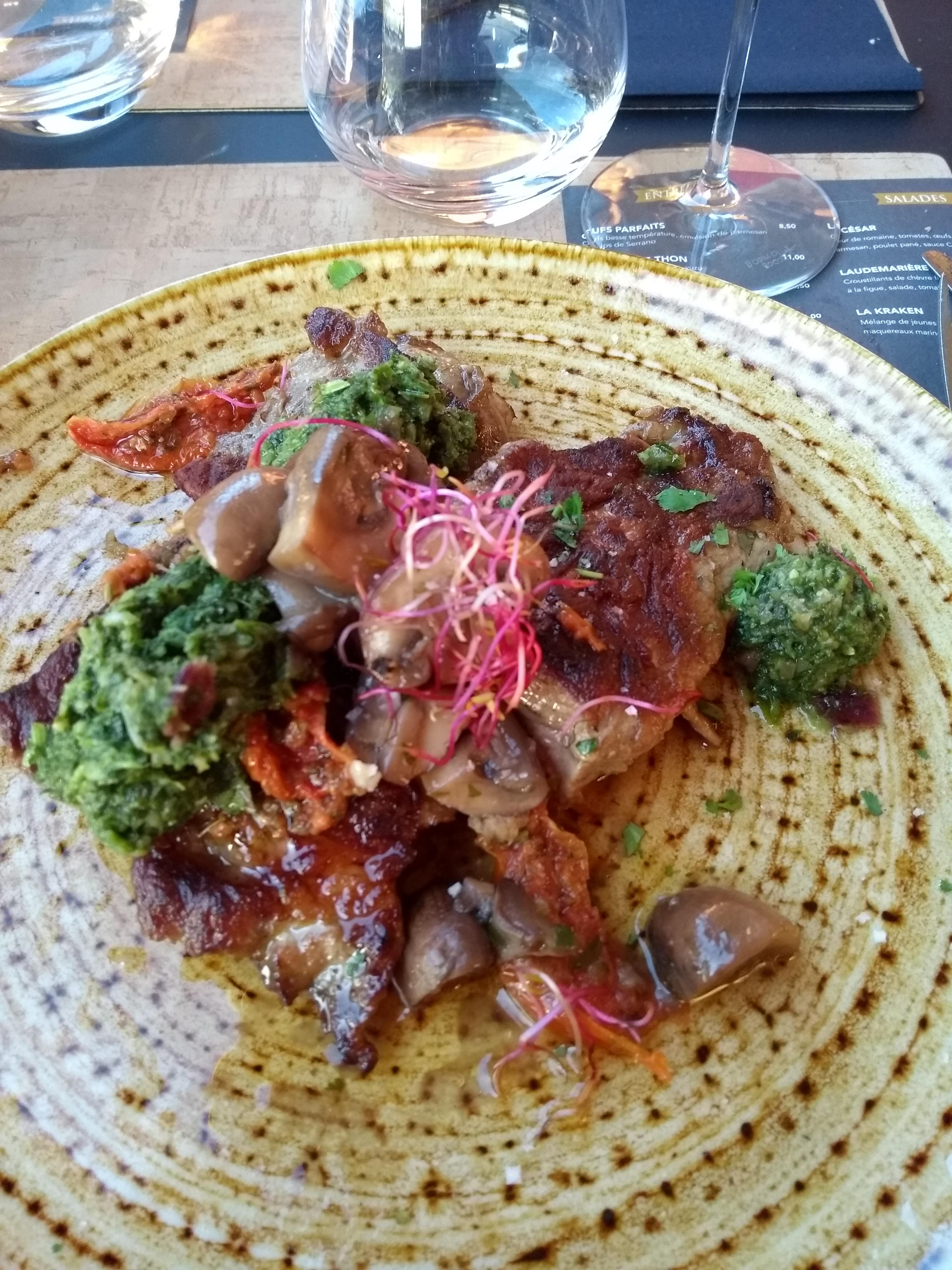 Cadre très agréable, c'est bon et le personnel est très gentil. Dommage qu'il n'y ait pas un plat végétarien chaud prévu à la carte. La vue sur le pont pendant que vous profitez de votre repas, rajoute du cachet à l'endroit.
