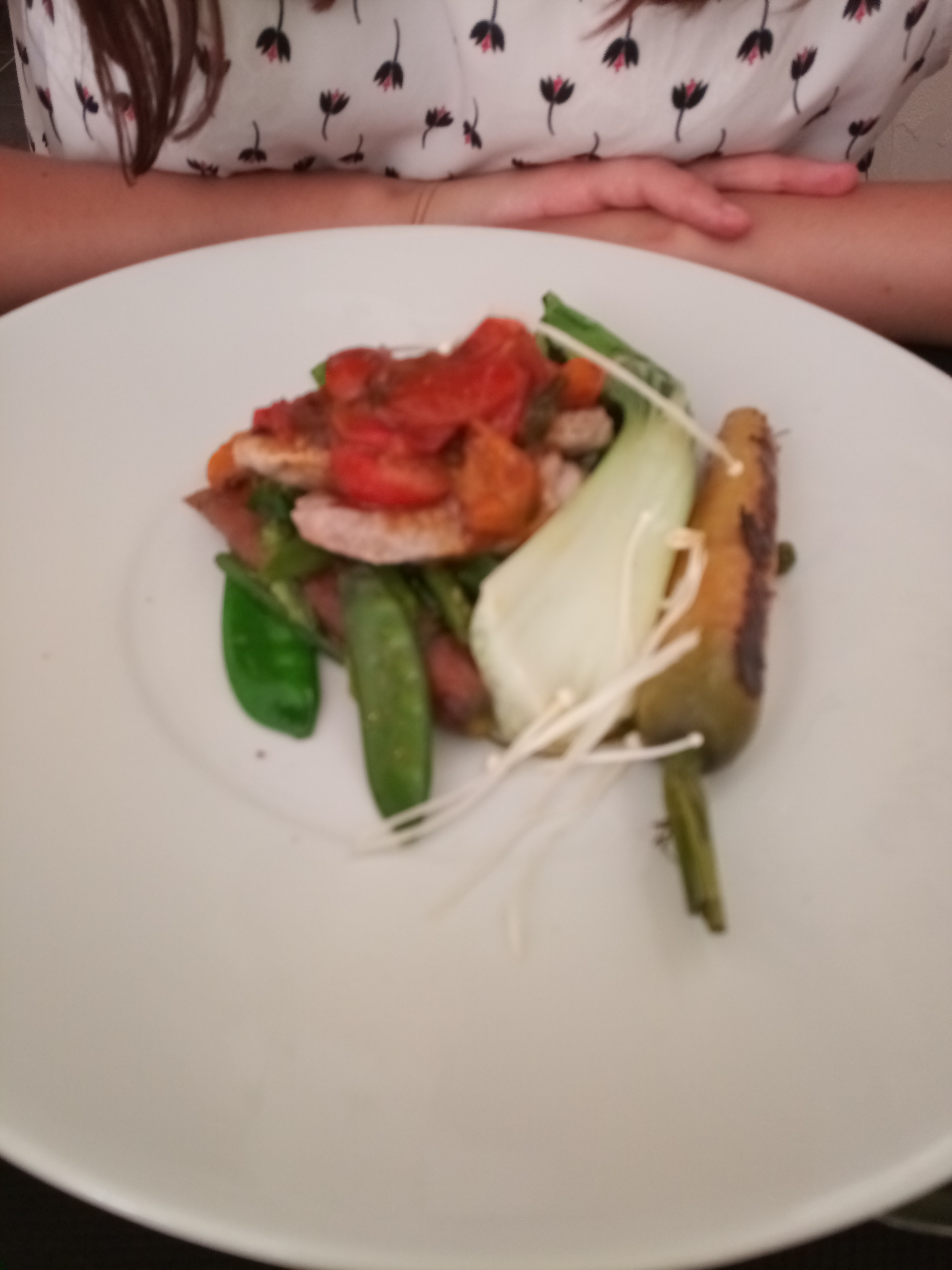 La présentation est très jolie. J'ai pris un rouget avec un peu de citronnelle.... je n'ai absolument pas eu le goût de la citronnelle. Les légumes croquants sympas pour certains, limites pas cuits pour d'autres.