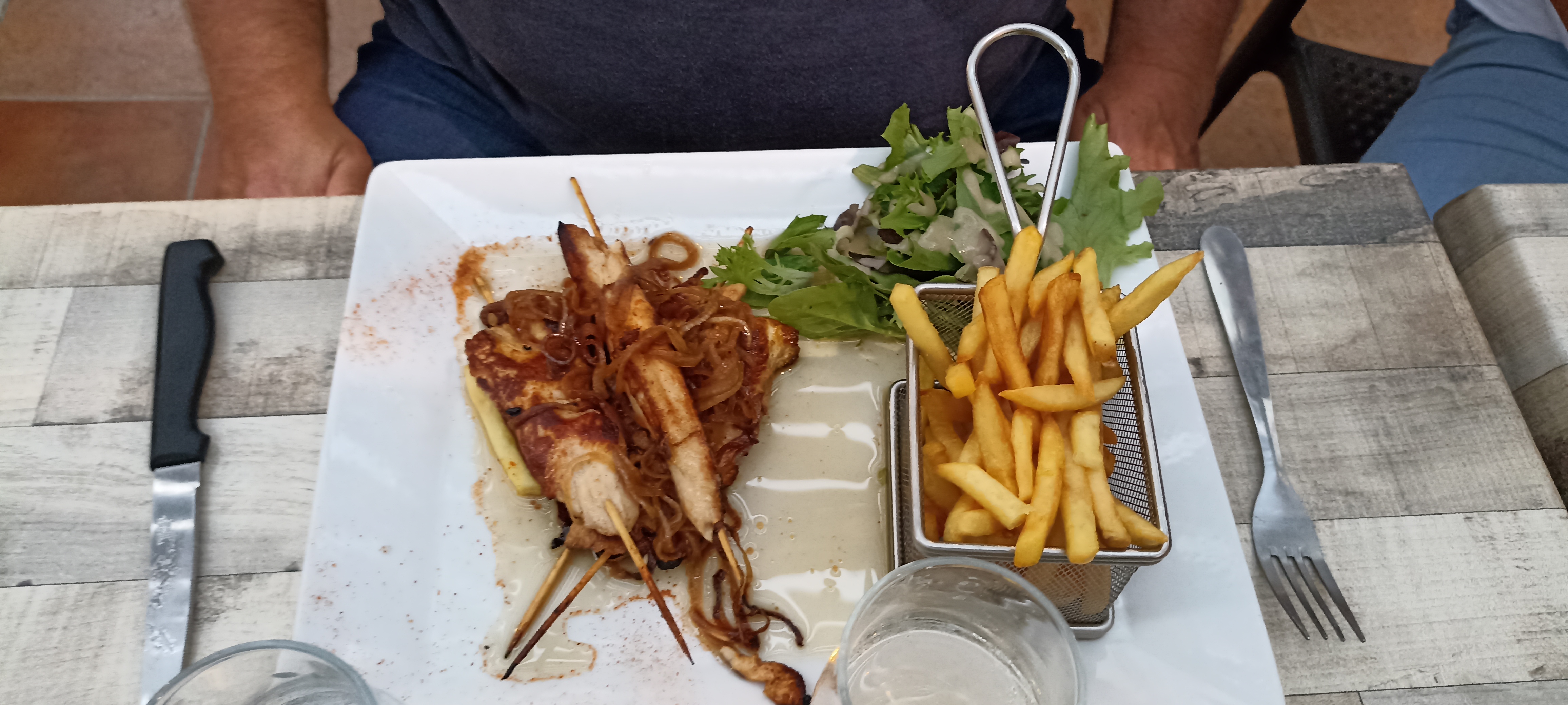Restaurant de camping sympa avec des jeunes saisonniers....on a pris du bœuf avec des frites....des pizzas.....c'était bon....il a commencé à pleuvoir sur la terrasse....le patron a été réactif....le point négatif un peu bruyant car ça résonnait Mais bonne expérience