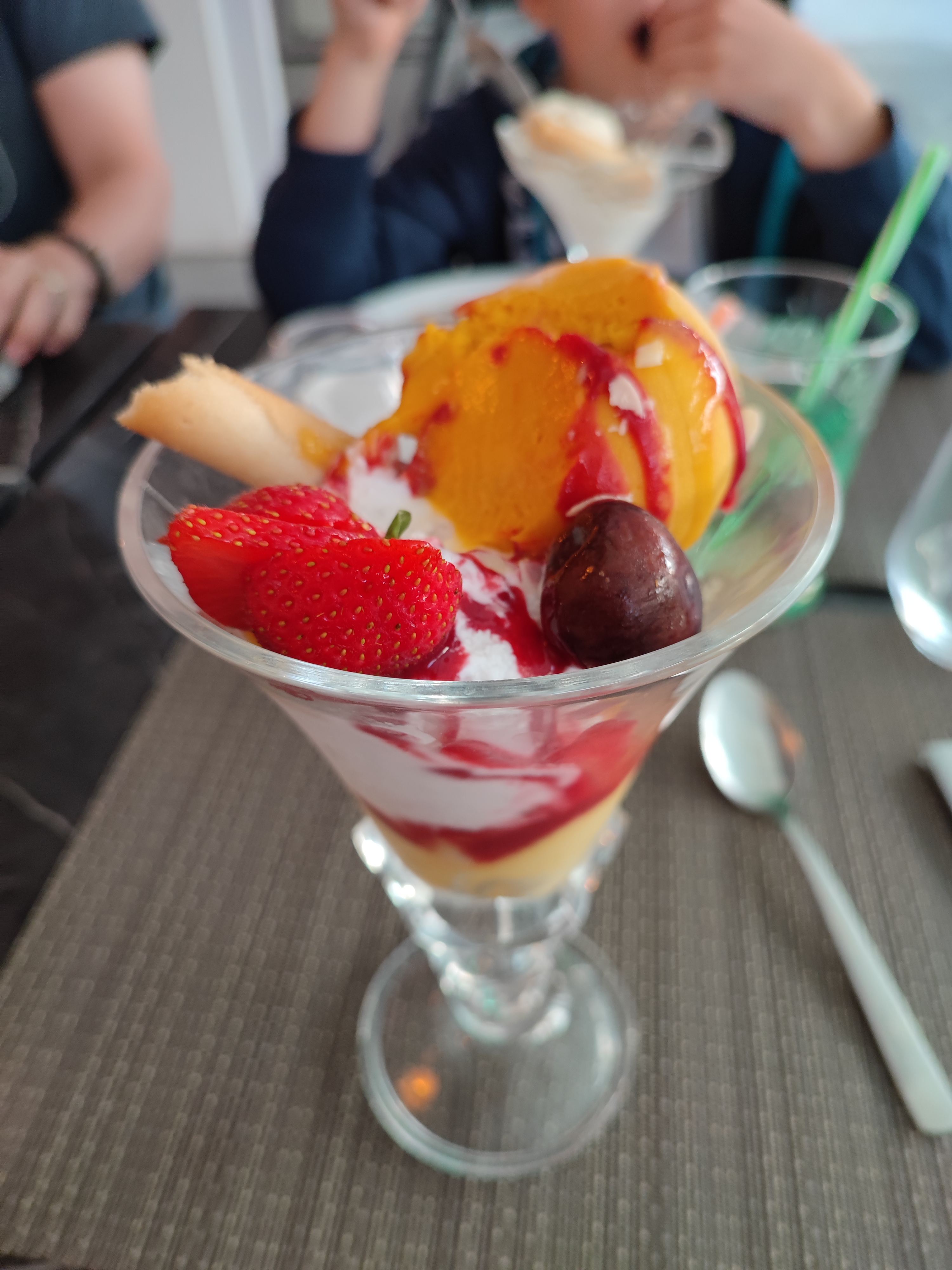 A fuir 1h attende au bout de 20 min on nous annonce plus de moule plis vanille plus sirop de fraise et plat adulte servis plat enfant 20 min apres plus jamais. Et de plus le responsable petit jeune qui nous prend de haut nous repond comme un chien et fuit ses responsabiliter changer de boulot monsieur connecant le commerce vous etes pas fait pour sa !!!!!