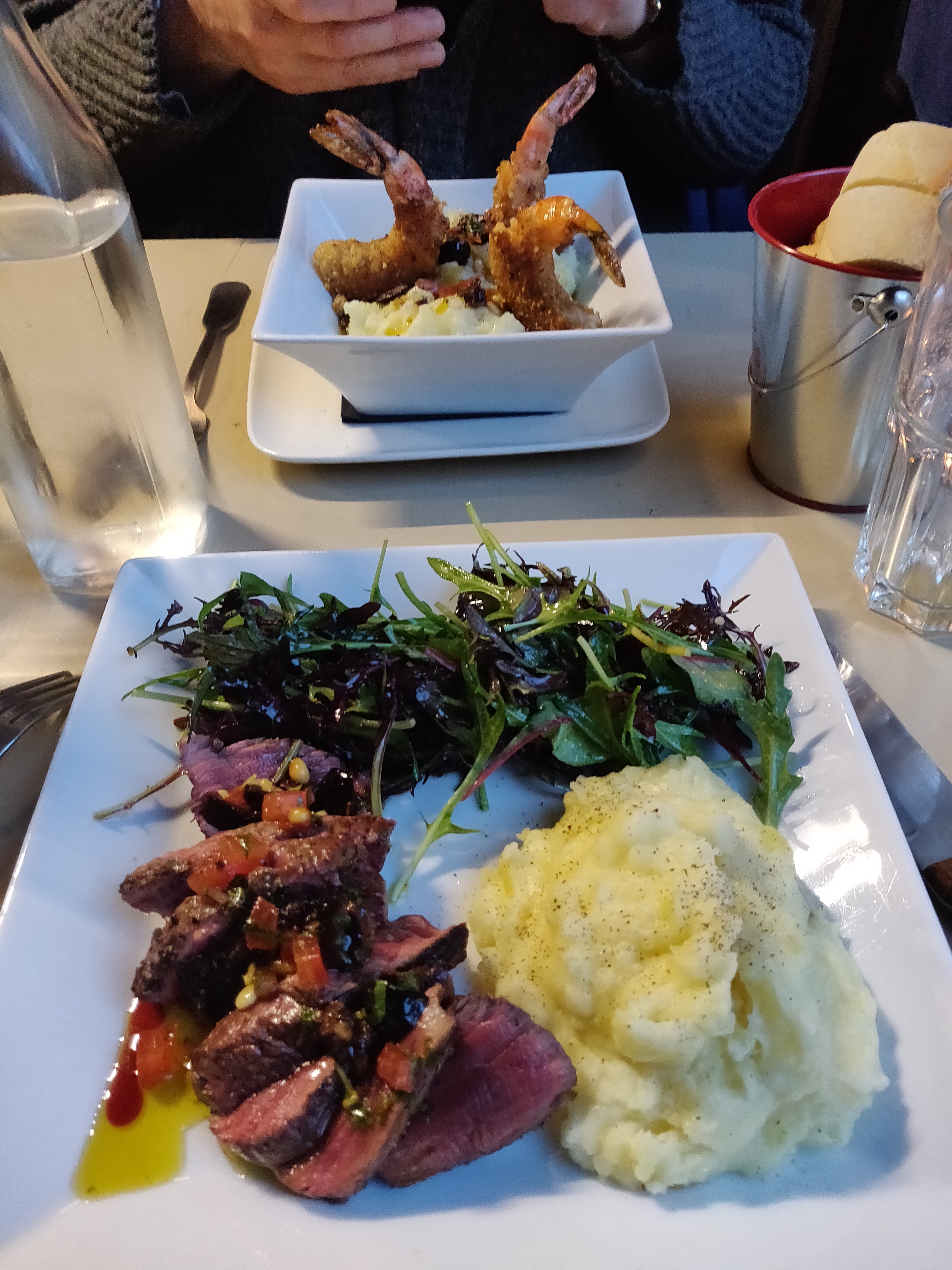 Steak très savoureux, j'ai aimé la sauce aux champignons et j'ai beaucoup aimé le pain servi chaud. Personnel poli et attentionné.