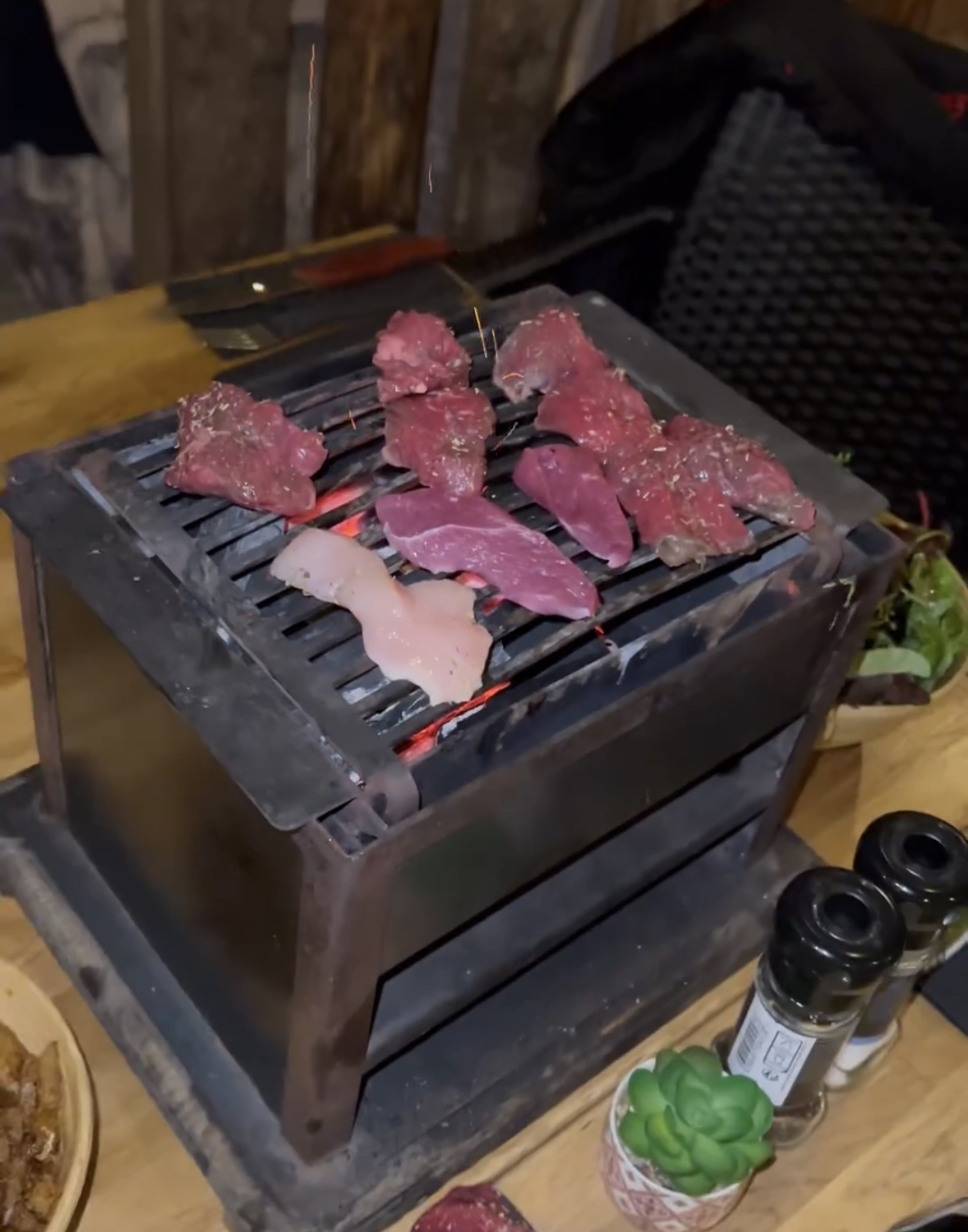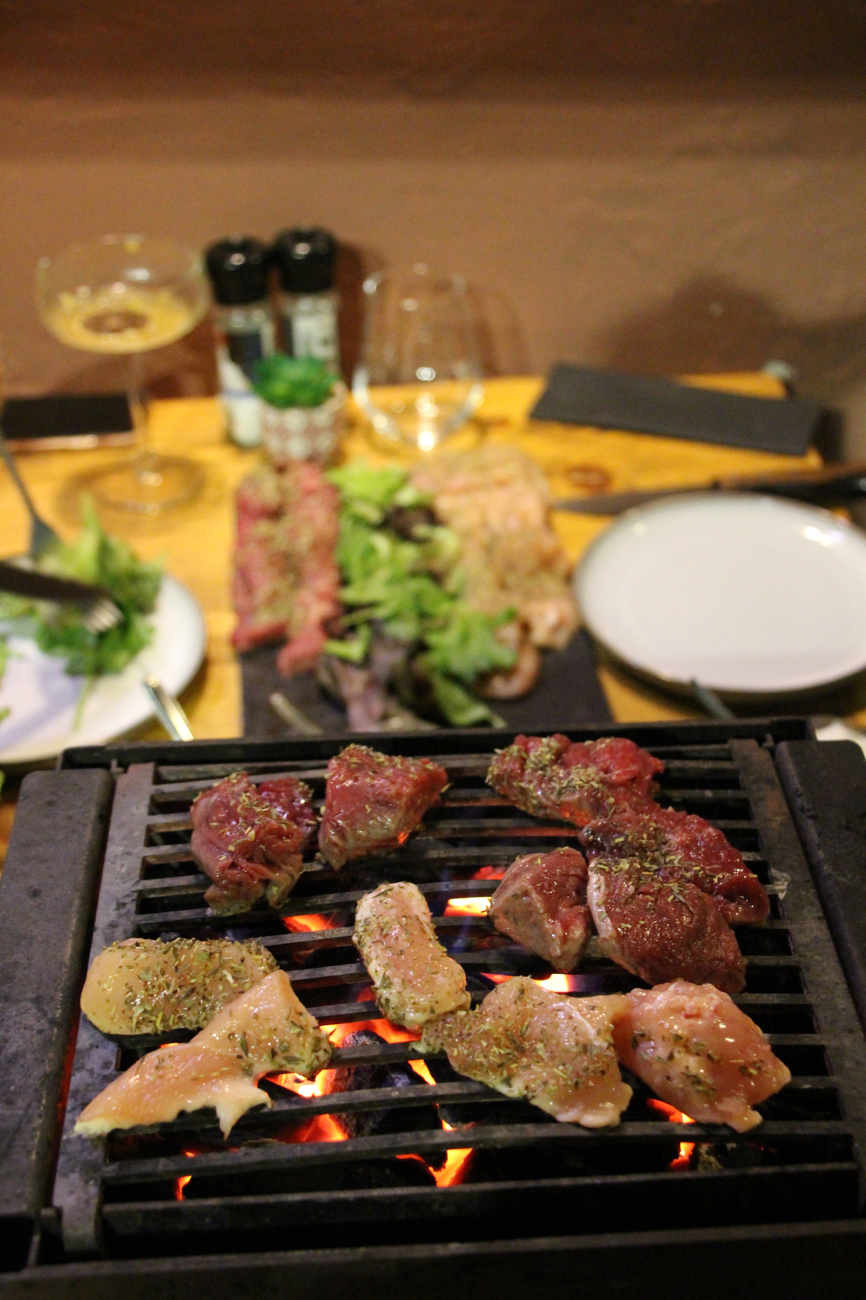 Manger une delicieuse viande sur un petit brasero posé sur votre table. La pierrade réinventée. Super concept et accueil au top
