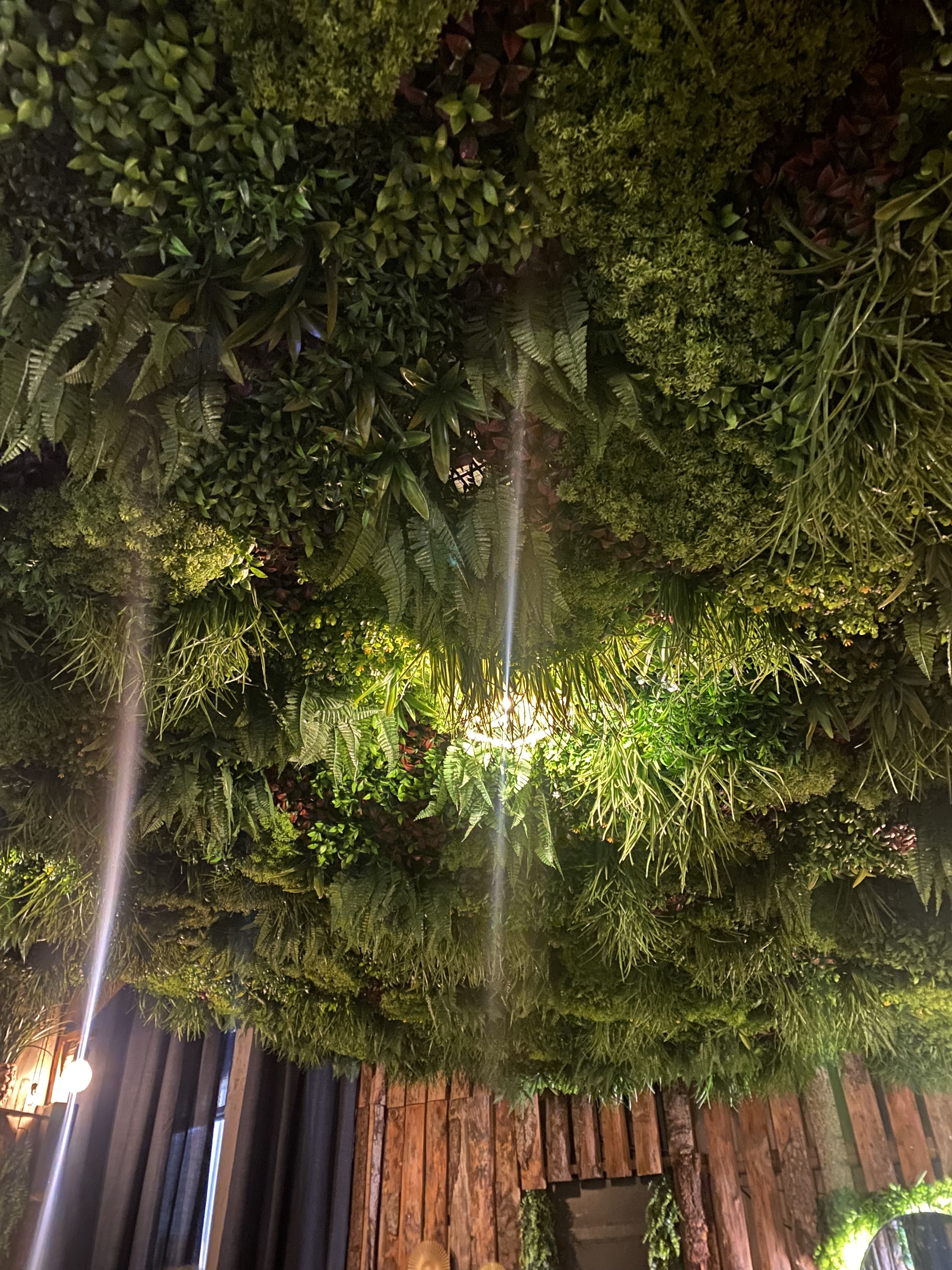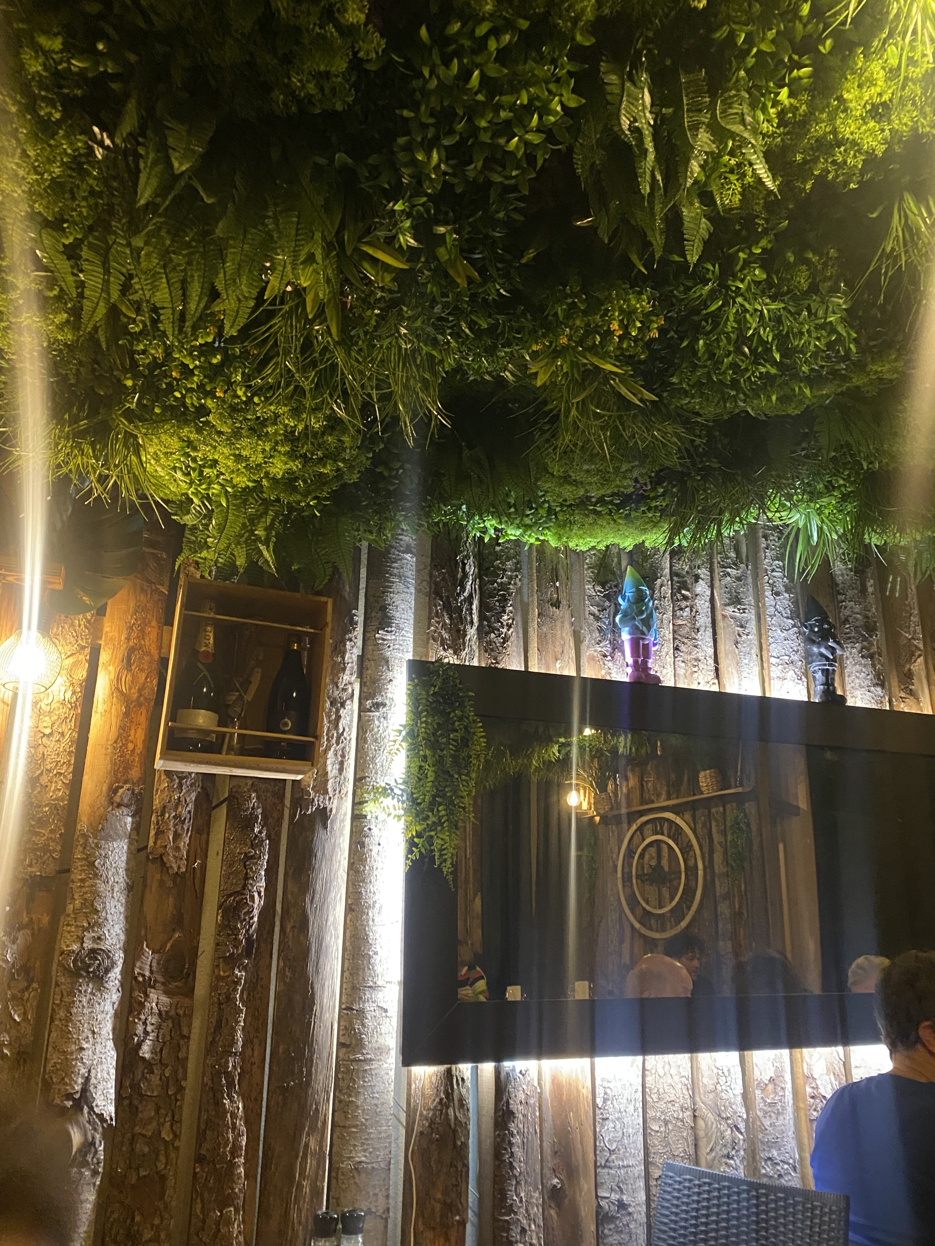 Super découverte! Le restaurant est situé sur une jolie petite place. Vous avez l’impression de rentrer dans le restaurant lorsque vous voyez les tables devant une porte avec un intérieur éclairé mais en fait on vous dirige sur le côté, une petite porte presque cachée qui s’ouvre sur une salle hyper cosy, un toit de verdure, des murs effet troncs d’arbre, une lumière tamisée… c’est top! Super accueil par Hugo et Kevin qui nous a servis et très bien conseillés tant sur les vins (un fin connaisseur!) que sur les plats; Brasero incroyable, Mont D’or, plateau de charcuterie, filet de loup, dés de pommes de terres revenus, un délice! des sauces aux champignons, au Saint Marcellin, à la moutarde…. Moi ça a été tiramisu en dessert, incroyable! Nous nous sommes tous régalés, nous avons passé une excellente soirée!