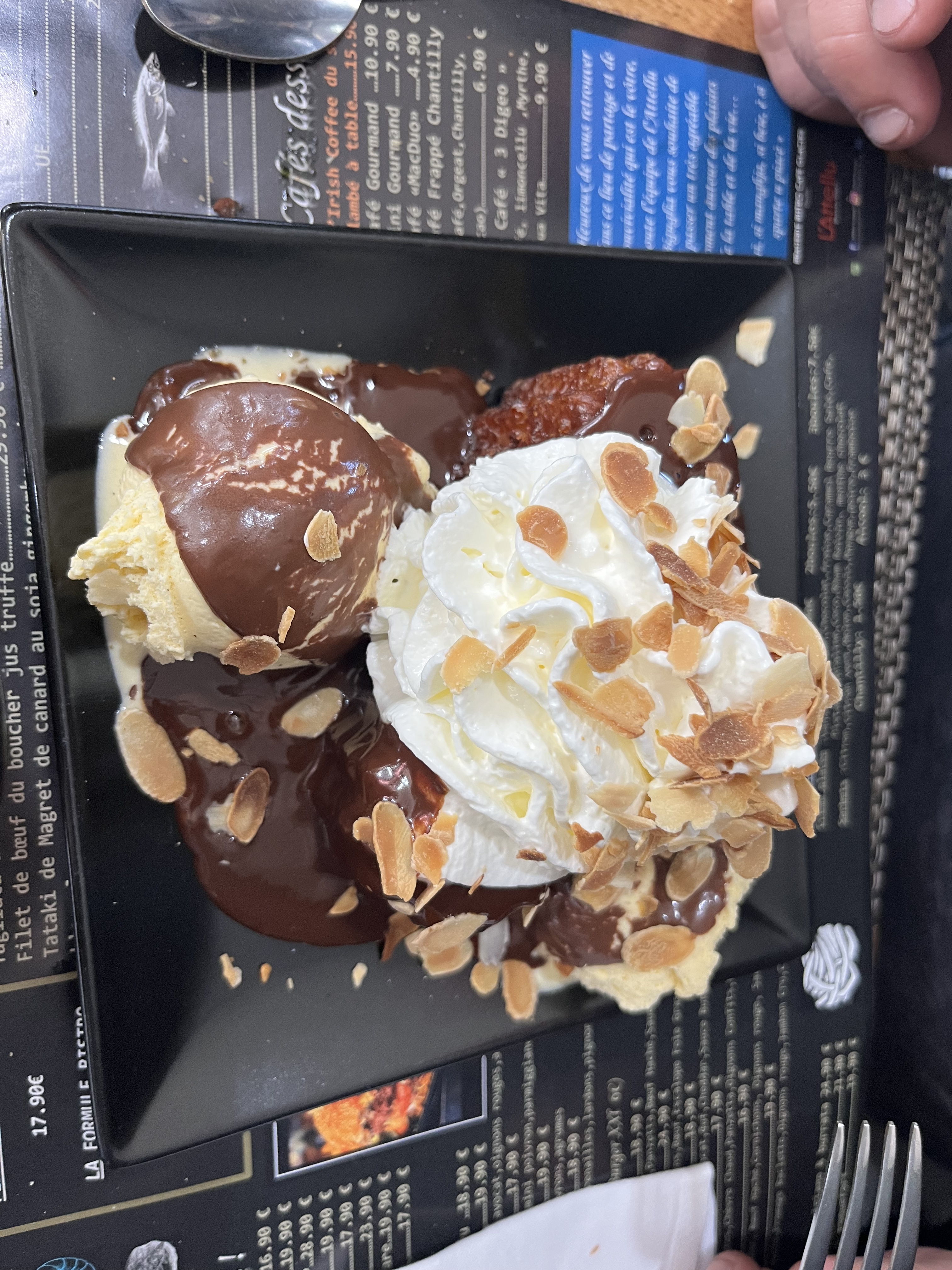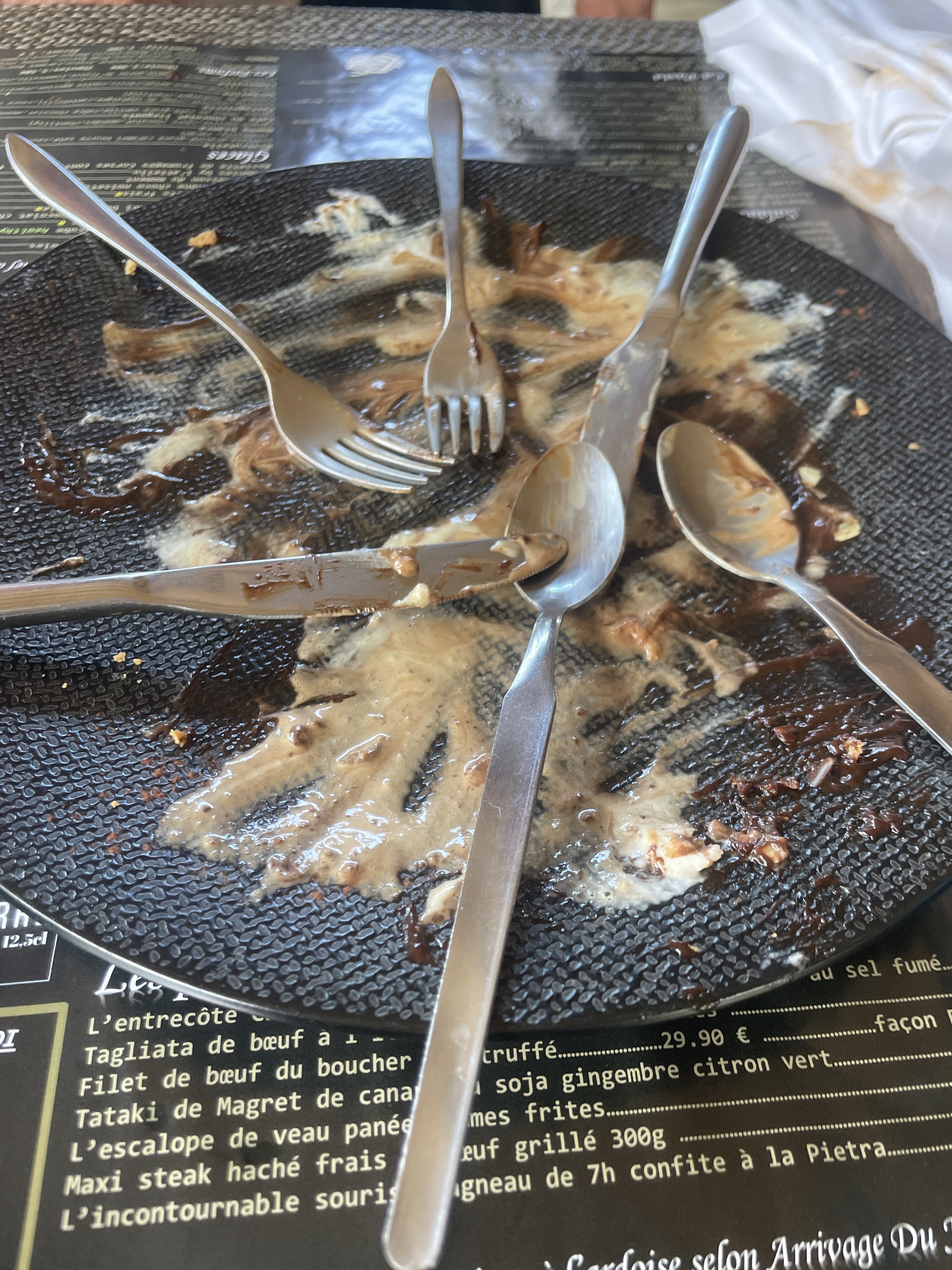 Tous ces couverts pour une toute petite profiterole !! 😂😂😂 Trop bonne et Trop mega