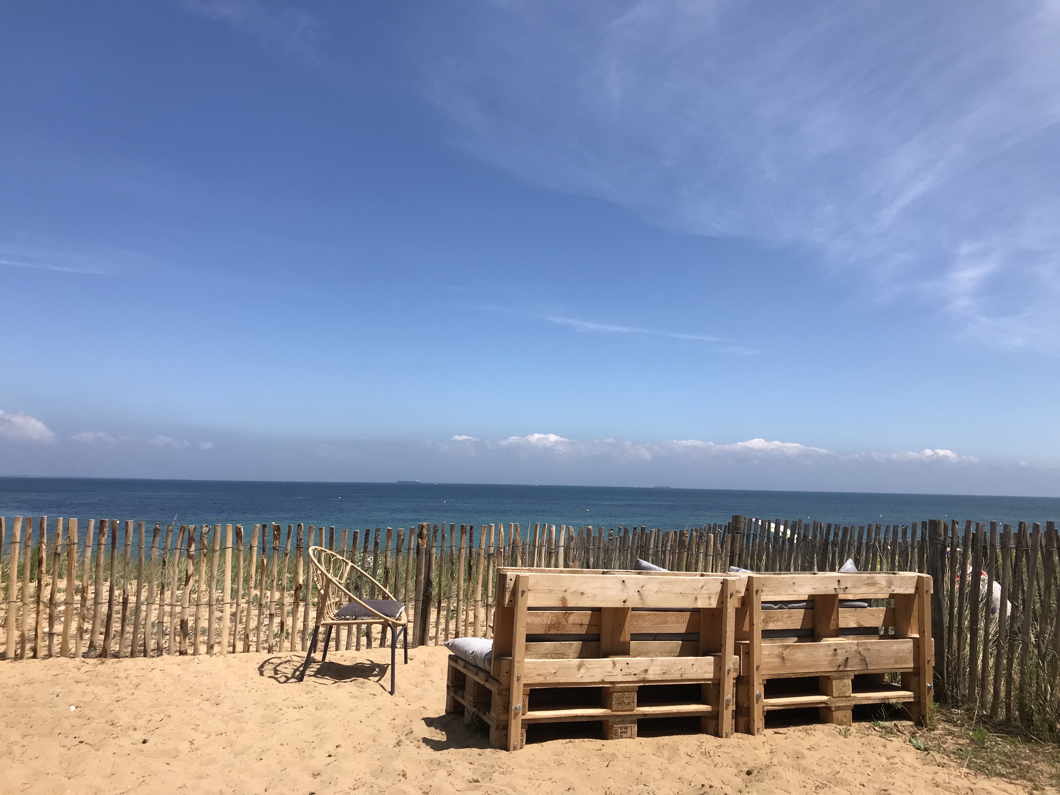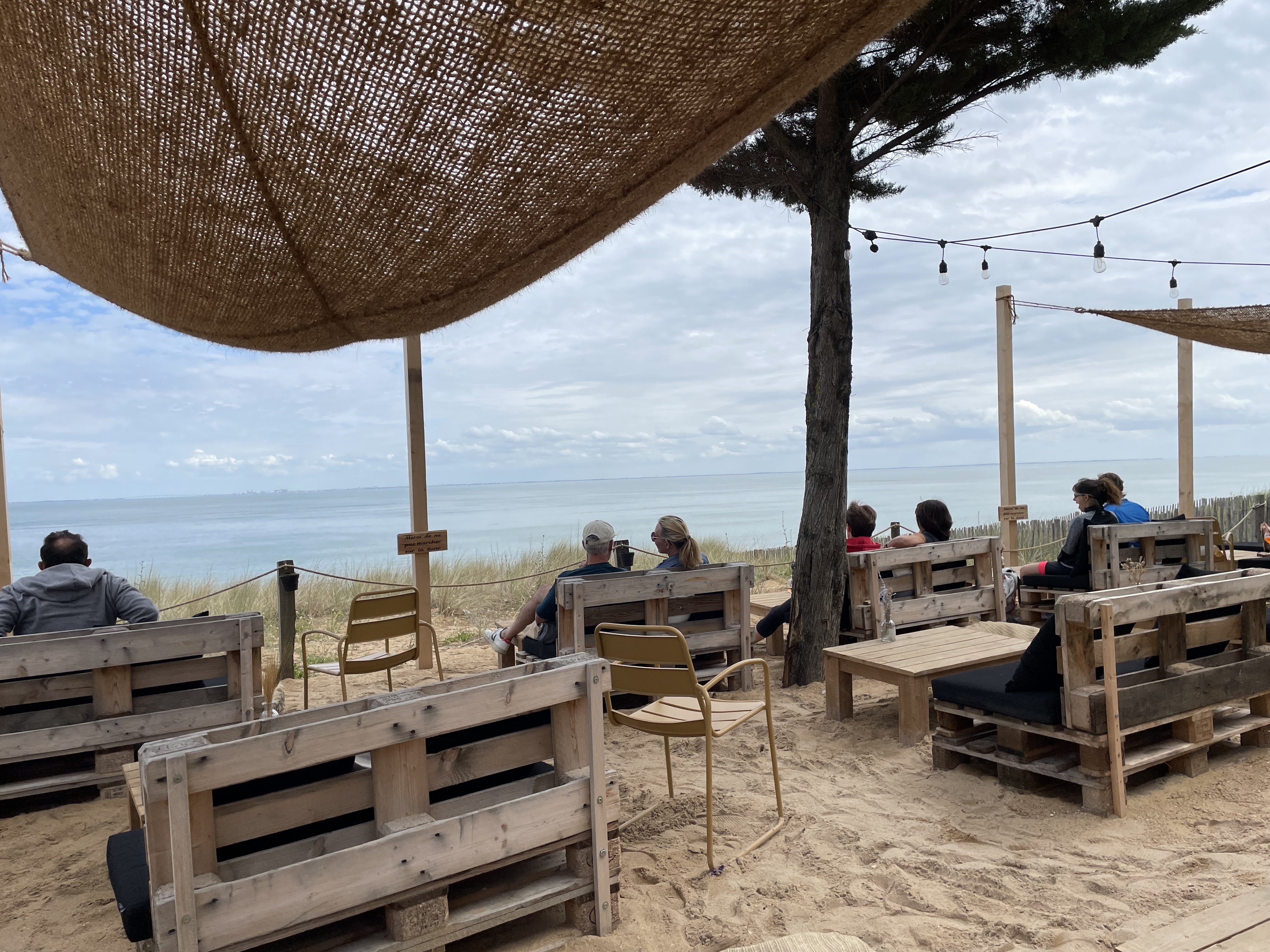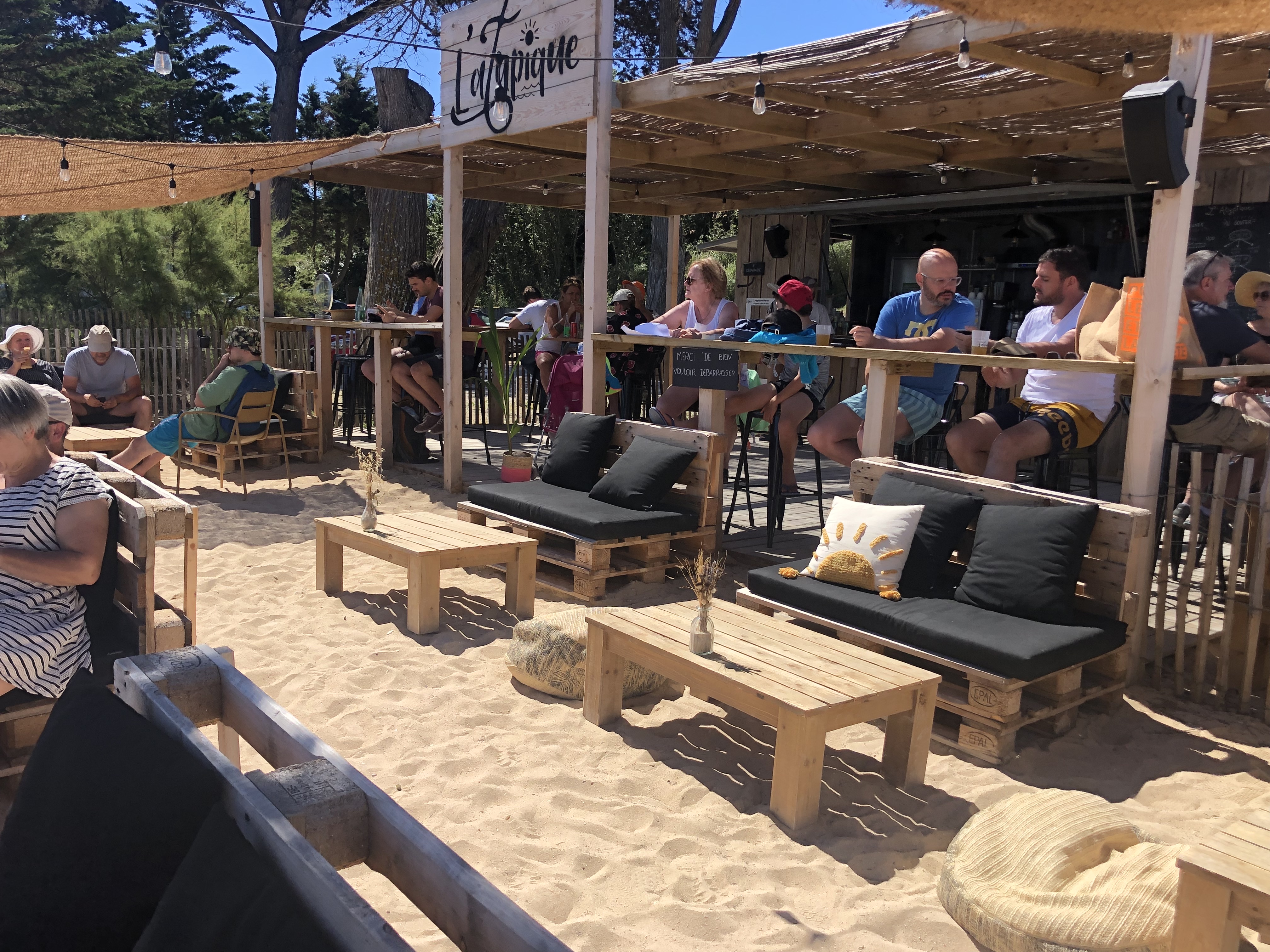 Du mobilier en palettes recyclées et coussin pour s installer 'les pieds dans le sable et les yeux dans l océan. Pour boire un coup ou manger sans réservation mais attention peu de place. Le hamburger était bon et les frites maison parfaites