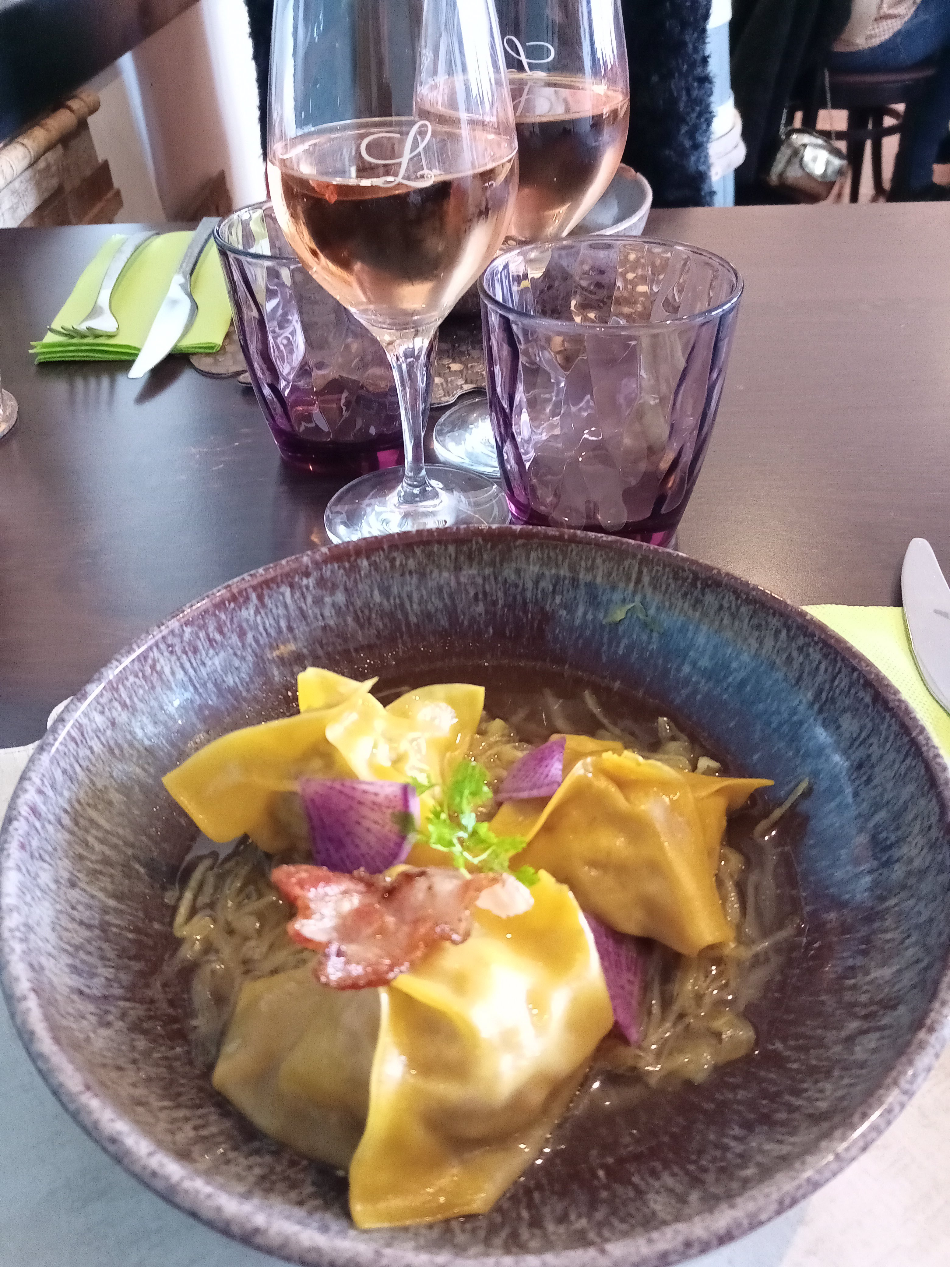 Bien que la nourriture soit de bonne qualité, je suis resté sur ma faim. La quantité n’est pas au rendez vous. Le cadre manque d’homogénéité dans la décoration et les chaises peu confortables. Je pensais retrouver le concept d’antan quand chaque menu était associé à un vin et où le personnel expliquait les cépages. J’ai été déçu par rapport à mes antécédentes venues dans l’ancien local par rapport à cela. Le personnel n’était pas spécialement motivé pour nous accueillir également.